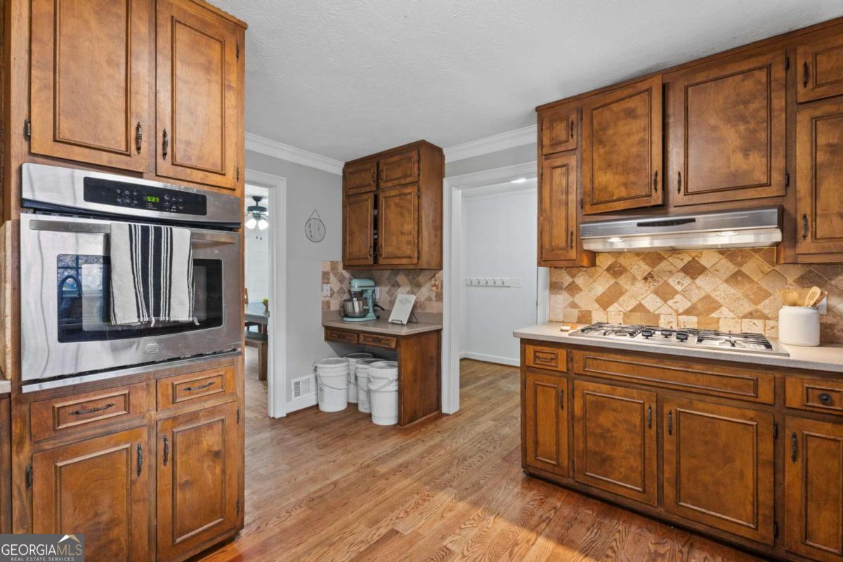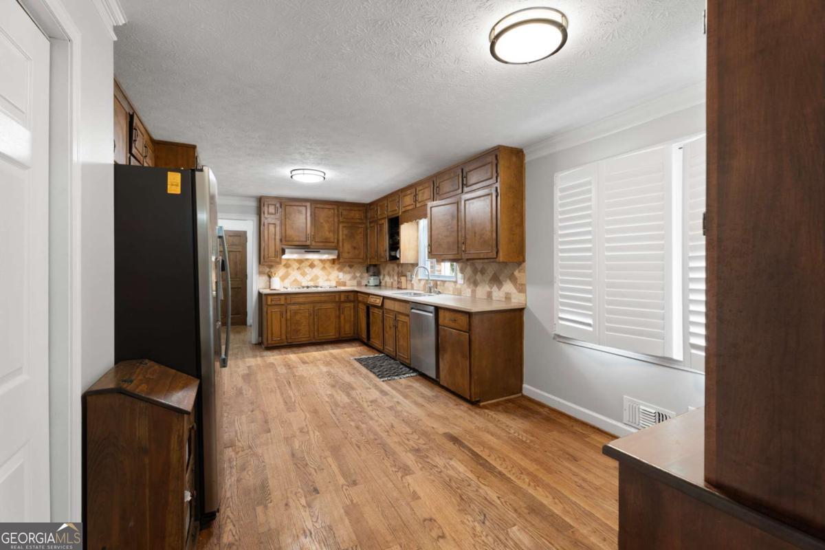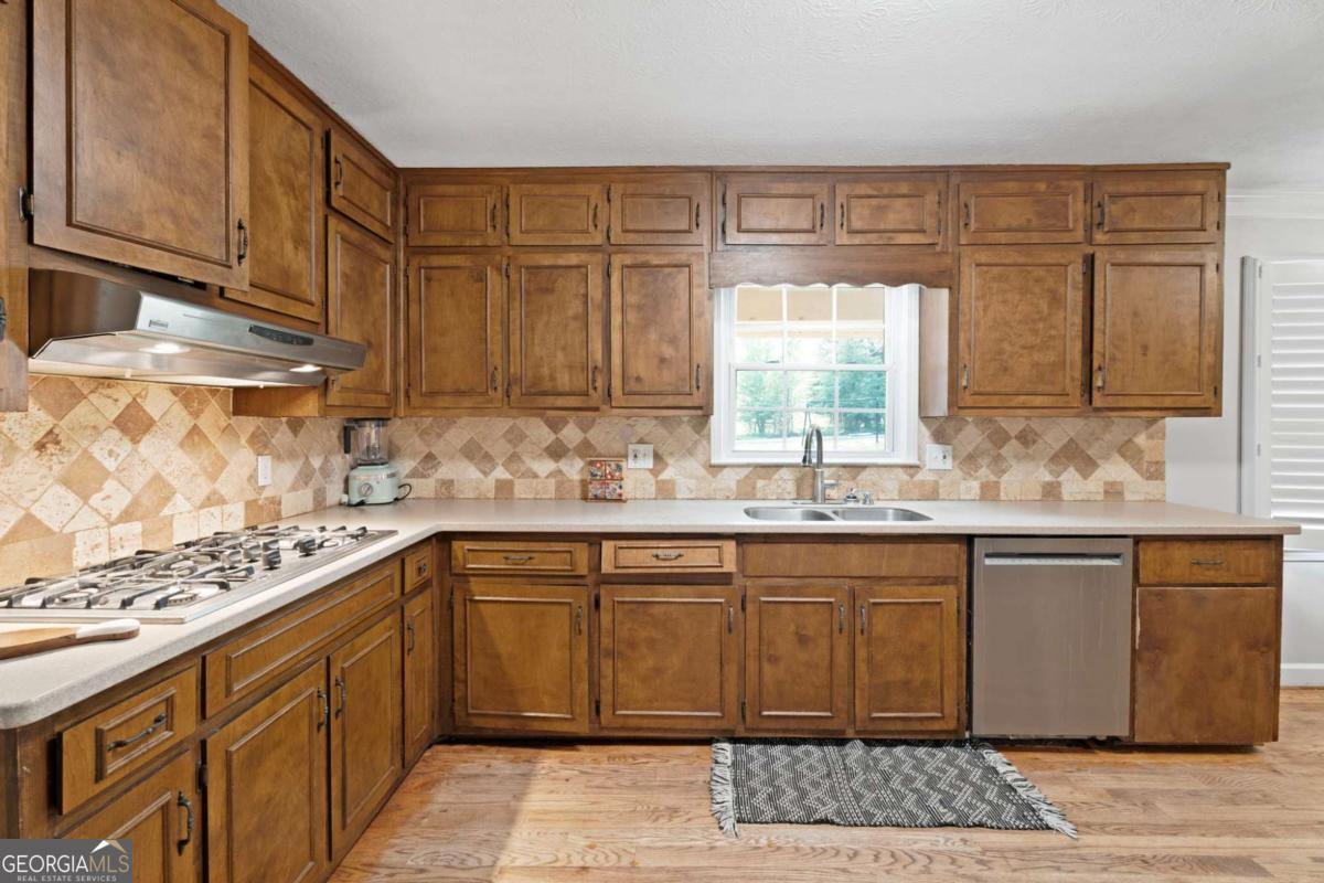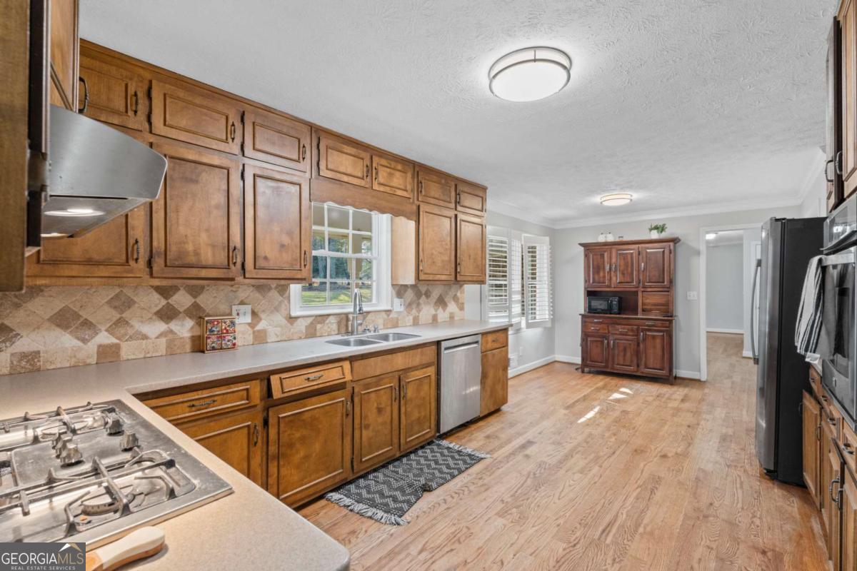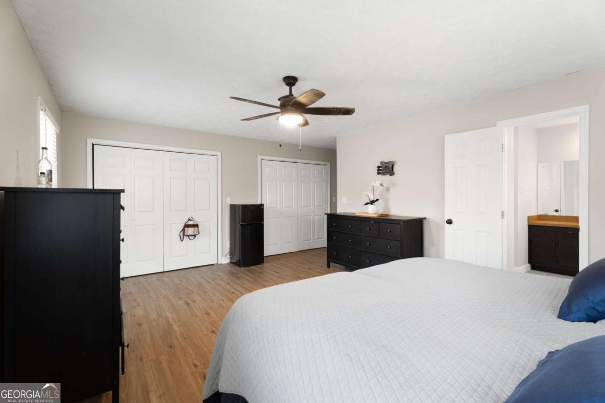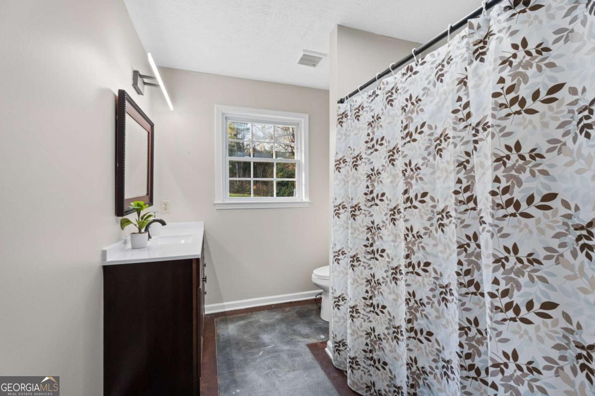 On the main level, you will find Hardwood flooring, fresh paint, and an inviting open-concept design. Wood-burning stove and an expansive covered back deck, where you can relax, entertain, and take in breathtaking views of the pond, the perfect spot for morning coffee or evening sunsets. The fully finished walk-out basement is perfect as a mother-in-law suite, guests, or rental opportunity. This includes a full bath, private bedroom, spacious living area, and stubbed for a kitchen. The boat door and workshop add even more functionality, making this the perfect home for hobbyists, car enthusiasts, and those who love extra storage! This property is a homesteaders dream! Huge chicken coup with brooding area, county water and well available, Spring-fed fishing pond, lush blueberry bushes, muscadine grapes, wild blackberries, and Pecan trees. Spacious goat pasture ideal for livestock or expanding your farmstead. And dont forget the neighbors horses playfully roaming right behind your barn, adding to the peaceful country charm. Plenty of space to roam, garden, and grow, you can truly live off the land while still being just minutes from grocery stores, coffee shops, and dining.