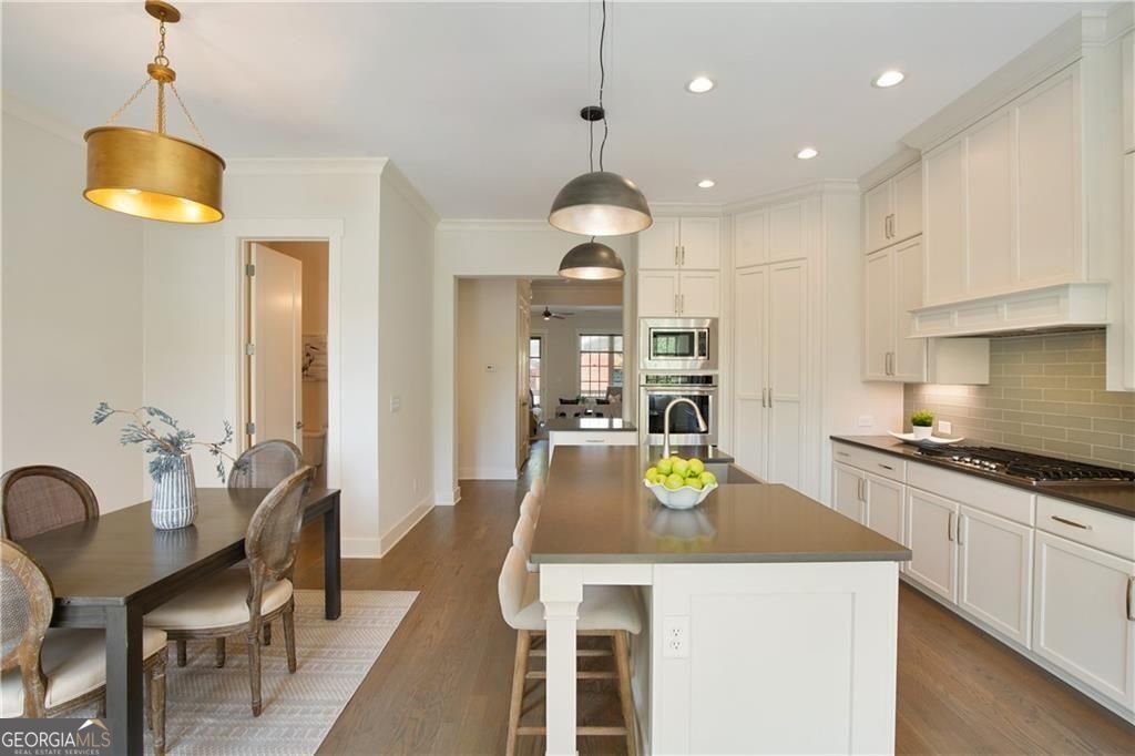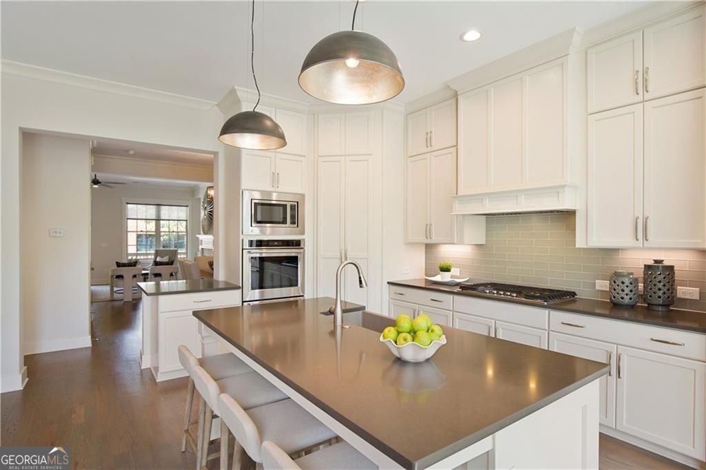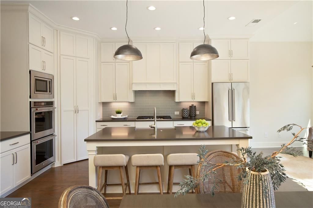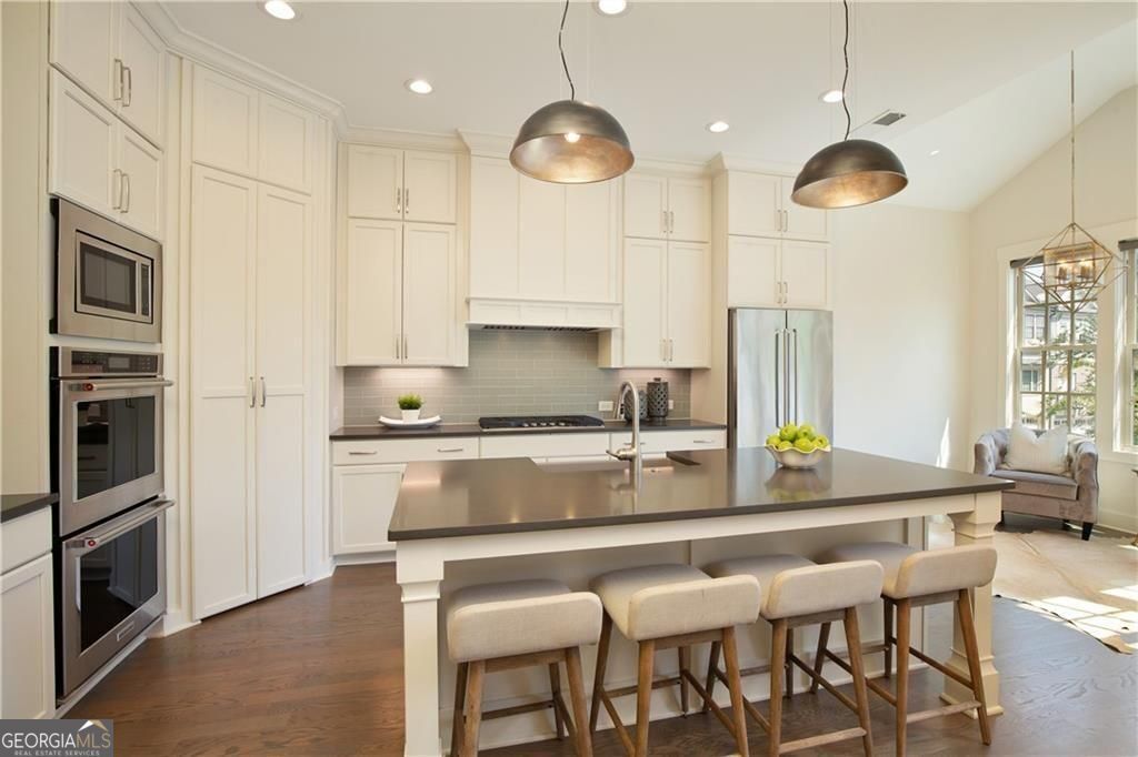 Welcome to timeless sophistication just steps from the vibrant heart of Historic Roswell. No rideshare needed for this location, location, location! Built in 2018 by the renowned John Weiland Collection, this light-filled 3-bedroom, 3.5-bathroom townhome blends classic charm with modern luxury. Step inside to discover soaring ceilings, rich French oak hardwood floors, and insulated windows that frame every room with warmth and natural light. The chef's kitchen is a culinary dream-featuring a gas cooktop, double ovens, a walk-in pantry, and seamless flow into the keeping room, breakfast nook, and formal dining area for effortless entertaining. Retreat to the light-filled owner's suite, a true sanctuary of comfort and style. Thoughtfully designed with a spacious layout, dual walk-in closets, and refined finishes, this private haven features a serene bath ideal for unwinding. Whether you're enjoying the walk-in shower or simply relaxing in the peaceful ambiance, every detail invites tranquility and escape. Enjoy the flexibility of multiple living spaces, plus a dedicated elevator shaft/closet for future accessibility. Both front and rear porches invite morning coffee or evening gatherings, while the quality craftsmanship throughout ensures lasting comfort and style. Wired for high-speed internet and AT&T Fiber ready, this home supports modern living with ease. Easy access to Georgia 400 and located just moments from Roswell's beloved shops, restaurants, parks, and cultural landmarks-this home offers the perfect blend of walkability, elegance, and thoughtful design.