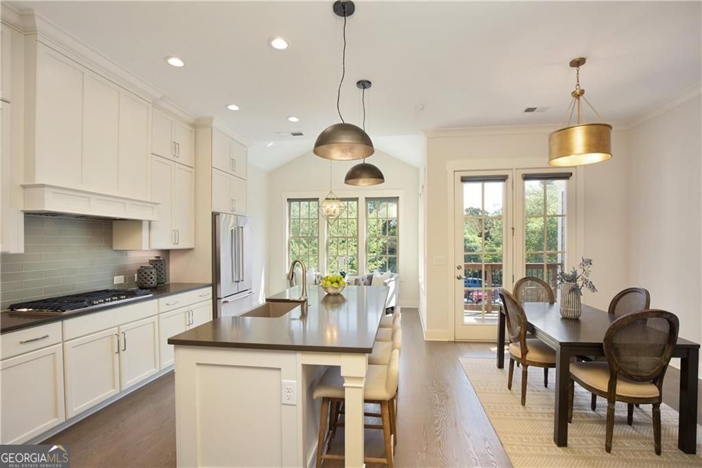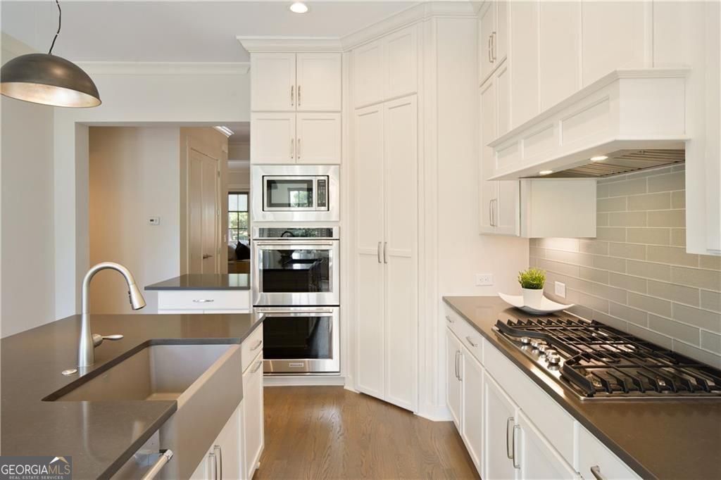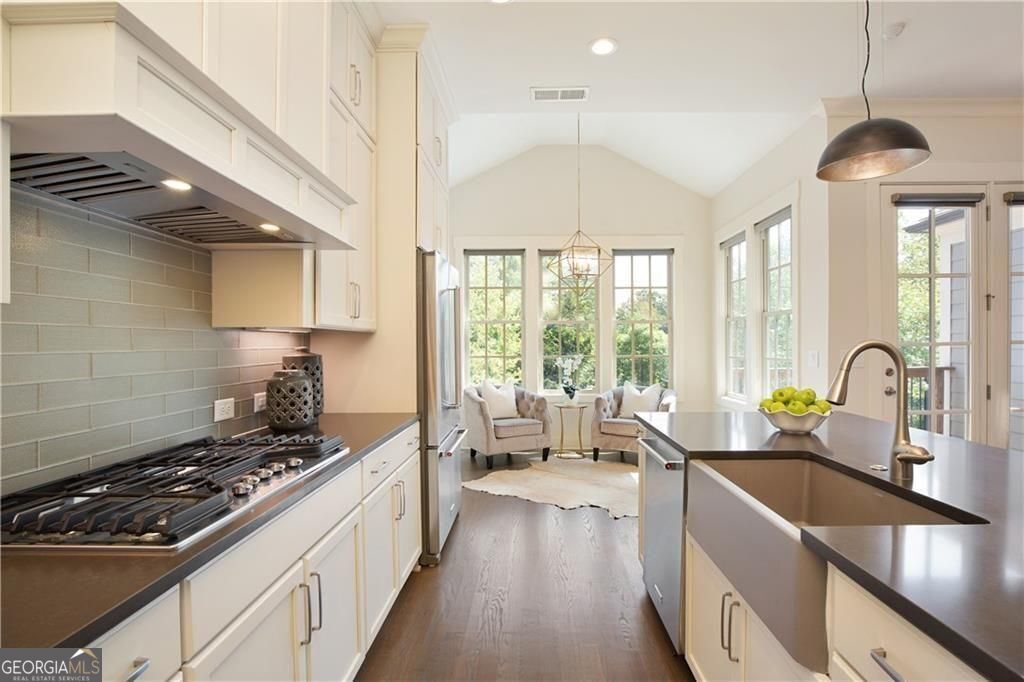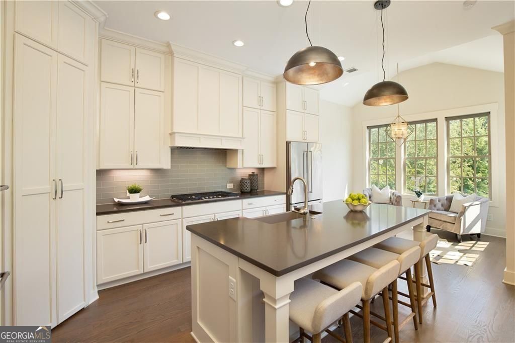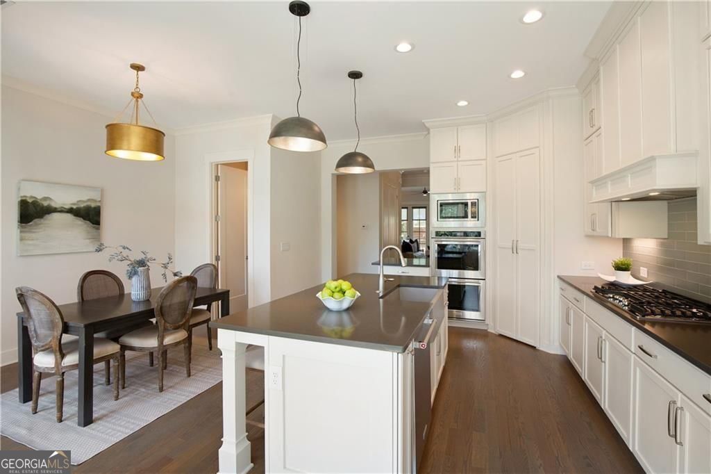 Welcome to timeless sophistication just steps from the vibrant heart of Historic Roswell. No rideshare needed for this location, location, location! Built in 2018 by the renowned John Weiland Collection, this light-filled 3-bedroom, 3.5-bathroom townhome blends classic charm with modern luxury. Step inside to discover soaring ceilings, rich French oak hardwood floors, and insulated windows that frame every room with warmth and natural light. The chef's kitchen is a culinary dream-featuring a gas cooktop, double ovens, a walk-in pantry, and seamless flow into the keeping room, breakfast nook, and formal dining area for effortless entertaining. Retreat to the light-filled owner's suite, a true sanctuary of comfort and style. Thoughtfully designed with a spacious layout, dual walk-in closets, and refined finishes, this private haven features a serene bath ideal for unwinding. Whether you're enjoying the walk-in shower or simply relaxing in the peaceful ambiance, every detail invites tranquility and escape. Enjoy the flexibility of multiple living spaces, plus a dedicated elevator shaft/closet for future accessibility. Both front and rear porches invite morning coffee or evening gatherings, while the quality craftsmanship throughout ensures lasting comfort and style. Wired for high-speed internet and AT&T Fiber ready, this home supports modern living with ease. Easy access to Georgia 400 and located just moments from Roswell's beloved shops, restaurants, parks, and cultural landmarks-this home offers the perfect blend of walkability, elegance, and thoughtful design.