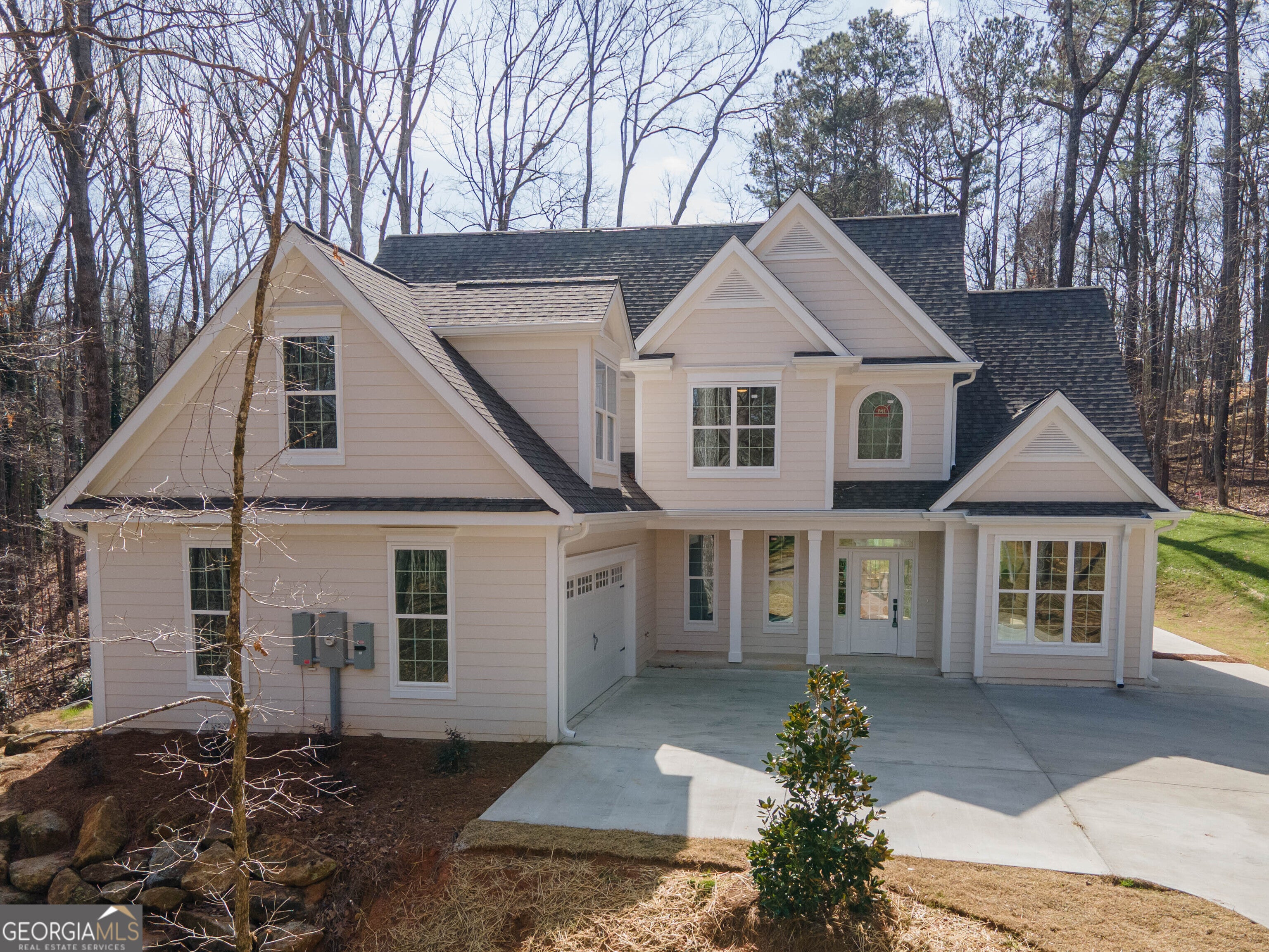 Newly Constructed Craftsman-Style Home in Fayette County This stunning Craftsman home sits on a private 1.34-acre cul-de-sac lot with a long driveway leading to a 2-car garage. The beautifully landscaped front yard, charming covered porch, and decorative boulders create striking curb appeal. Key Features: Approx. 2,355 sqft with 3 bedrooms & 3 full baths Primary Suite on Main - Vaulted ceilings, walk-in closet, separate tub & shower, private lavatory Great Room - Vaulted ceilings, fireplace, and wet bar for entertaining Bonus Spaces - Loft-style room upstairs plus a main-level bonus room/office Open Kitchen & Breakfast Nook - Seamlessly flows into family room; formal dining for special occasions Convenience - Laundry closet and spacious 2-car garage Blending elegance, functionality, and privacy, this home offers modern living in a tranquil Fayette County setting.
