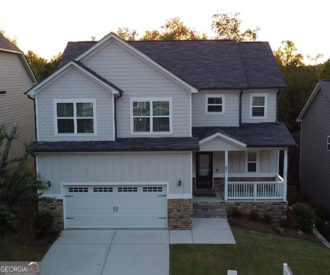 Just Reduced 10-23-25 to $432,900! Spacious 4-Bedroom Home with Finished Basement in Sought-After Northgate District! Welcome to your dream home! This beautifully maintained 4-bedroom, 2.5-bath, two-story home with a finished basement offers space, style, and function in one of the area's most desirable neighborhoods. Located just off the Millard Farmer Bypass and zoned for the award-winning Northgate High School, this property is ideal for growing families and commuters alike. Step inside to a bright, open floor plan featuring engineered hardwood flooring on the main level, a welcoming foyer, and a versatile media/flex room. The spacious living room centers around a stacked stone gas fireplace, flowing effortlessly into the dining area and modern kitchen. Enjoy cooking and entertaining with stainless steel appliances, white cabinetry, under-cabinet lighting, granite countertops, a large island with storage, and a walk-in pantry with custom shelving. Additional storage closet with built-ins and access to the rear deck and fenced backyard complete the main level. Upstairs, retreat to a large master suite with a walk-in tiled shower, glass surround, private water closet, dual raised vanities with granite, tile flooring, and a sunlit walk-in closet featuring upgraded shelving. Three additional bedrooms offer generous closet space and share a stylish hall bath with dual sinks, granite counters, and a tub/shower combo. A laundry room with tile flooring, closet, and window adds convenience to your daily routine. But the showstopper? The finished basement-a man-cave dream complete with sealed concrete floors, wooden-slat walls, corrugated metal accents, a custom-built bar, and burlap ceiling with party lighting. An additional finished room is stubbed for a bath/kitchen, offering even more potential. Large storage area and exterior door to the backyard provide both function and flexibility. Exterior features include concrete siding with stacked stone accents, a charming rocking chair front porch, oversized 20x24 garage, fresh landscaping, new interior paint, and new carpet in bedrooms, hallway, and stairs. The HOA provides weekly yard maintenance in spring/summer and bi-weekly in fall/winter, plus annual pine straw. Move-in ready and freshly pressure washed, this home is just minutes from shopping, dining, I-85, and offers a smooth commute to Atlanta Hartsfield-Jackson Airport and Downtown Atlanta. Don't miss out on this perfect blend of style, space, and location-schedule your private showing today! --