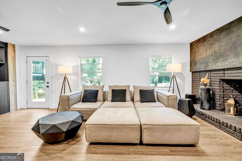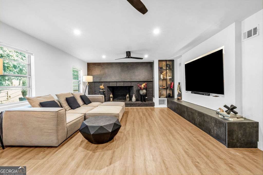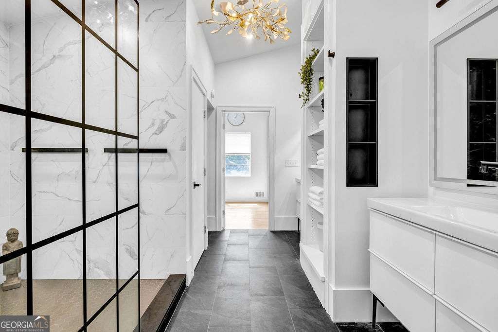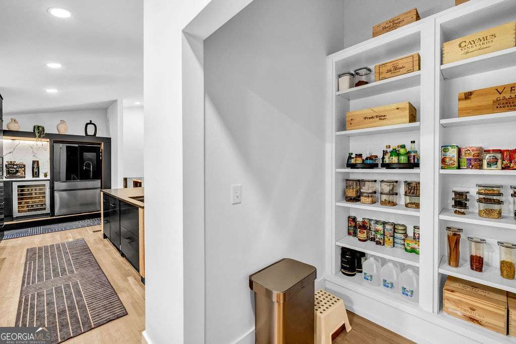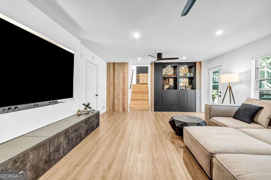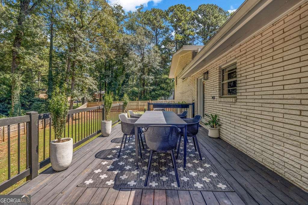 GORGEOUS 4 Level, 5 bed/ 3 bath Home with Chef's Kitchen & Designer Finishes in Atlanta GA! Stunning chef's kitchen, featuring a 48" 8-burner gas range with industrial hood, pot filler, oversized 8' island with black leathered quartz, built-in beverage station with wine fridge and an 11' vaulted walk-in pantry. Quartz counters and backsplash extend to the ceiling for a sleek finish! Serene primary suite boasts 11' vaulted ceilings, spa-like owners bath with double vanity, LED mirrors, walk-in shower, smart toilet, W/D hook-ups and an oversized two-sided closet with built-ins! both upstair secondary bedrooms feature vaulted ceilings, custom bookcases and ample storage. The spacious living room offers a fireplace, built-ins, a stylish bar with storage & lighting, and a secret door to the lower level- perfect for an added sense of privacy, secure spaces, or a fun surprise for guests! The fully finished lower level offers two additional bedrooms, a full bath, gym/flex space, laundry and barn doors for added style. This home is complete with refinished hardwood floors on upper levels & LVP on lower, adjustable can lights, new fans, abundant built-ins, and thoughtful upgrades . Enjoy the fully fenced backyard with multiple outdoor areas designed for both relaxation and entertaining. A two-level deck & private patio located beneath the kitchen deck - a perfect shaded retreat. New furnace & termite warranty in 2023. Move-in ready and FULL of high-end touches. NO HOA. Welcome Home!
