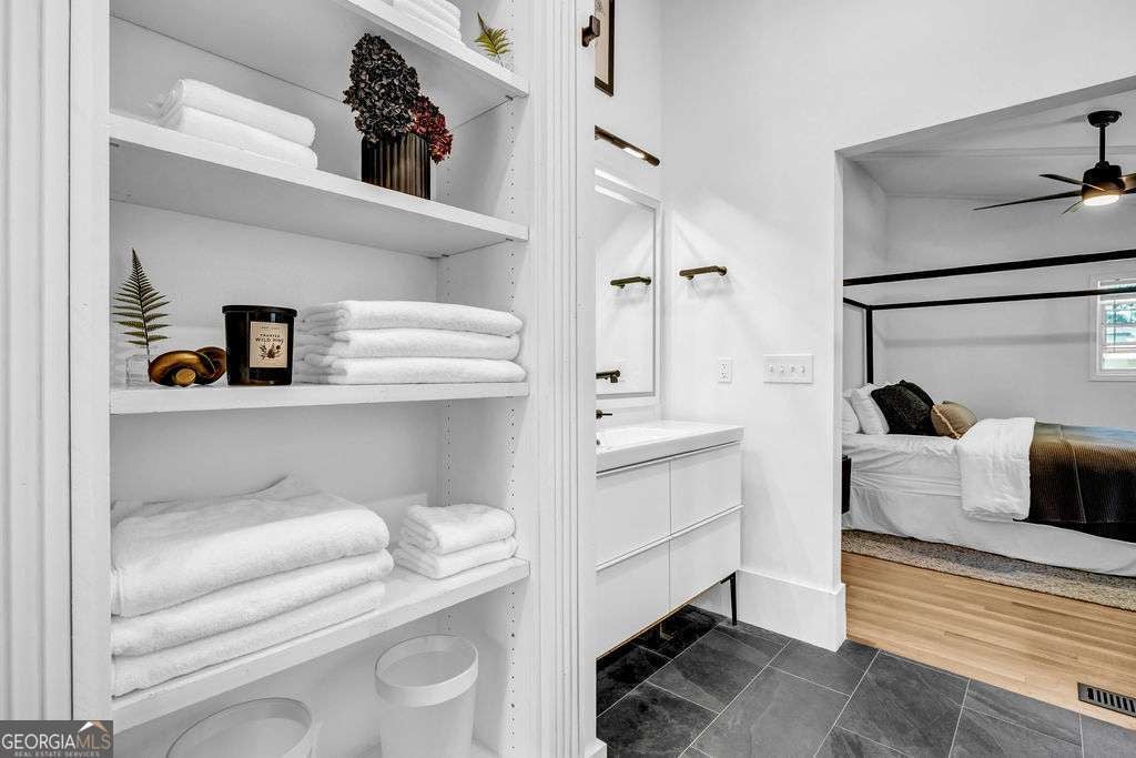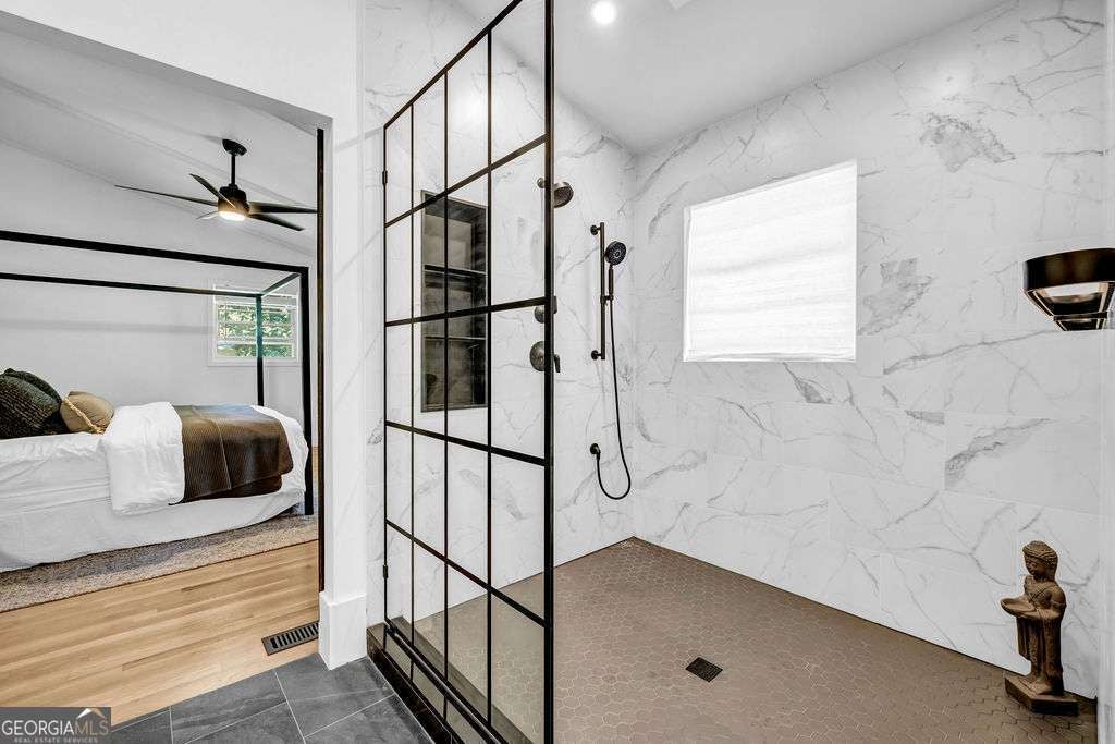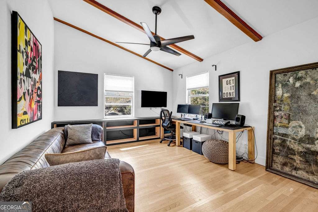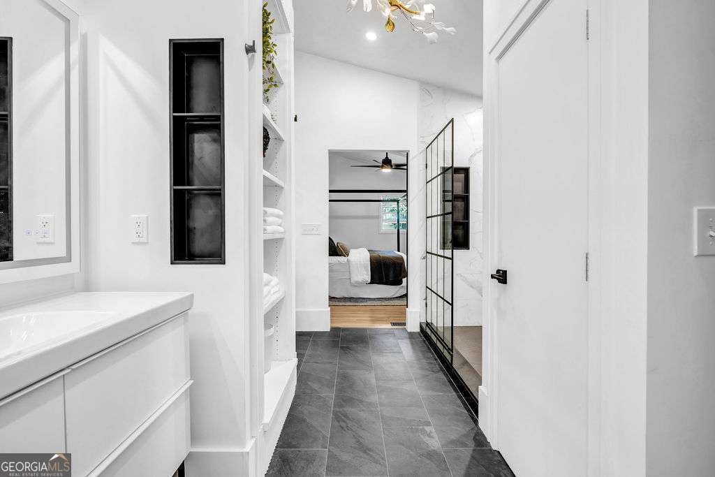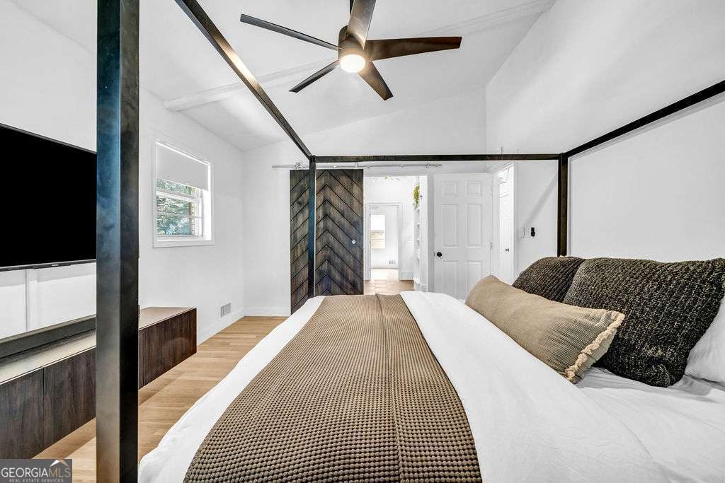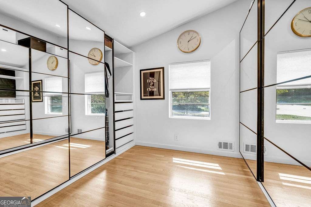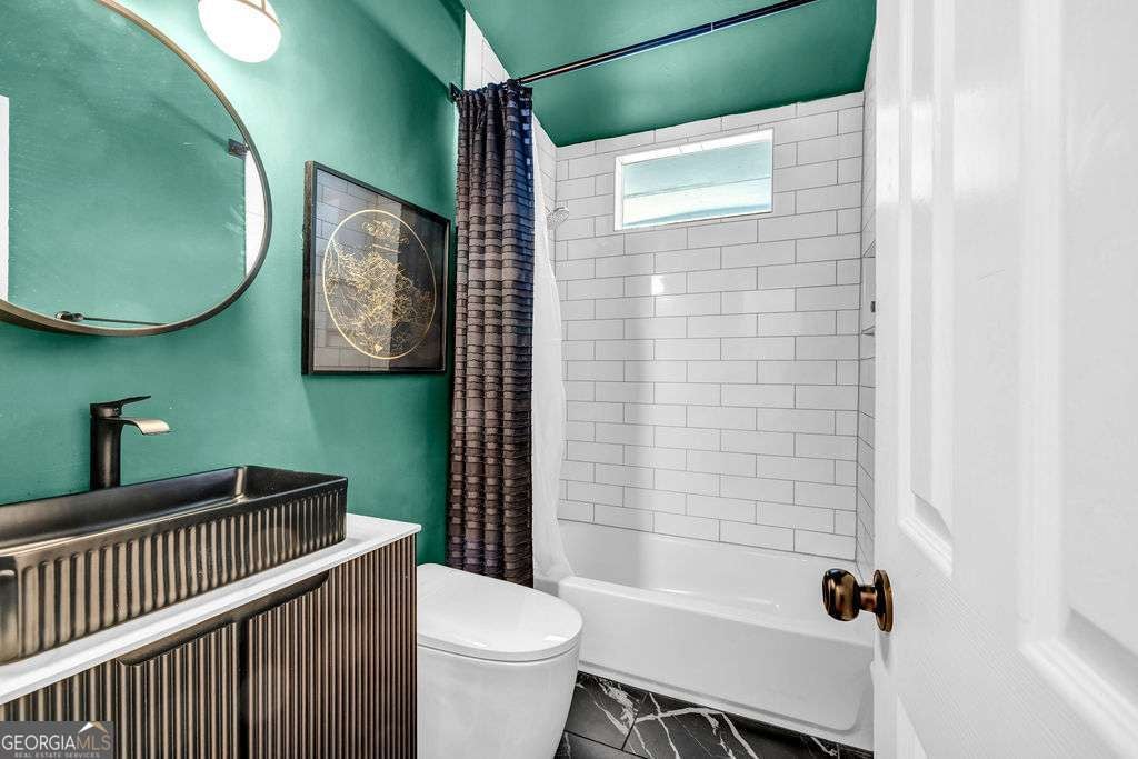 GORGEOUS 4 Level, 5 bed/ 3 bath Home with Chef's Kitchen & Designer Finishes in Atlanta GA! Stunning chef's kitchen, featuring a 48" 8-burner gas range with industrial hood, pot filler, oversized 8' island with black leathered quartz, built-in beverage station with wine fridge and an 11' vaulted walk-in pantry. Quartz counters and backsplash extend to the ceiling for a sleek finish! Serene primary suite boasts 11' vaulted ceilings, spa-like owners bath with double vanity, LED mirrors, walk-in shower, smart toilet, W/D hook-ups and an oversized two-sided closet with built-ins! both upstair secondary bedrooms feature vaulted ceilings, custom bookcases and ample storage. The spacious living room offers a fireplace, built-ins, a stylish bar with storage & lighting, and a secret door to the lower level- perfect for an added sense of privacy, secure spaces, or a fun surprise for guests! The fully finished lower level offers two additional bedrooms, a full bath, gym/flex space, laundry and barn doors for added style. This home is complete with refinished hardwood floors on upper levels & LVP on lower, adjustable can lights, new fans, abundant built-ins, and thoughtful upgrades . Enjoy the fully fenced backyard with multiple outdoor areas designed for both relaxation and entertaining. A two-level deck & private patio located beneath the kitchen deck - a perfect shaded retreat. New furnace & termite warranty in 2023. Move-in ready and FULL of high-end touches. NO HOA. Welcome Home!