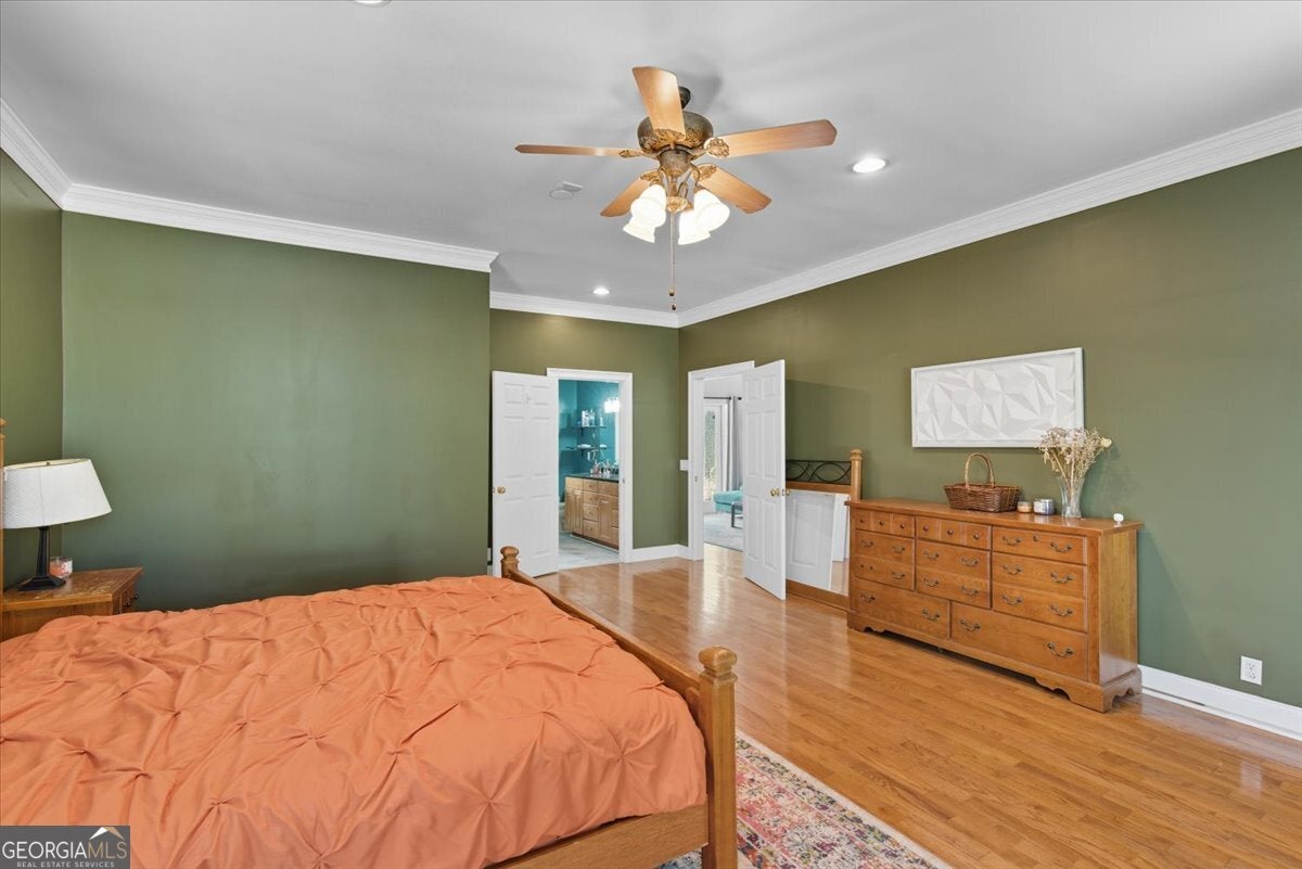 Back on the market through no fault of the seller! This 4-bedroom, 3-bath home, built in 2000, sits on a spacious lot just over half an acre and beautifully combines timeless charm with thoughtful modern updates. Inside, you'll find polished hardwood floors, vaulted ceilings, crown molding, and recessed lighting throughout. The kitchen stands out with navy cabinetry, new sink (2023), built-in oven, microwave over gas stovetop, and 2022 dishwasher. The remodeled bathroom (2023) features a glass-enclosed shower, freestanding tub, and walk-in closet with shelving. Additional upgrades include a new hot water heater (2025), Ecobee thermostat (2024), Vivint security system, and updated CATV Ethernet wiring. A wood staircase, laundry room with cabinetry, and fireplace with mantel wall add warmth and function. Step outside to a covered front porch with stone tile, tongue-and-groove ceiling, and white columns - plus a detached double garage, curved concrete driveway, and peaceful community lake views.