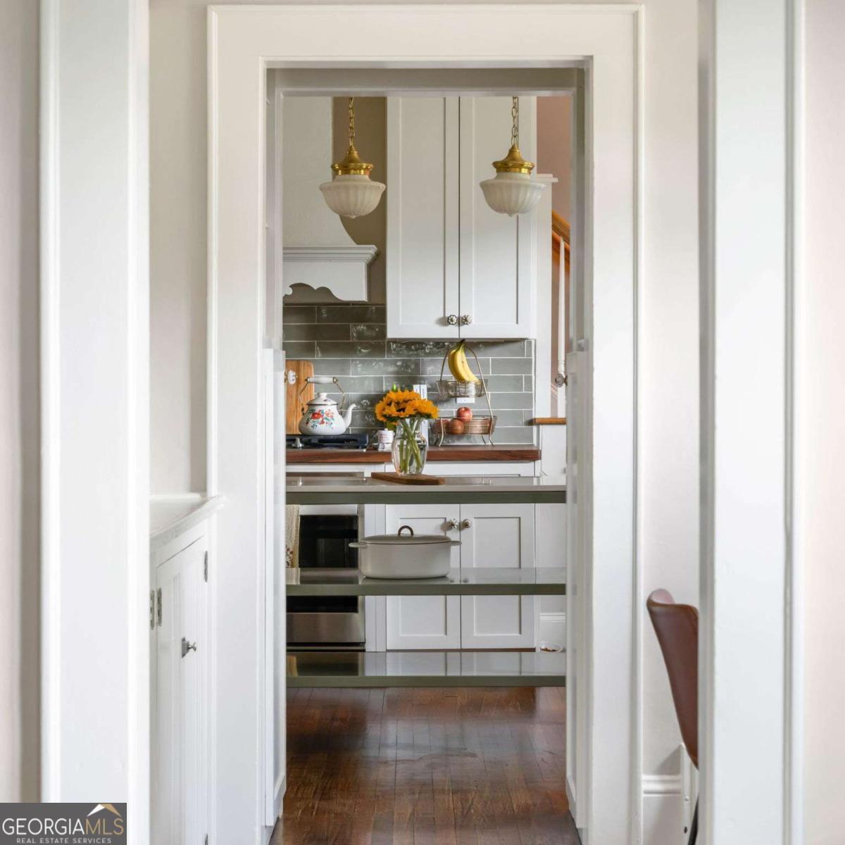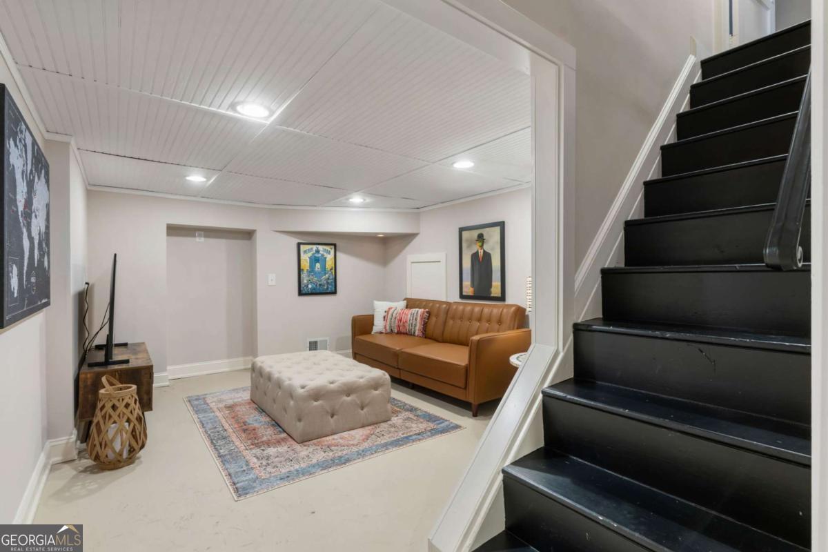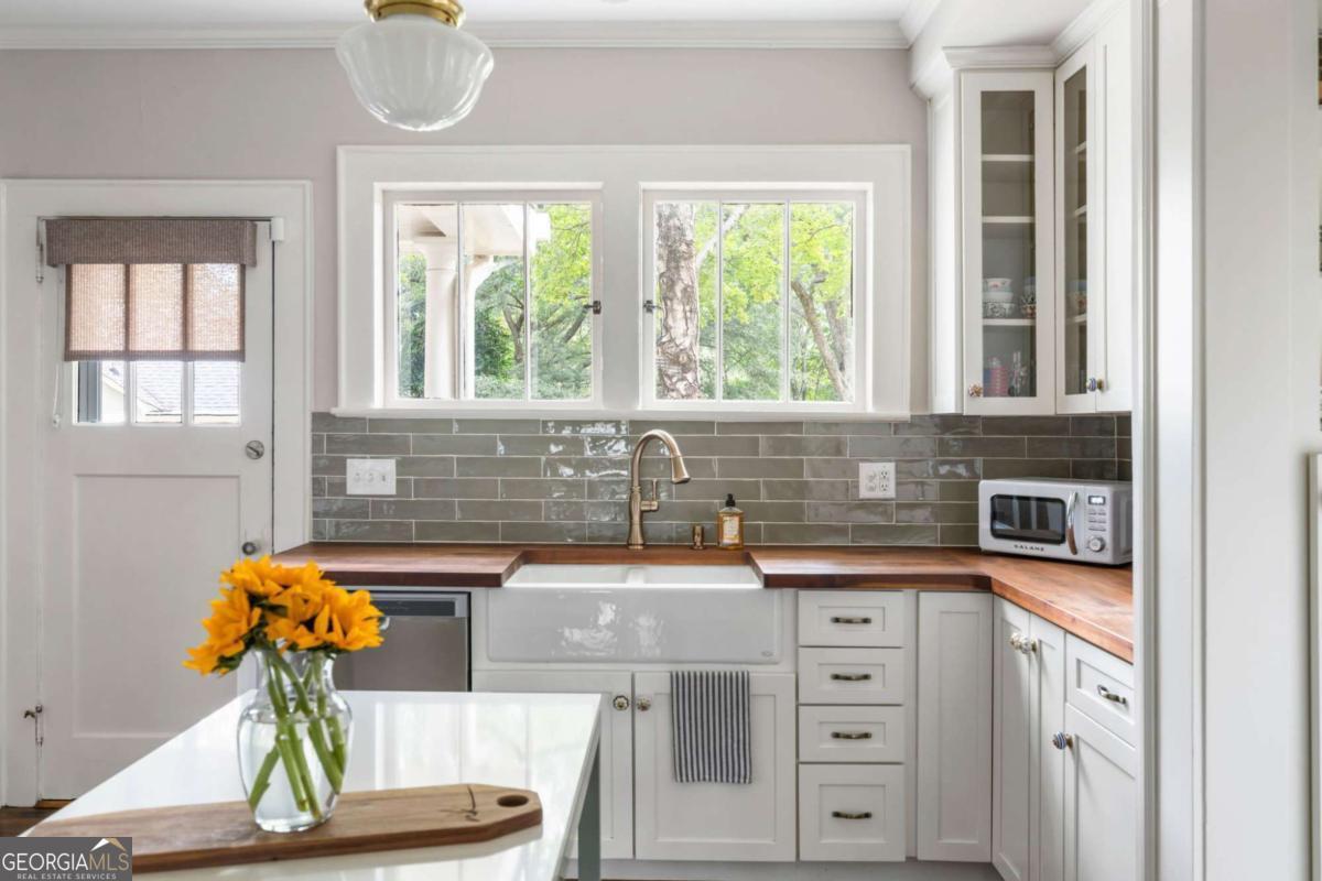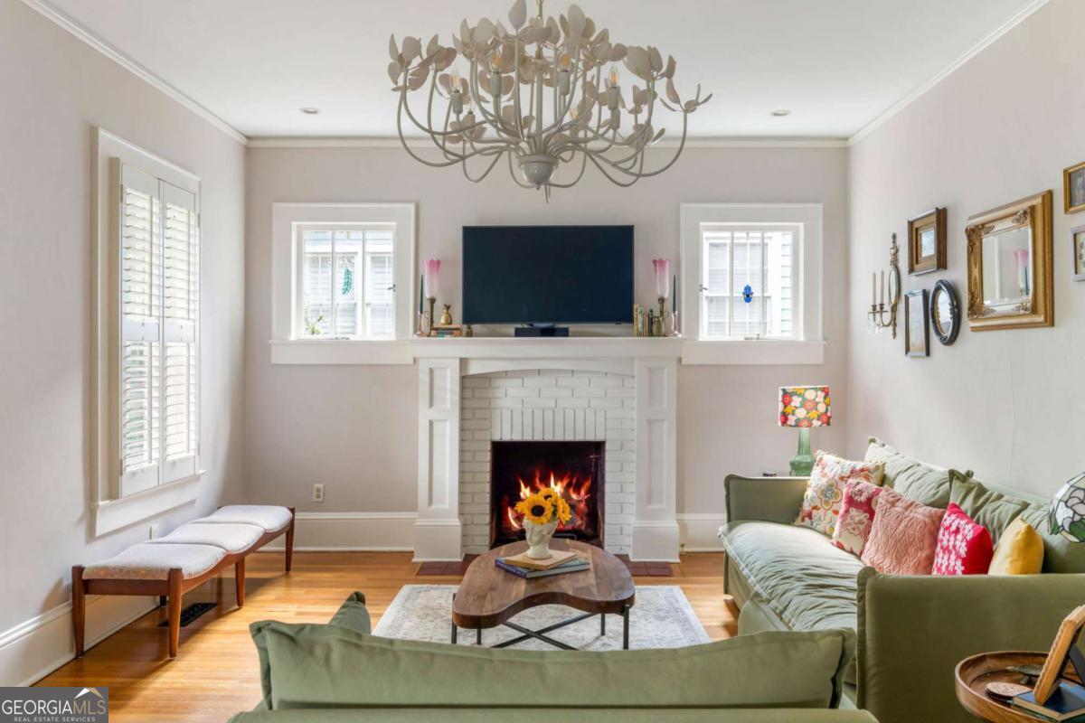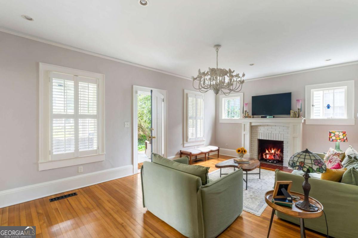 Step back in time with this charming 1920s home, perfectly situated just blocks from historic Marietta Square. Imagine starting your weekend with a stroll to the local farmers market, watching fireworks from your own front lawn on the 4th of July, immersing yourself in year-round festivals, and enjoying all the dining, shopping, and community events that make the Square so beloved. Inside, this four bedroom, two bath home radiates warmth and character with original hardwood floors, millwork, and a gas log fireplace. The kitchen is a true heart of the home - a space that invites you to simmer a pot of soup or savor your afternoon tea. Outfitted with classic white cabinetry, new walnut butcher block counters, quartz-topped custom island, and abundant natural light, it's a kitchen where memories are meant to be made. The primary suite occupies the second level and offers a private retreat with a full bath, while the finished lower basement level provides flexible space for a home gym, media room, or casual hangout - plus ample storage. Outdoors, the charm continues with a beautifully landscaped yard, a welcoming front porch perfect for morning coffee, and a detached two-car garage. This is more than a home. It's a lifestyle steeped in history, community, and everyday comfort, all within steps of the vibrant Marietta Square. Additional upgrades and features include: Updated light fixtures, new interior paint, new HVAC system with EcoBee thermostats, tankless water heater, new garage doors and wall panels, and full irrigation system with new front sod.
