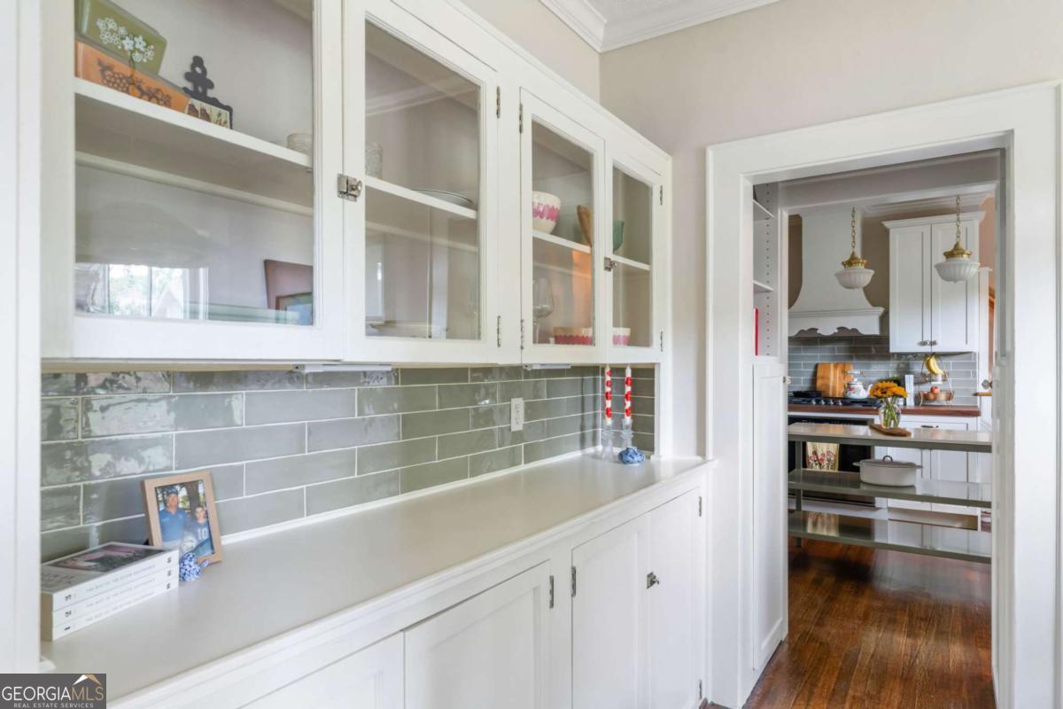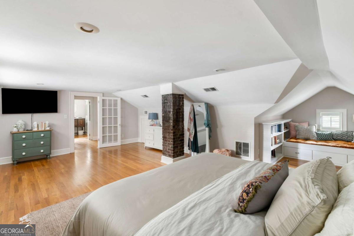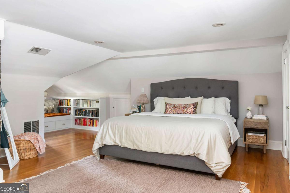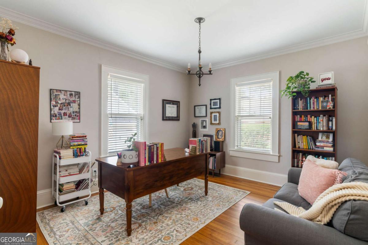 Step back in time with this charming 1920s home, perfectly situated just blocks from historic Marietta Square. Imagine starting your weekend with a stroll to the local farmers market, watching fireworks from your own front lawn on the 4th of July, immersing yourself in year-round festivals, and enjoying all the dining, shopping, and community events that make the Square so beloved. Inside, this four bedroom, two bath home radiates warmth and character with original hardwood floors, millwork, and a gas log fireplace. The kitchen is a true heart of the home - a space that invites you to simmer a pot of soup or savor your afternoon tea. Outfitted with classic white cabinetry, new walnut butcher block counters, quartz-topped custom island, and abundant natural light, it's a kitchen where memories are meant to be made. The primary suite occupies the second level and offers a private retreat with a full bath, while the finished lower basement level provides flexible space for a home gym, media room, or casual hangout - plus ample storage. Outdoors, the charm continues with a beautifully landscaped yard, a welcoming front porch perfect for morning coffee, and a detached two-car garage. This is more than a home. It's a lifestyle steeped in history, community, and everyday comfort, all within steps of the vibrant Marietta Square. Additional upgrades and features include: Updated light fixtures, new interior paint, new HVAC system with EcoBee thermostats, tankless water heater, new garage doors and wall panels, and full irrigation system with new front sod.