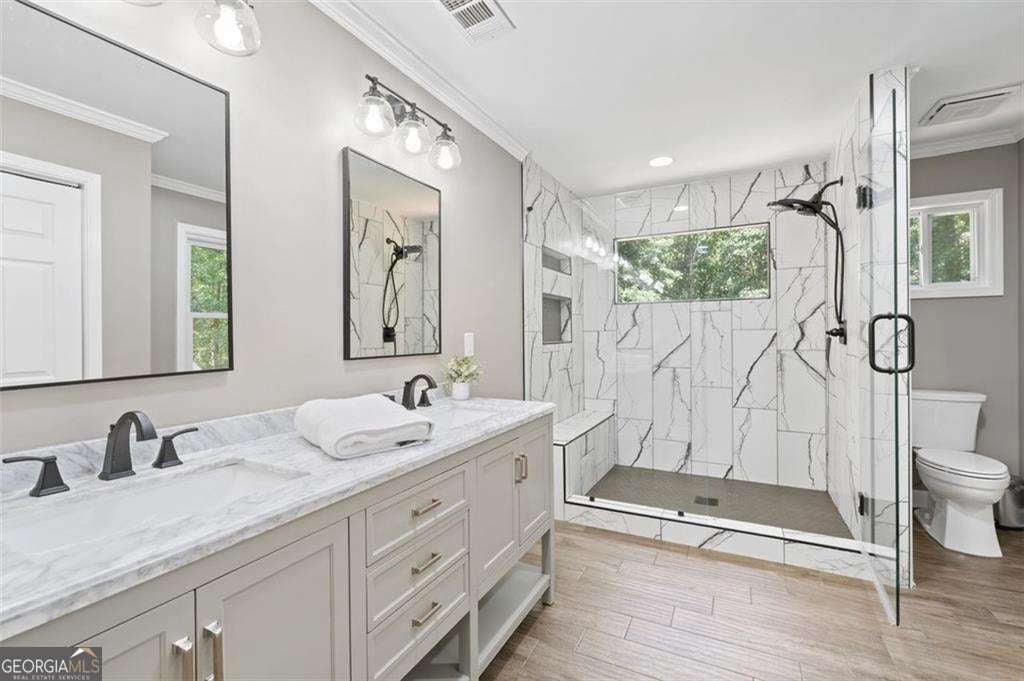 PRICE IMPROVEMEMT FOR QUICK SELL!*** AMAZING OPPORTUNITY IN EAGLE WATCH COUNTRY CLUB***-a premier Swim/Tennis/Golf community in the heart of Woodstock!! sELLER TO PROVIDE $5,000 IN CONCESSIONS AS FLEX MONEY TO USE FOR CLOSING COSTS, UPGRADES OR BUYING DOWN THE RATE!***This home features 4BR/3.5BA home features a new roof, full security system, fresh paint, refinished hardwoods, and new bathrooms. The Chef's White Kitchen boasts Double Ovens, Two large Stainless Refrigerators, and GAS STOVE option! Brand-New Two-Tier Deck overlooking fenced backyard oasis w/ professional landscaping, wooded views & playground! The oversized Owner's Suite offers Trey ceilings, Cedar-lined closet, and New Spa-like Bath with Marble finishes. Two additional rooms with Upgraded Bathrm and upstairs Laundry Room! Finished Terrace level with full bath and Large flex area is perfect for a gym, office, or media room with walkout deck! Perfect for inlaw/teen suite! With Top-rated Schools, Walking trails, and Resort-style amenities, Golf, Swim, Pickle Ball, Playgrounds!-this home delivers Lifestyle + Luxury! SELLER IS MOTIVATED. BRING ALL OFFERS! Preferred Lender (GRA) adds $2,500 credit OR 1-year Home Warranty!