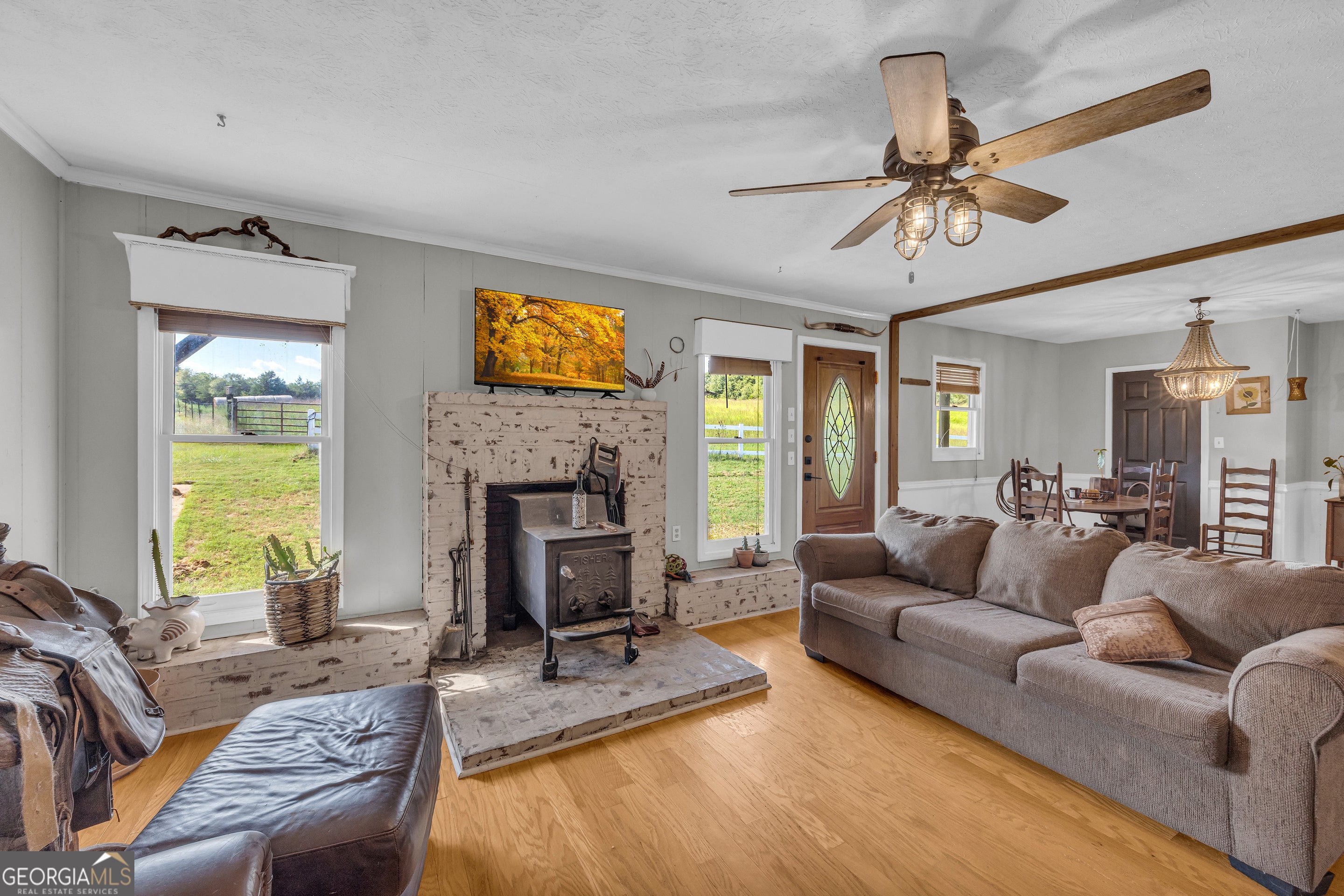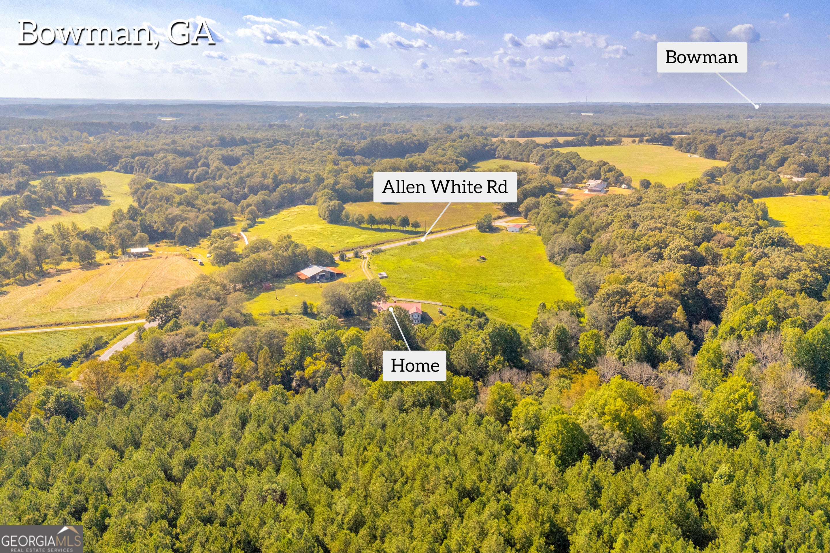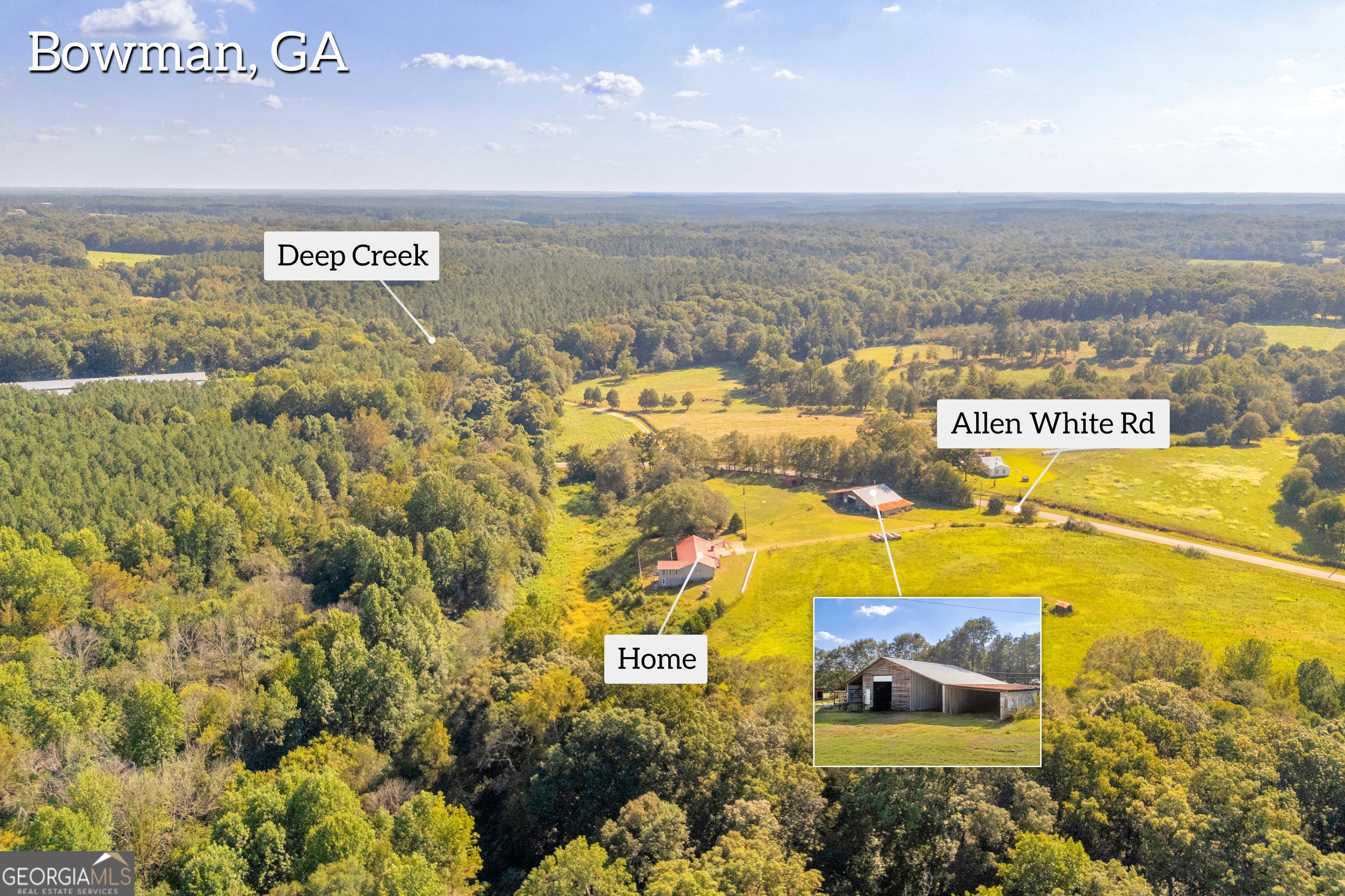 Charming Ranch on Nearly 8 Acres in Bowman, GA - Ready for Your Personal Touch! Welcome to this spacious 3-bedroom, 2-bathroom ranch-style home situated on just under 8 acres of beautiful land in Bowman, GA. Perfectly positioned for privacy, this property offers an abundance of potential and is ideal for anyone looking to update and customize their dream home while enjoying the tranquility of country living. Key Features: 3 Bedrooms, 2 Bathrooms - A comfortable layout with hardwood floors throughout the main living areas, tile flooring in the bathrooms, and carpeted bedrooms. Bonus Room - Extra space for an office, playroom, or den-endless possibilities! Brick Fireplace with Wood Stove Insert - Cozy up in the living room by the warm, crackling fire. Partial Unfinished Basement - Additional storage space or potential for expansion. Large Front Porch - Perfect for relaxing or entertaining while enjoying the scenic views of the surrounding land. Tin Roof - Classic country charm with long-lasting durability. Outdoor Features: Almost 8 Acres of Land - Expansive grounds with large oak trees, lush fenced pasture, and a creek running along the back-ideal for livestock or gardening. Big Barn - A large barn for storing equipment, hay, or housing animals. Wood Shed & Run-in Shed - Convenient structures for storing firewood or providing shelter for animals. Whether you're a hobby farmer, animal lover, or just someone looking for a peaceful retreat, this property has everything you need to create your perfect countryside sanctuary. Bring your animals and enjoy all the space, privacy, and natural beauty this land has to offer. This home is ready for your updates and personal touch! With a little updating, this can be transformed into the perfect family home. Don't miss out on this unique opportunity-schedule your private showing today!