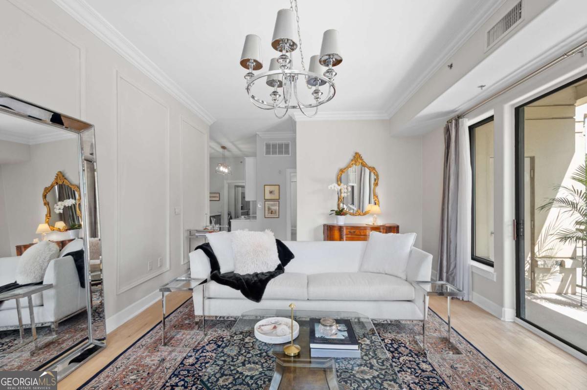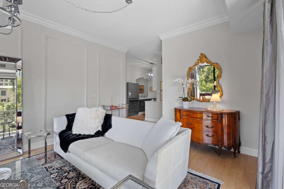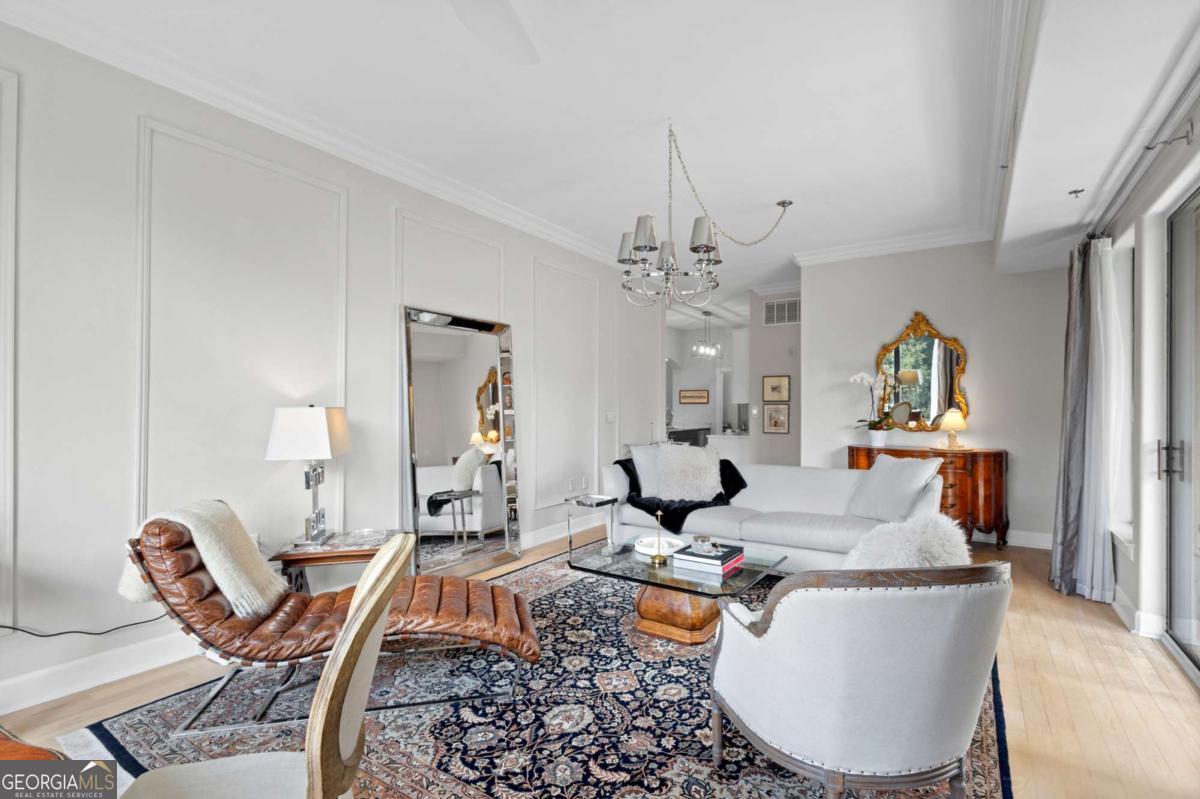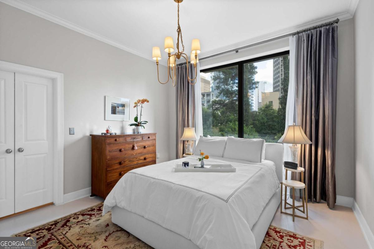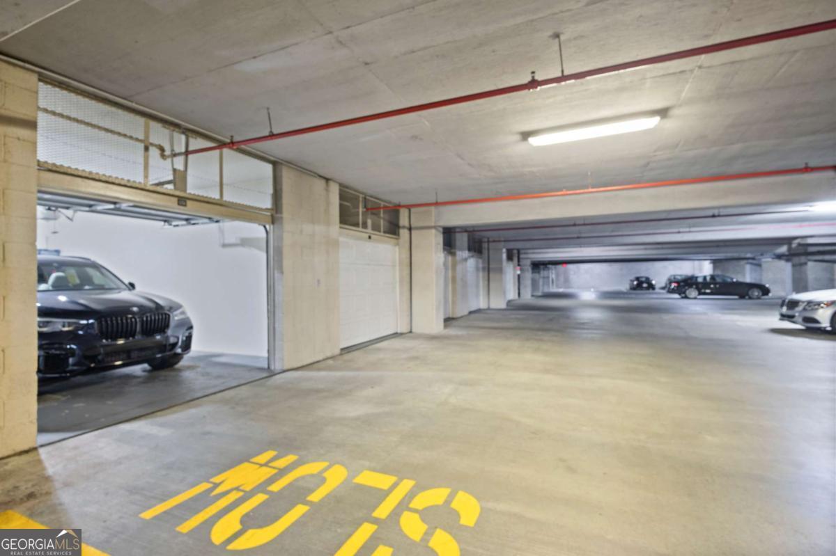 Welcome to sophisticated and luxurious living located in the prestigious Paramount at Buckhead condominium, in a completely renovated and spacious 1303 square foot home. Unwind on your expansive private balcony featuring stunning city skyline and treetop views, which are also visible from every window in this corner unit. The spacious open living concept has ten-foot ceilings, moldings, and many other custom features, and is perfect for entertaining in the massive living room. There is a designated dining room adjacent to the gourmet kitchen, which features high-end professional stainless appliances, quartz countertops and backsplash. Retreat to the primary bedroom and enjoy a walk-in closet that has been completely customized to showcase all your items as if you were in a boutique. The bathroom features a large dual vanity with Kohler fixtures and quartz countertop, with a large soaking tub and shower, and Toto toilet. The absolute highlight of this unit is a RARE, extra-large, 350 square feet (13.5'W x 25'L x 10'H) deeded private garage located in a prime location within the secure, gated, subterranean parking. This private garage provides extra storage and is the ultimate security for your prized vehicle. Experience the perfect blend of luxury and convenience at The Paramount at Buckhead, where every detail is thoughtfully curated for modern living. Amenities in the building include: Tennis Court; Pickleball Courts; Saltwater Pool; Cabanas with Televisions next to the Pool; Gym; Wine Tasting Room; Gourmet Kitchen and Lounge for Large Gatherings; Business Center with Three Private Meeting Rooms; 24/7 Concierge Services; Expansive Manicured Gardens with Fire Pit and Grilling Facilities; and a Private Screening Room. There is unique access behind the building to bypass the traffic on Peachtree Road to easily access Lenox Road and 400. The Paramount at Buckhead affords the best of city living as you can conveniently walk to restaurants, Lenox Mall, Phipps Plaza, Lifetime Fitness, and Marta. Award-winning restaurants such as Nobu, Mission and Market, Little Alley Steakhouse, South City Kitchen, Seven Lamps, and St. Cecilia are all within walking distance. The Marta Red Line Buckhead station entrance is literally across the street, for easy transport to the airport or downtown.