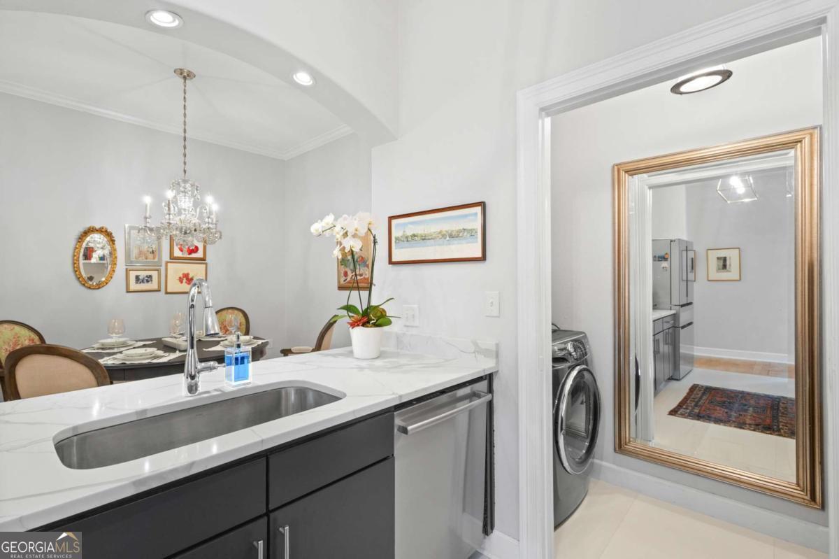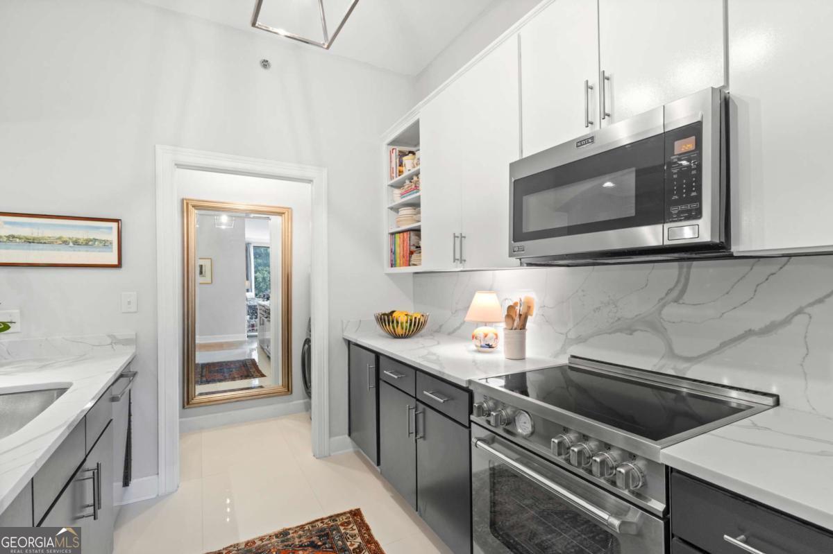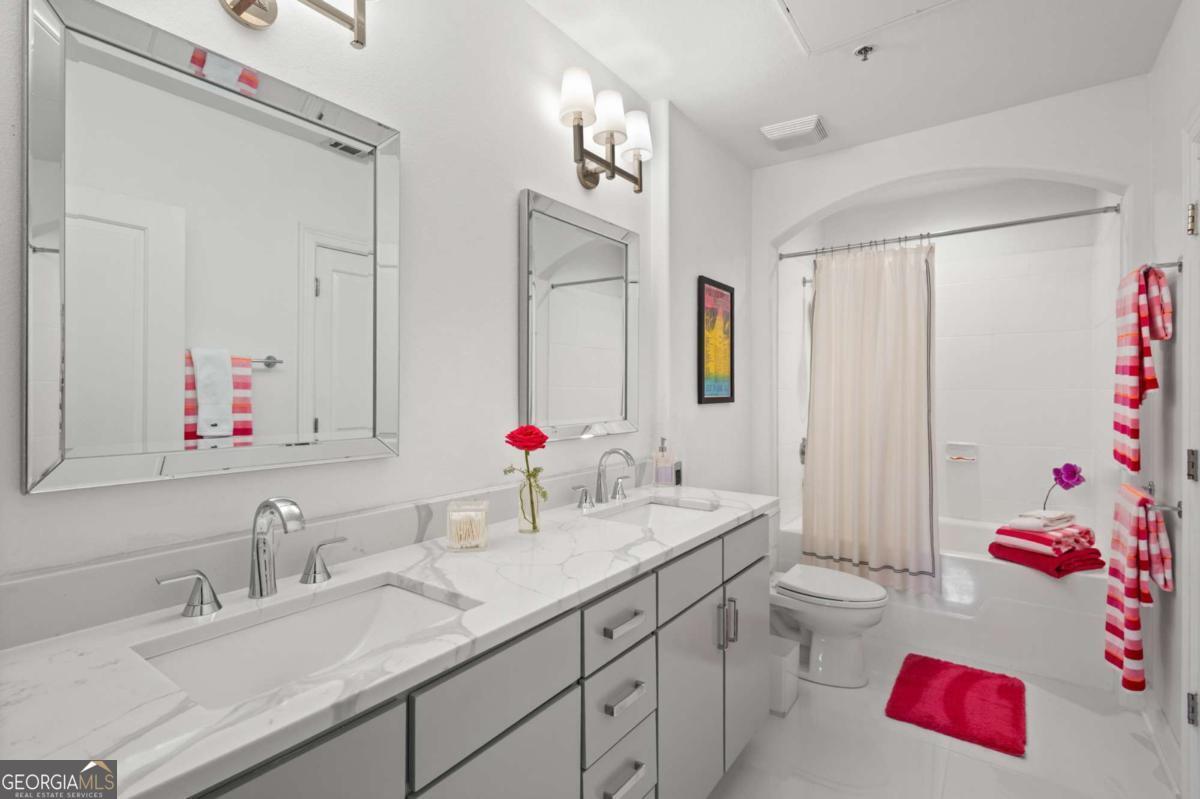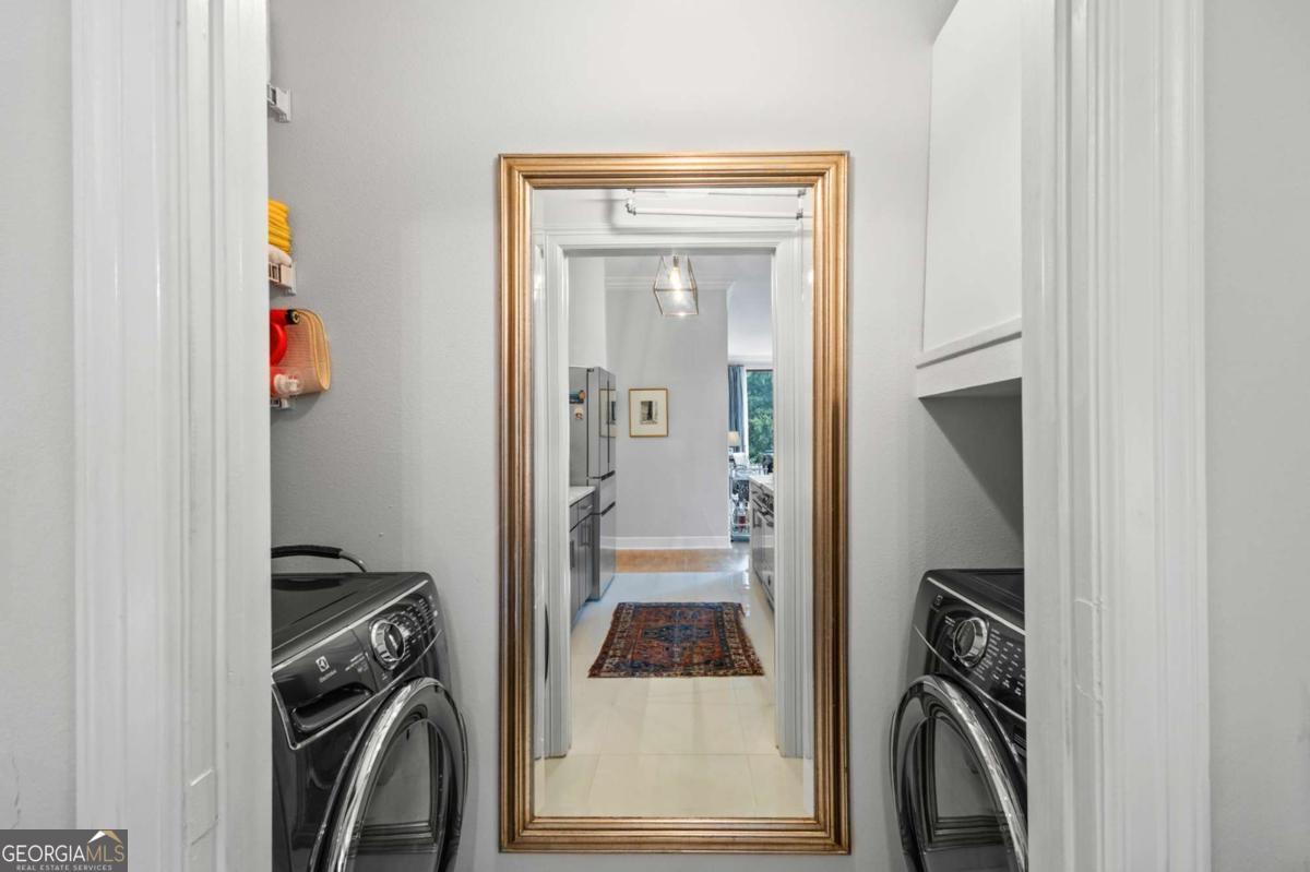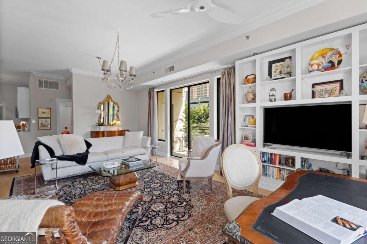 Welcome to sophisticated and luxurious living located in the prestigious Paramount at Buckhead condominium, in a completely renovated and spacious 1303 square foot home. Unwind on your expansive private balcony featuring stunning city skyline and treetop views, which are also visible from every window in this corner unit. The spacious open living concept has ten-foot ceilings, moldings, and many other custom features, and is perfect for entertaining in the massive living room. There is a designated dining room adjacent to the gourmet kitchen, which features high-end professional stainless appliances, quartz countertops and backsplash. Retreat to the primary bedroom and enjoy a walk-in closet that has been completely customized to showcase all your items as if you were in a boutique. The bathroom features a large dual vanity with Kohler fixtures and quartz countertop, with a large soaking tub and shower, and Toto toilet. The absolute highlight of this unit is a RARE, extra-large, 350 square feet (13.5'W x 25'L x 10'H) deeded private garage located in a prime location within the secure, gated, subterranean parking. This private garage provides extra storage and is the ultimate security for your prized vehicle. Experience the perfect blend of luxury and convenience at The Paramount at Buckhead, where every detail is thoughtfully curated for modern living. Amenities in the building include: Tennis Court; Pickleball Courts; Saltwater Pool; Cabanas with Televisions next to the Pool; Gym; Wine Tasting Room; Gourmet Kitchen and Lounge for Large Gatherings; Business Center with Three Private Meeting Rooms; 24/7 Concierge Services; Expansive Manicured Gardens with Fire Pit and Grilling Facilities; and a Private Screening Room. There is unique access behind the building to bypass the traffic on Peachtree Road to easily access Lenox Road and 400. The Paramount at Buckhead affords the best of city living as you can conveniently walk to restaurants, Lenox Mall, Phipps Plaza, Lifetime Fitness, and Marta. Award-winning restaurants such as Nobu, Mission and Market, Little Alley Steakhouse, South City Kitchen, Seven Lamps, and St. Cecilia are all within walking distance. The Marta Red Line Buckhead station entrance is literally across the street, for easy transport to the airport or downtown.