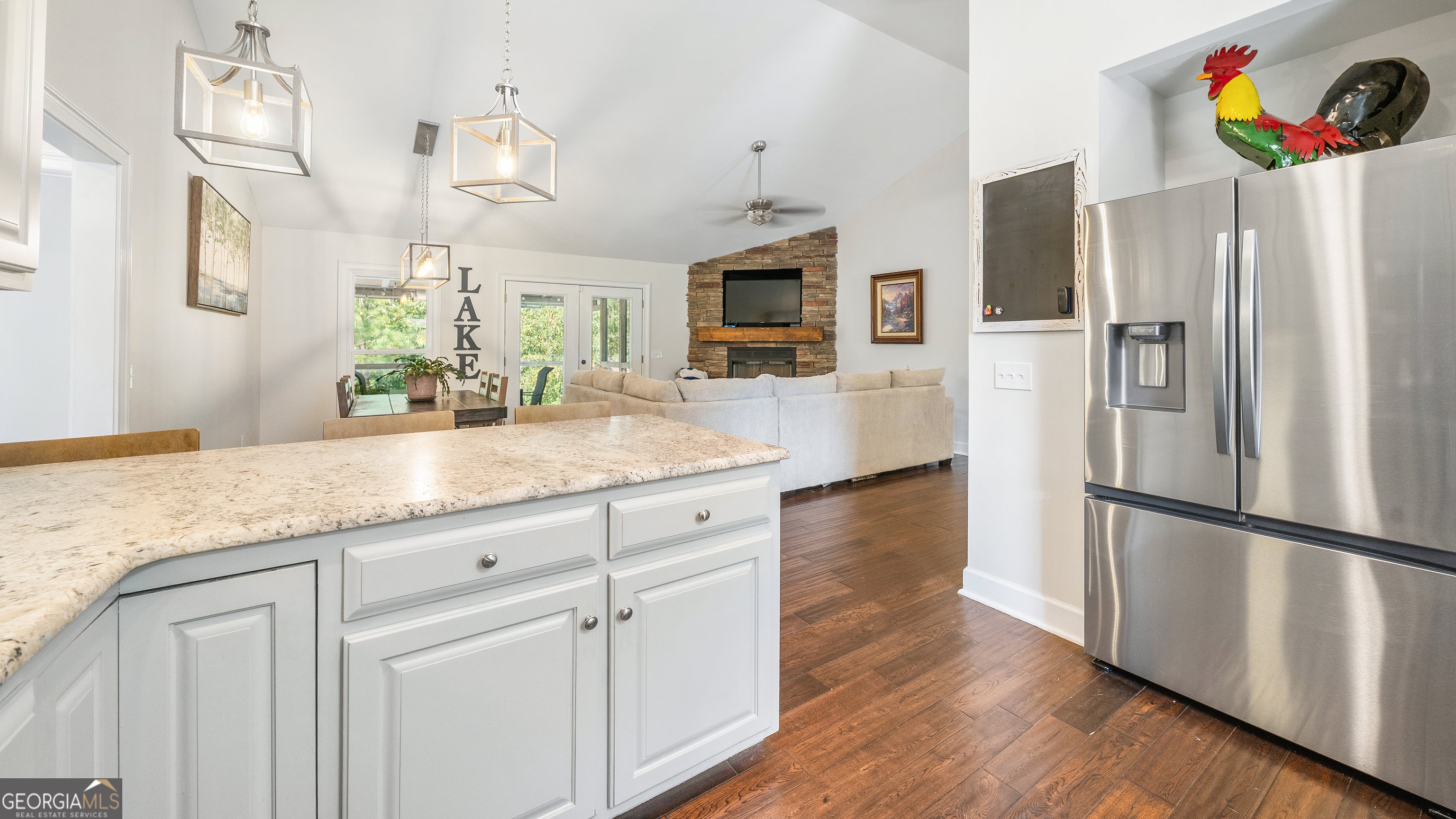 Charming Lake Home on Beautiful Lake Wedoweee!!! This stunning 4-bedroom, 3-bath lake home offers the perfect blend of comfort and style with plenty of space for family and friends. The main level features a spacious family room with a gorgeous stack stone fireplace with gas logs, a dining area, and a modern kitchen with stone countertops & all kitchen appliances.. The master suite is located on the main level and boasts a luxurious bath with a separate shower. Two additional bedrooms and a full bath are also conveniently located on the main floor. The full finished basement provides an expansive rec room, an additional bedroom, and a full bath-perfect for guests or entertaining. Step outside to enjoy water's edge living complete with a golf cart path leading directly to the lake and a top-of-the-line dock for all your water activities. New Roof to be installed prior to closing. If you're looking for lakefront living with style, space, and convenience, this is the home for you!