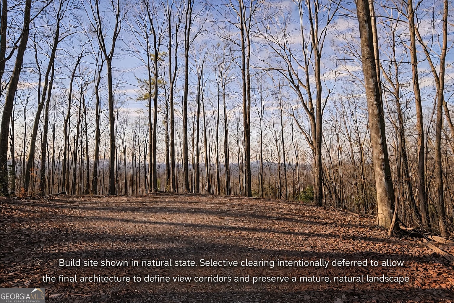 Set within a gated mountain community in Ellijay, this 6.87-acre homesite offers a rare combination of privacy, elevation, and certainty. A completed driveway leads to a proven building site thoughtfully positioned to capture long-range Blue Ridge Mountain views. Bordering the Chattahoochee National Forest, the property benefits from enduring privacy and a protected natural backdrop. What distinguishes this offering is not only the land, but the meaningful work already completed. A fully designed luxury mountain residence has been created specifically for this site, with floor plans, elevations, and site orientation in place. The architecture is intentionally tailored to the topography, approach, and view corridors, providing a clear and executable vision for a refined mountain estate. Surrounded by mature hardwoods and preserved natural terrain, the homesite balances seclusion with accessibility. Located a short drive from downtown Ellijay, owners enjoy convenient access to dining, wineries, hiking, and outdoor recreation, while returning home to a quiet, elevated setting. This is an opportunity to secure a premier mountain homesite with an established building site and a resolved architectural plan, significantly reducing the time, uncertainty, and upfront work typically associated with building in the mountains.
