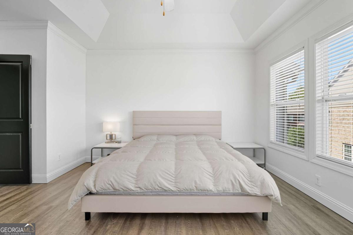 Beautifully Maintained Townhouse - Move-In Ready! This stunning townhouse offers a 2-car garage, abundant natural light, and an open-concept floor plan perfect for modern living. Features include: Main Level: Hardwood floors, a cozy fireplace, and a chef's kitchen with granite countertops, stainless steel appliances, and a gas stove. Step outside to a private deck ideal for outdoor entertaining. Upstairs: The spacious owner's suite boasts a tray ceiling, spa-like bath with soaking tub, separate shower, dual vanity, and a large walk-in closet. A guest suite with vaulted ceilings, full bath, and walk-in closet provides comfort and privacy. Terrace Level: A third bedroom/bonus room with full bath and separate entry-perfect for a media room, office, or guest suite. Recent Updates: Hardwood flooring, new carpet, LVP flooring, and fresh paint. Location: Conveniently located near Peachtree Parkway, Peachtree Industrial Blvd, The Forum Shops, and top dining options. Investment Note: The community leasing cap is set at 30 units and has not yet been reached. Buyers are responsible for confirming the current number of available leasing slots with the HOA. This home is move-in ready, in excellent condition, and won't last long-don't miss it!