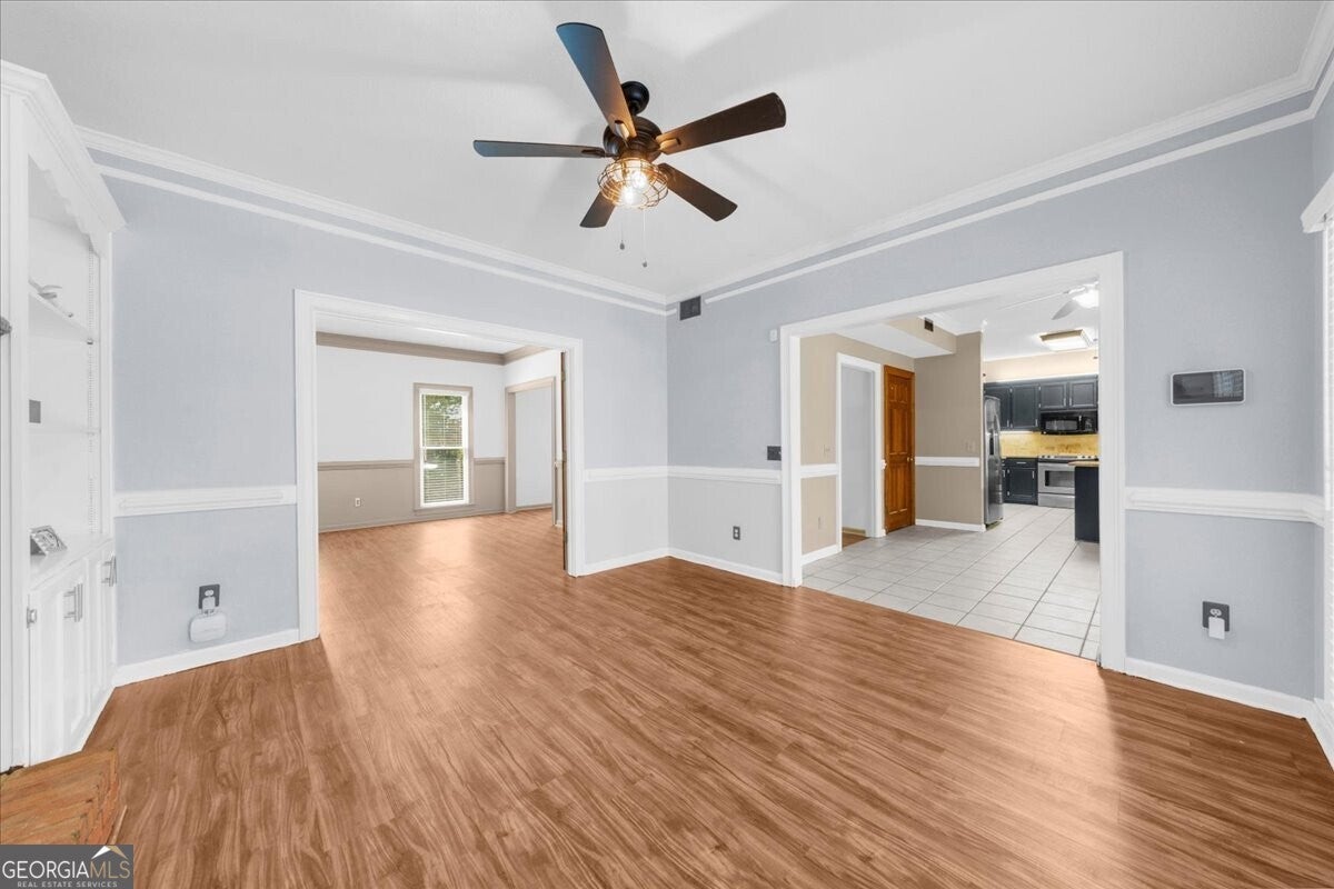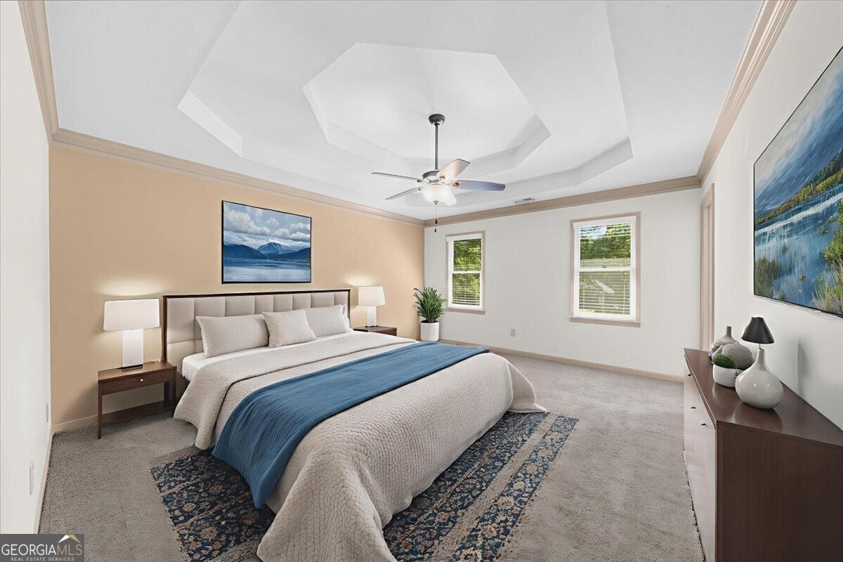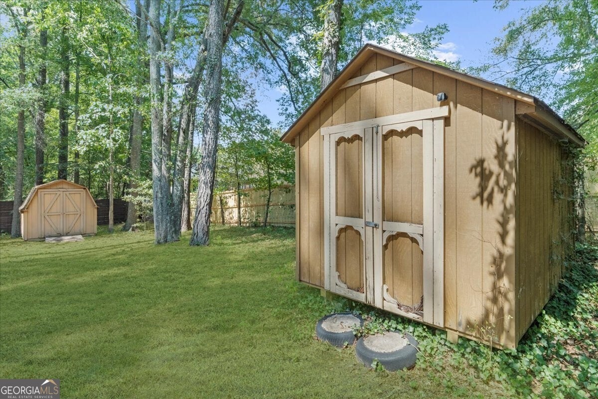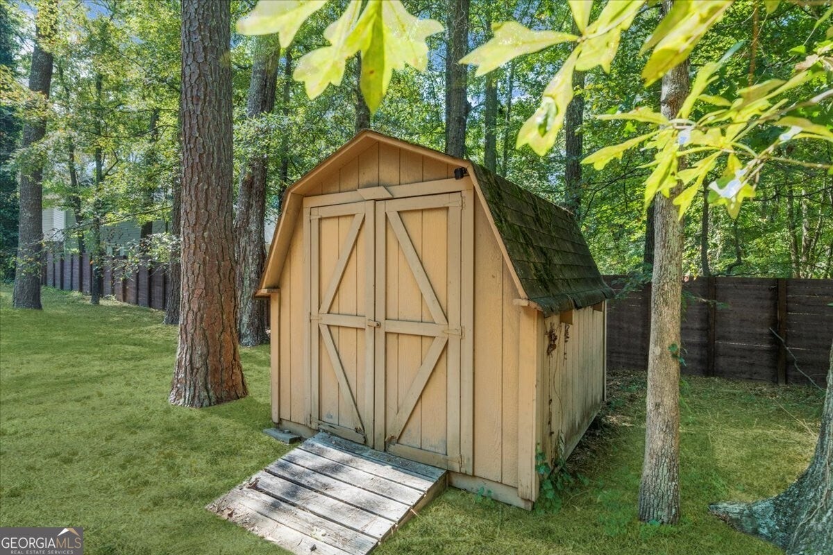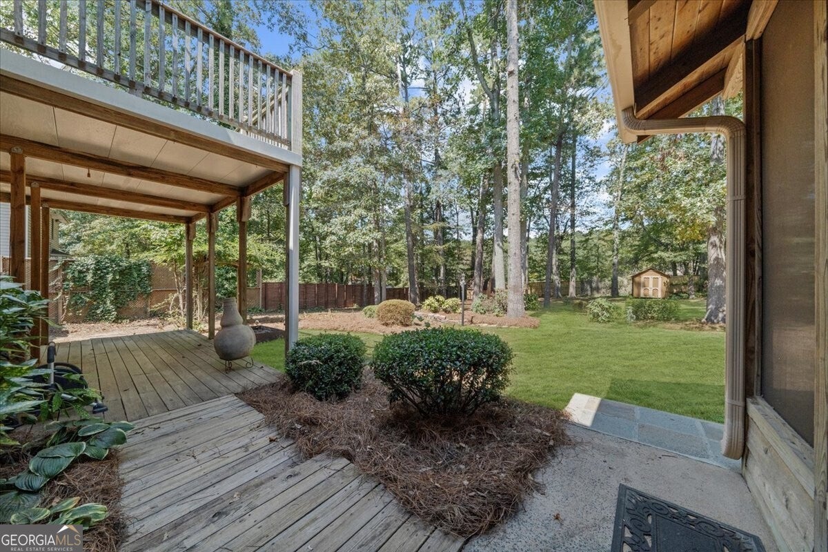 Don't miss your chance to own this beautiful Cobb County home! Featuring 4 bedrooms, 2.5 bathrooms, and abundant storage, this property is full of charm and functionality. Inside, you'll find crown molding throughout the main level and master suite, along with durable LVP flooring that flows through the main floor, stairs, and upper hallway. The kitchen shines with two pantries, stainless steel appliances, granite countertops, and both under- and over-cabinet lighting. The master retreat boasts a tray ceiling and oversized walk-in closet, while the spacious 4th bedroom (bonus room) includes two walk-in closets and a private balcony. Note: Tax records do not reflect the additional square footage of this room. Step outside to a screened-in porch overlooking the fenced backyard, plus a covered deck that makes grilling and entertaining easy year-round. A gravel pad on the side of the house is perfect for your trailer, RV, or boat storage. Two backyard storage buildings will also remain with the property. Recent updates include a new upstairs HVAC system and a hot water heater that's just one year old.