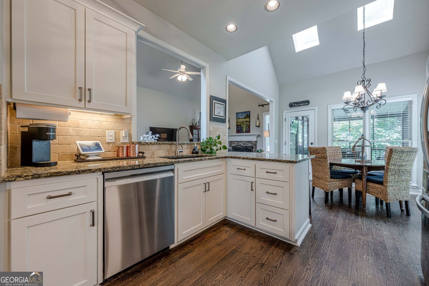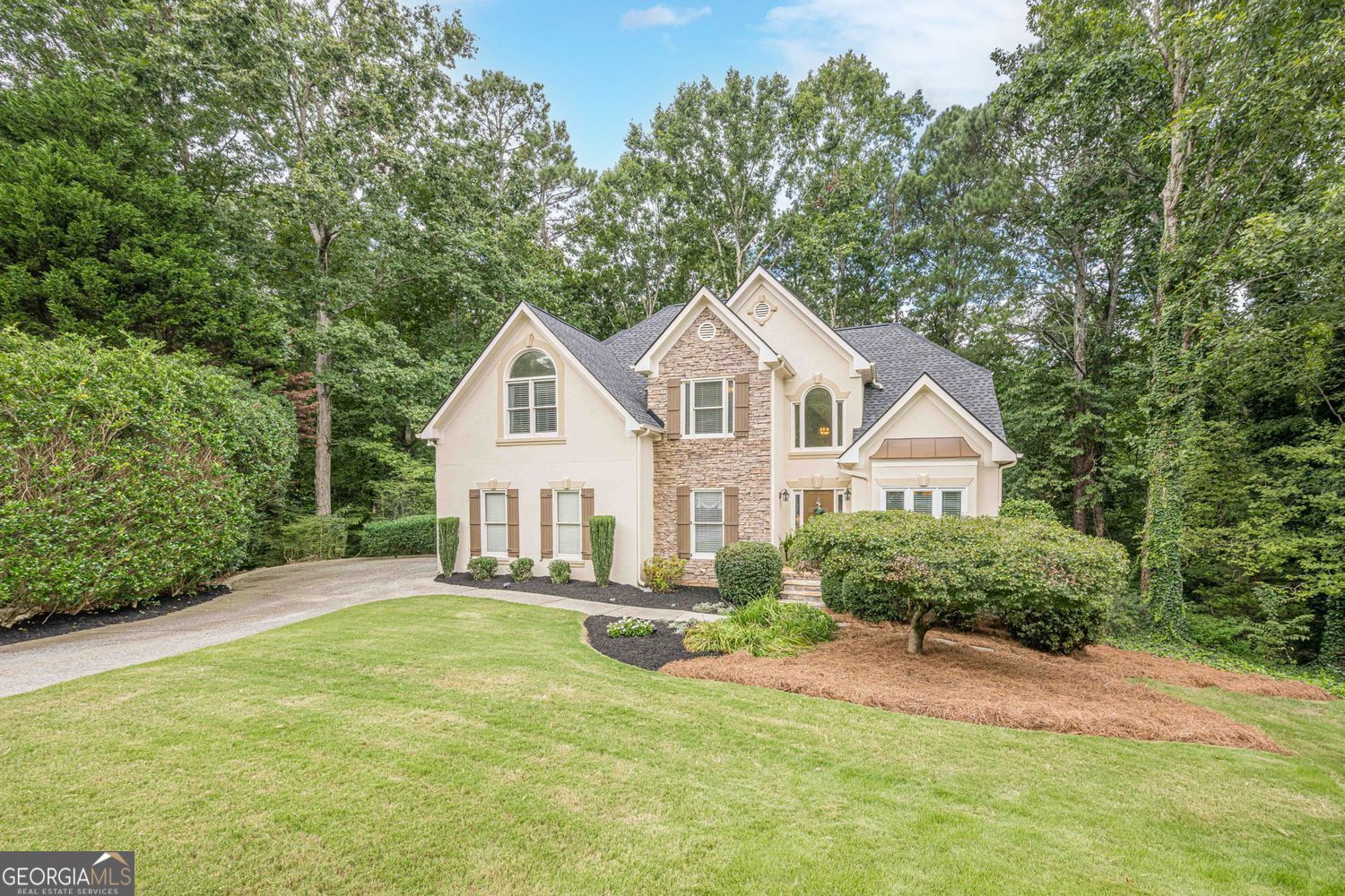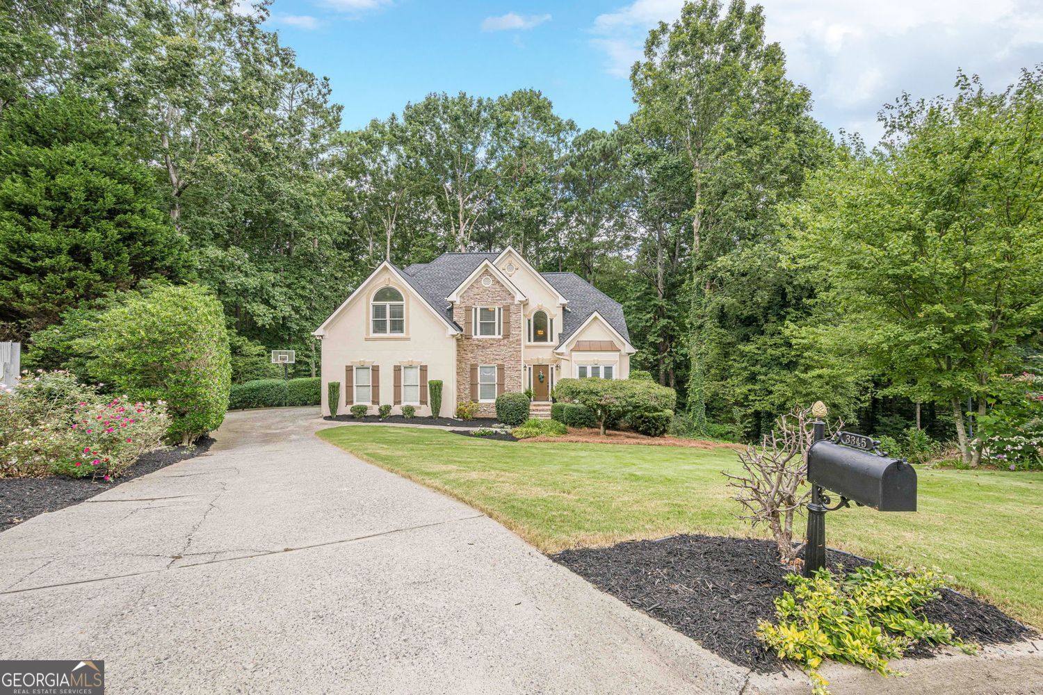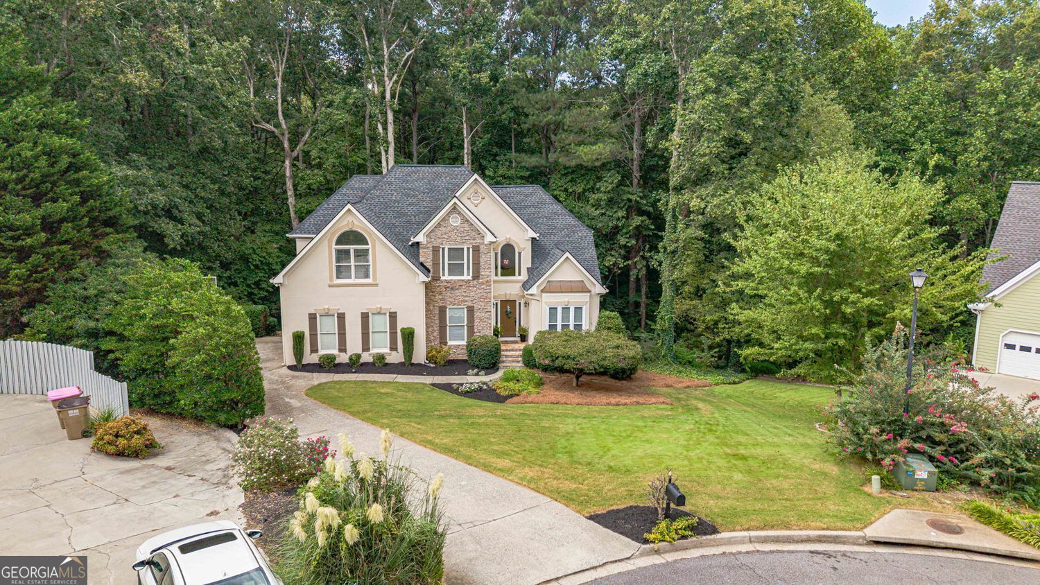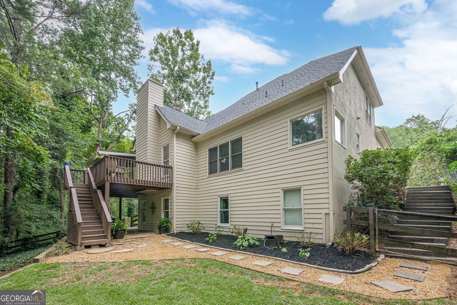 Welcome to 3345 Cherry Oak Lane - Master on Main, Screened Porch, in Cul-de-sac on Quiet Street in South Forsyth County Nestled in a peaceful cul-de-sac on a wooded lot with a serene creek, this beautiful home offers space, comfort, and convenience in one of Forsyth's most desirable locations. The inviting floor plan features a spacious vaulted great room, perfect for entertaining, that flows seamlessly to a screened porch plus opened deck for grilling and dining. The kitchen boasts custom cabinetry, granite countertops, a breakfast room, and a formal dining room for gatherings. NEW ROOF & WATER HEATER 2025 The large primary suite on the main level includes an updated bathroom with view to private wooded backyard. A generous laundry room is also located on the main floor for added convenience. Upstairs, you'll find three additional bedrooms and a full bath. The finished basement offers incredible flexibility with a media room, office, possible 5th bedroom or guest room, music room, and abundant storage. Walk out to flagstone patio where you can take in nature. Additional highlights include a side-entry garage, level driveway, and mature landscaping that enhances the property's curb appeal. Located near top-rated Forsyth schools, parks, shopping, dining, the library, and more, this home combines privacy with convenience in an unbeatable setting.