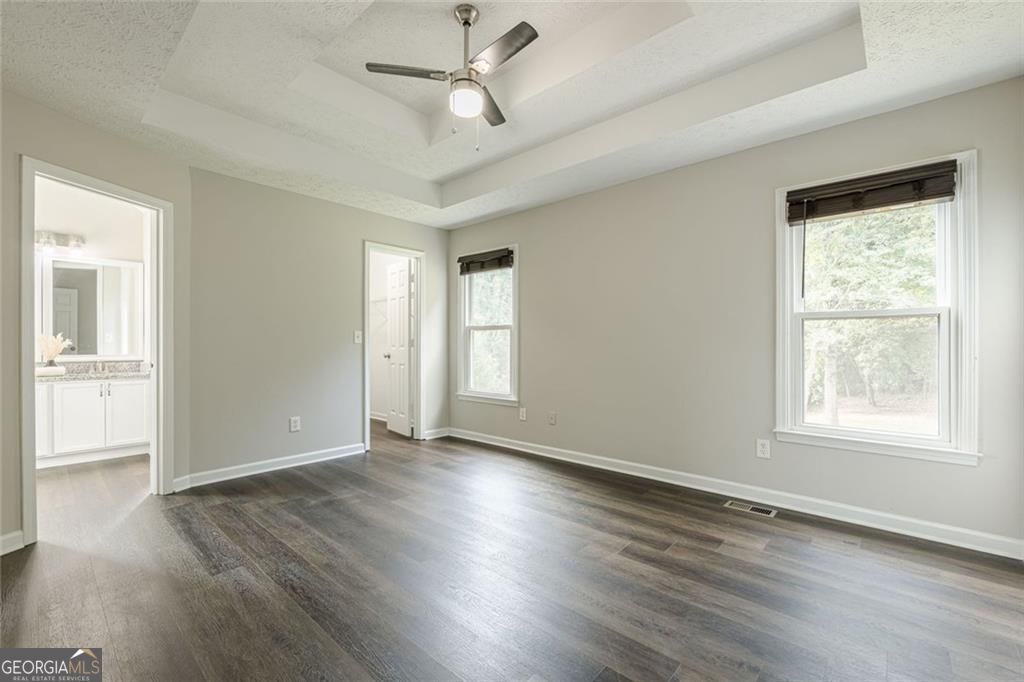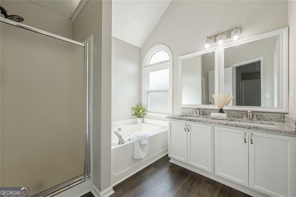 - Interior FeaturesSeparate Shower, Tray Ceiling(s), Vaulted Ceiling(s), Walk-In Closet(s), Double Vanity, Soaking Tub, Master On Main Level, Split Foyer, Two Story Foyer