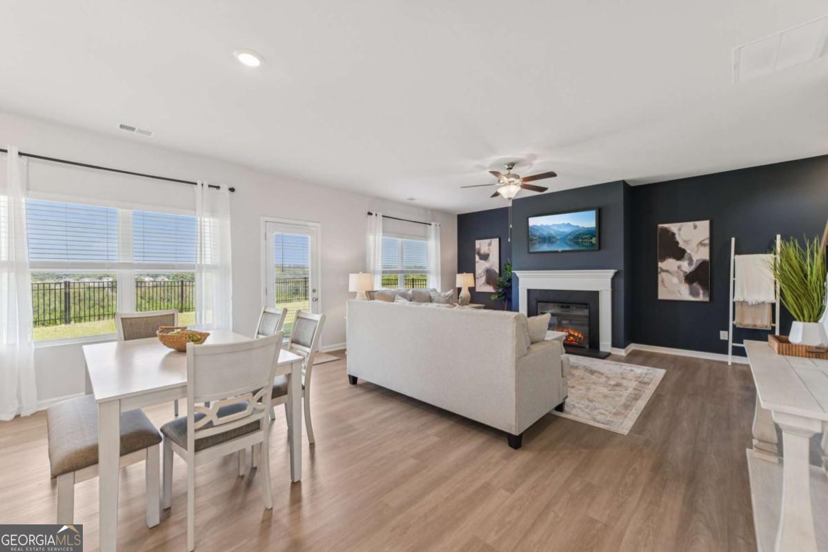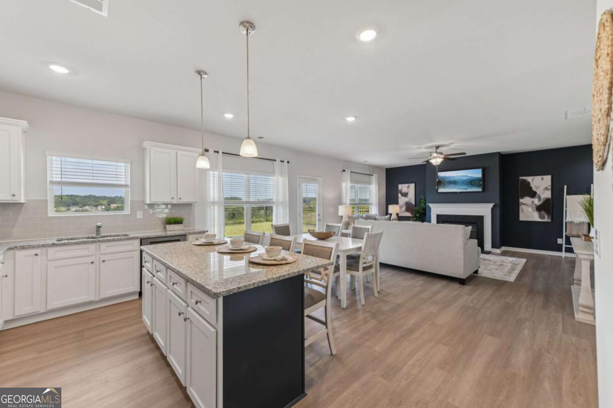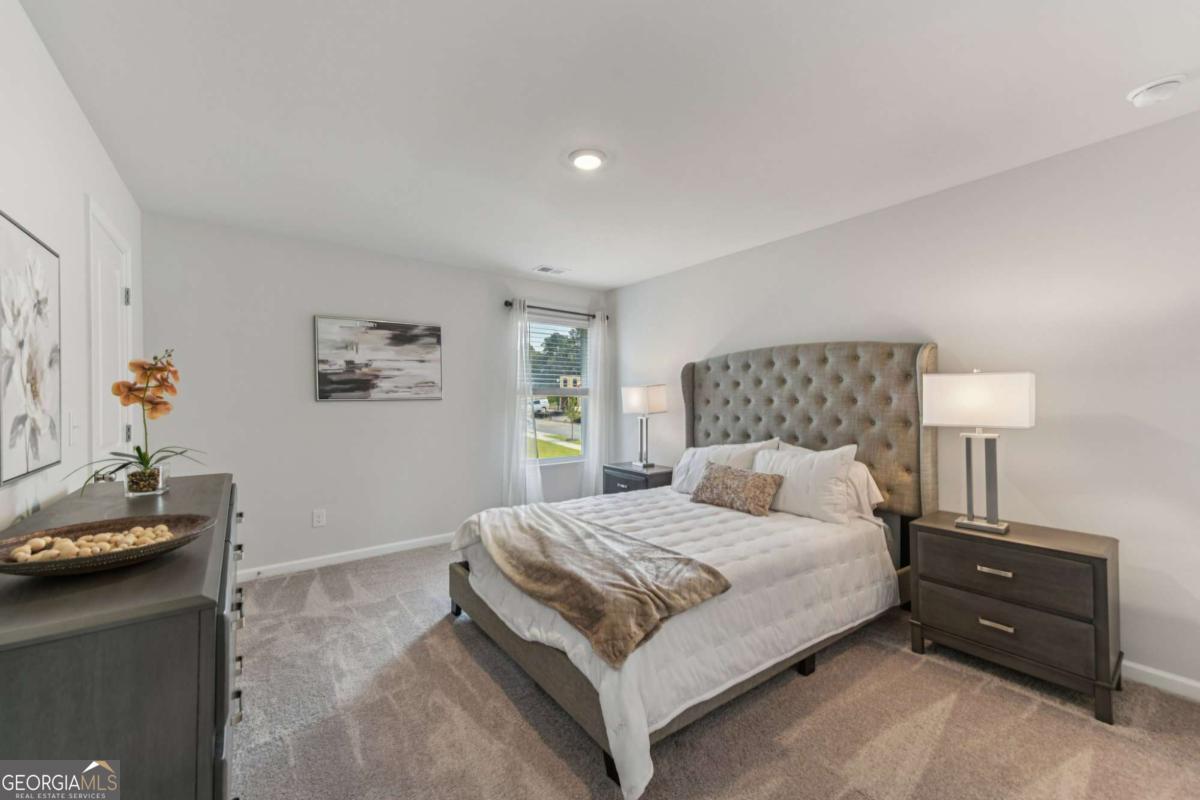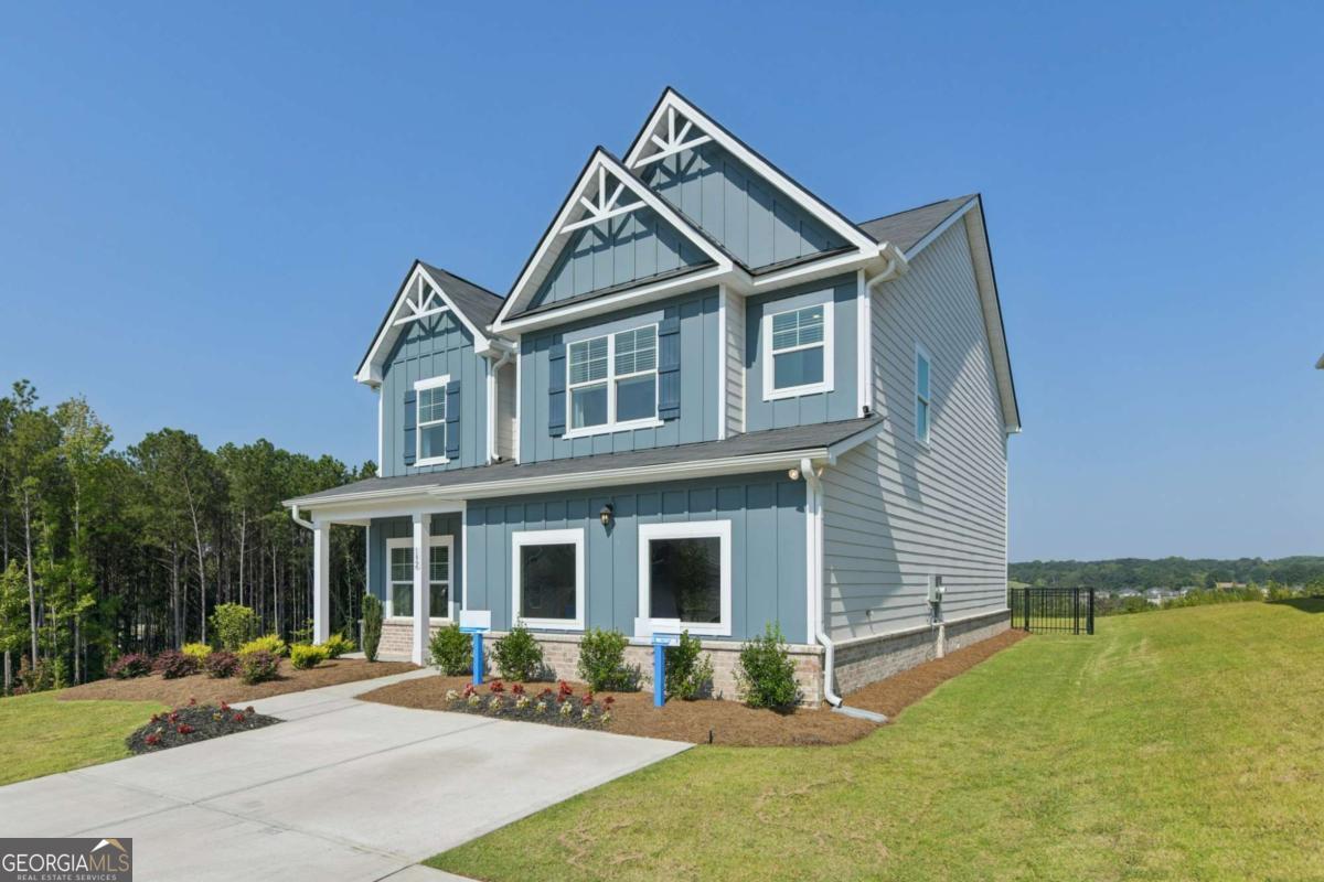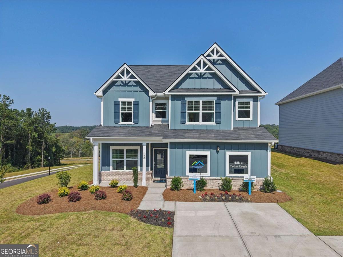 Introducing the DAYTON! This exquisite 5 bedroom floorplan at The Hills at Cedar Creek, **READY IN DECEMBER** thoughtfully crafted by Direct Residential Communities. Situated in a distinguished swim and tennis community, this home offers resort-style amenities designed for your ultimate relaxation and enjoyment. A grand two-story foyer greets you upon entry, leading into a spacious, open living area featuring 9-foot ceilings and sophisticated LED disc lighting throughout. The main level is enhanced by a private guest bedroom with a full bath, offering a perfect retreat for visitors or multi-generational living. The gourmet kitchen is a true centerpiece, with a generous center island adorned with granite countertops, classic 36-inch shaker cabinets, an elegant tile backsplash, and a bright breakfast area that flows seamlessly into the family room. A cozy fireplace in the family room creates the ideal space for gathering and relaxation. From the breakfast area, step onto a charming concrete patio, perfect for alfresco dining or enjoying your private backyard sanctuary. The home's silent flooring system and upgraded vinyl plank flooring throughout the main level further elevate the sense of tranquility and luxury. Ascend the open iron rail staircase to the expansive owner's suite, a peaceful retreat featuring a sitting area, dual closets, and a spa-like en-suite bath with dual vanities, a walk-in shower, and a luxurious garden tub beneath a serene, picturesque window. The upper level also includes three generously proportioned bedrooms, a shared bath with dual vanities, and a conveniently located laundry room. For added convenience and security, a smart lock ensures keyless entry, while the 2-car garage offers ample storage space, with extended driveways and pristine sidewalks enhancing the charm of this distinguished community. Indulge in refined living at its best-schedule your tour of the Dayton plan today.
