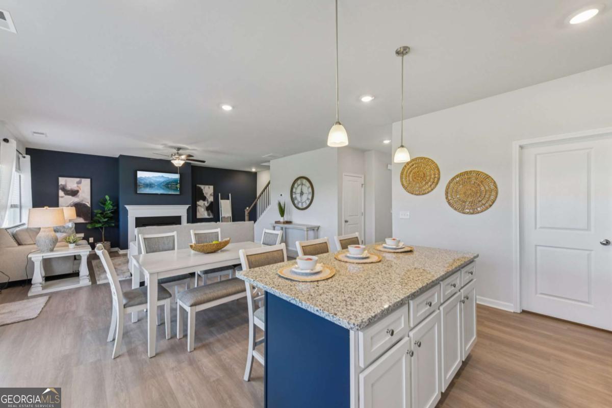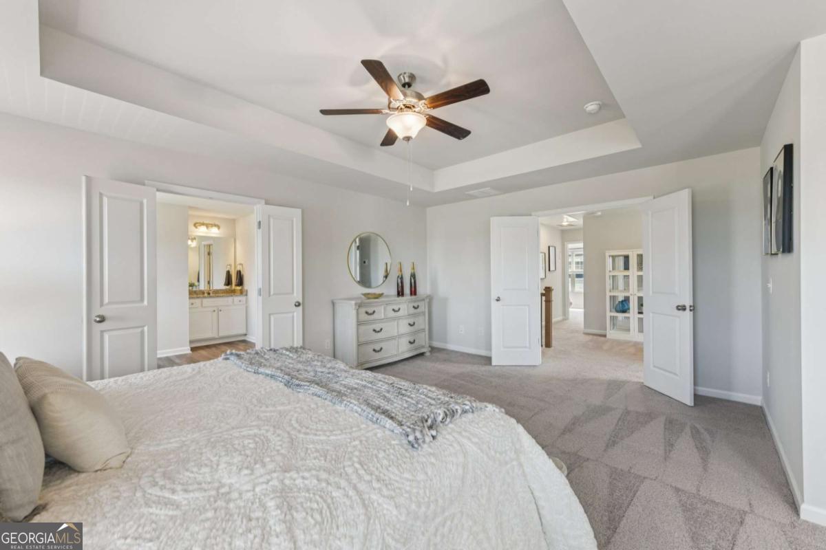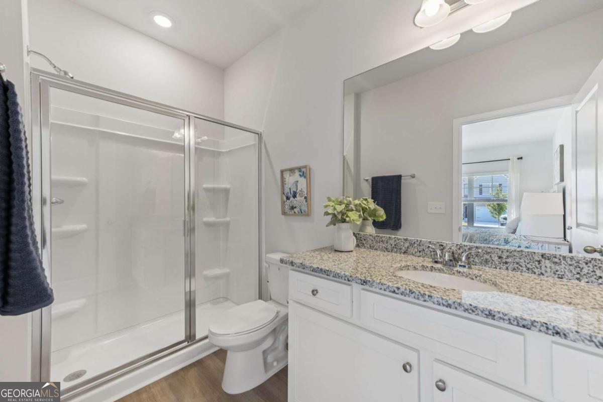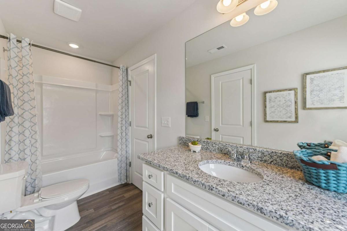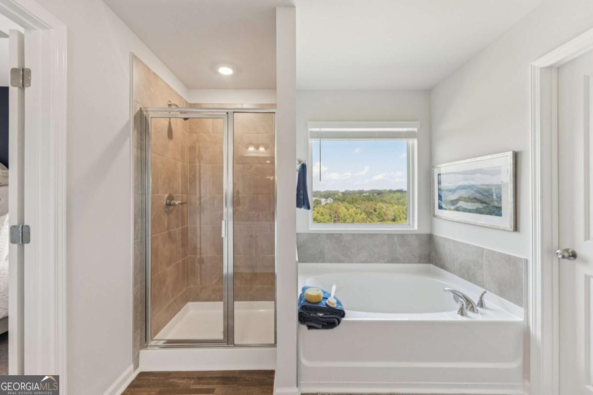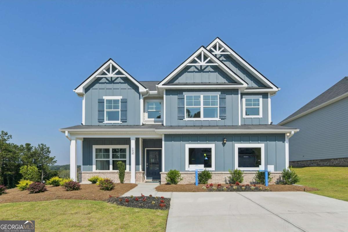 Introducing the DAYTON! This exquisite 5 bedroom floorplan at The Hills at Cedar Creek, **READY IN DECEMBER** thoughtfully crafted by Direct Residential Communities. Situated in a distinguished swim and tennis community, this home offers resort-style amenities designed for your ultimate relaxation and enjoyment. A grand two-story foyer greets you upon entry, leading into a spacious, open living area featuring 9-foot ceilings and sophisticated LED disc lighting throughout. The main level is enhanced by a private guest bedroom with a full bath, offering a perfect retreat for visitors or multi-generational living. The gourmet kitchen is a true centerpiece, with a generous center island adorned with granite countertops, classic 36-inch shaker cabinets, an elegant tile backsplash, and a bright breakfast area that flows seamlessly into the family room. A cozy fireplace in the family room creates the ideal space for gathering and relaxation. From the breakfast area, step onto a charming concrete patio, perfect for alfresco dining or enjoying your private backyard sanctuary. The home's silent flooring system and upgraded vinyl plank flooring throughout the main level further elevate the sense of tranquility and luxury. Ascend the open iron rail staircase to the expansive owner's suite, a peaceful retreat featuring a sitting area, dual closets, and a spa-like en-suite bath with dual vanities, a walk-in shower, and a luxurious garden tub beneath a serene, picturesque window. The upper level also includes three generously proportioned bedrooms, a shared bath with dual vanities, and a conveniently located laundry room. For added convenience and security, a smart lock ensures keyless entry, while the 2-car garage offers ample storage space, with extended driveways and pristine sidewalks enhancing the charm of this distinguished community. Indulge in refined living at its best-schedule your tour of the Dayton plan today.