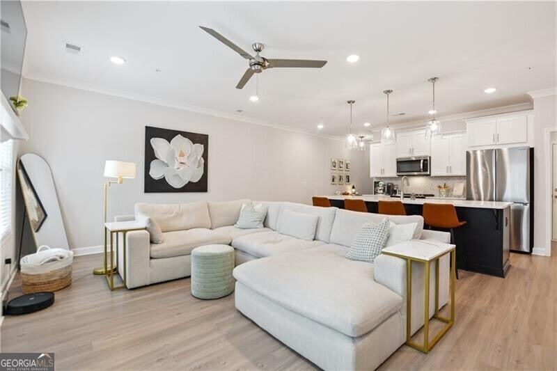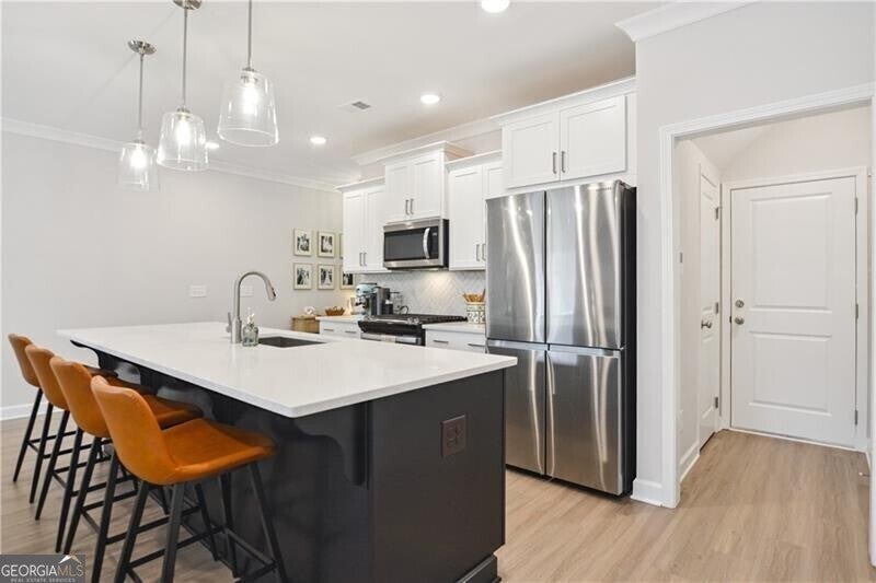 MODERN LUXURY MEETS CONVENIENCE IN THE HEART OF MARIETTA + 100% FINANCING OPPORTUNITY ON THIS NEARLY NEW, MOVE-IN READY TOWNHOME!!! Ask about PATH loan eligibility, offering $0 down and no PMI for qualified buyers! This beautifully upgraded Traton Homes "Brooks B" floor plan sits in the boutique Gates at Hamilton Grove community - just 1.5 miles from Kennesaw Mountain and minutes to the Marietta Square, Kennestone Hospital, Barrett Parkway, Kennesaw State University, and major commuter routes. Built in late 2023, this 3-bed / 2.5-bath townhome offers over 1,800 square feet of thoughtfully designed space with custom touches throughout. The open-concept main level features durable LVP flooring, a cozy gas fireplace, and a designer kitchen with white cabinetry, quartz countertops, stainless appliances, pendant lighting, and a large island perfect for entertaining. Enjoy meals in the dedicated dining area or relax on the extended private patio - ideal for grilling or your four-legged friends. (Yes, fencing is allowed!) Upstairs, find a generous loft flex space, a spacious primary suite with a walk-in closet and spa-like bathroom, plus two additional spacious bedrooms and a full bath. Recent upgrades include stylish lighting, custom paint + wallpaper, and decorative wall trim. Neighborhood amenities include a pool, playground, fire pit, and green space. Whether you're a first-time buyer or looking for turnkey luxury in a thriving Cobb County location, this one checks every box. Motivated sellers - don't miss your chance!