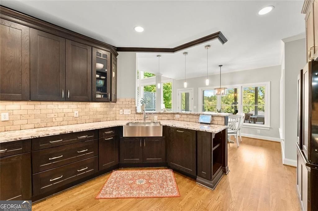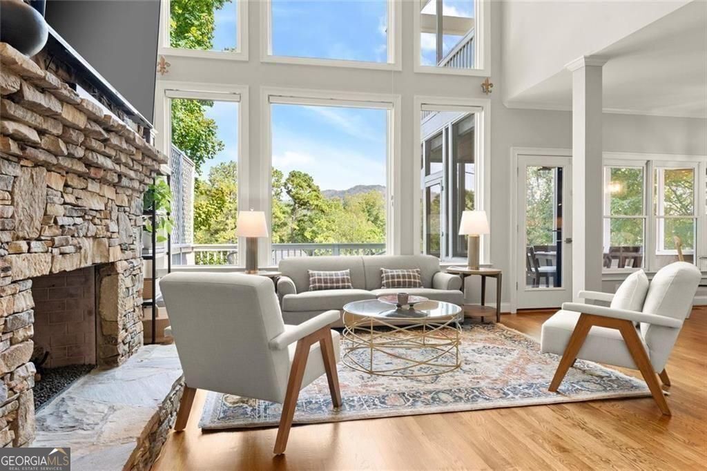 Incredible NEW PRICE on this impeccably maintained Hardage Farm showstopper with awe-inspiring Kennesaw Mountain views! Perfectly situated on a cul-de-sac lot in the highly desirable West Side Elementary School District, this move-in ready home features 4 bedrooms, 3.5 baths, and a full finished daylight basement. Recent upgrades include a brand-new HVAC, new water heater, fresh landscaping, new carpet and paint. Step inside to find gleaming hardwood floors and a soaring two-story fireside great room. The chef's kitchen impresses with custom Thomasville cabinetry, Wolf gas range and hood, paneled appliances, and luxurious granite counters. Upstairs, four bedrooms offer plush carpet, custom Elfa closets, and glorious mountain views. The primary retreat boasts a renovated bath with dual marble vanities, soaking tub, and separate shower. Enjoy multiple outdoor living spaces - two decks, a screened porch, and a covered patio - all designed to take in the breathtaking scenery of Kennesaw Mountain National Park. The finished terrace level expands the living space with a full bath, kitchenette, private bar, optional 5th bedroom, recreation area, and family room. Neighborhood amenities include a clubhouse, pool, tennis, pickleball, playground, and fishing pond, plus direct access to Kennesaw Mountain Battlefield Trails. Minutes to Marietta Square, Marietta Country Club, and The Avenues. Live your best Marietta lifestyle today!