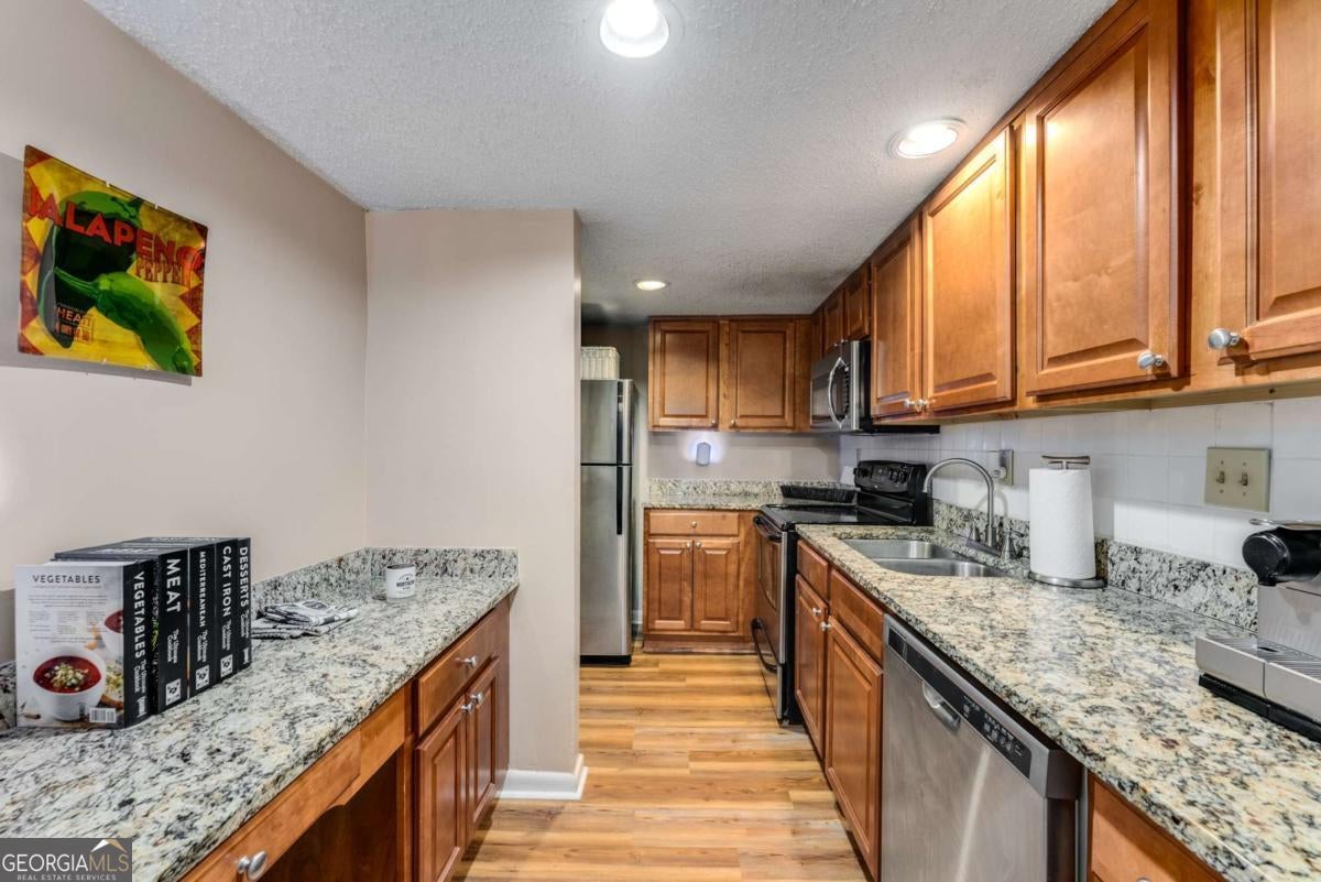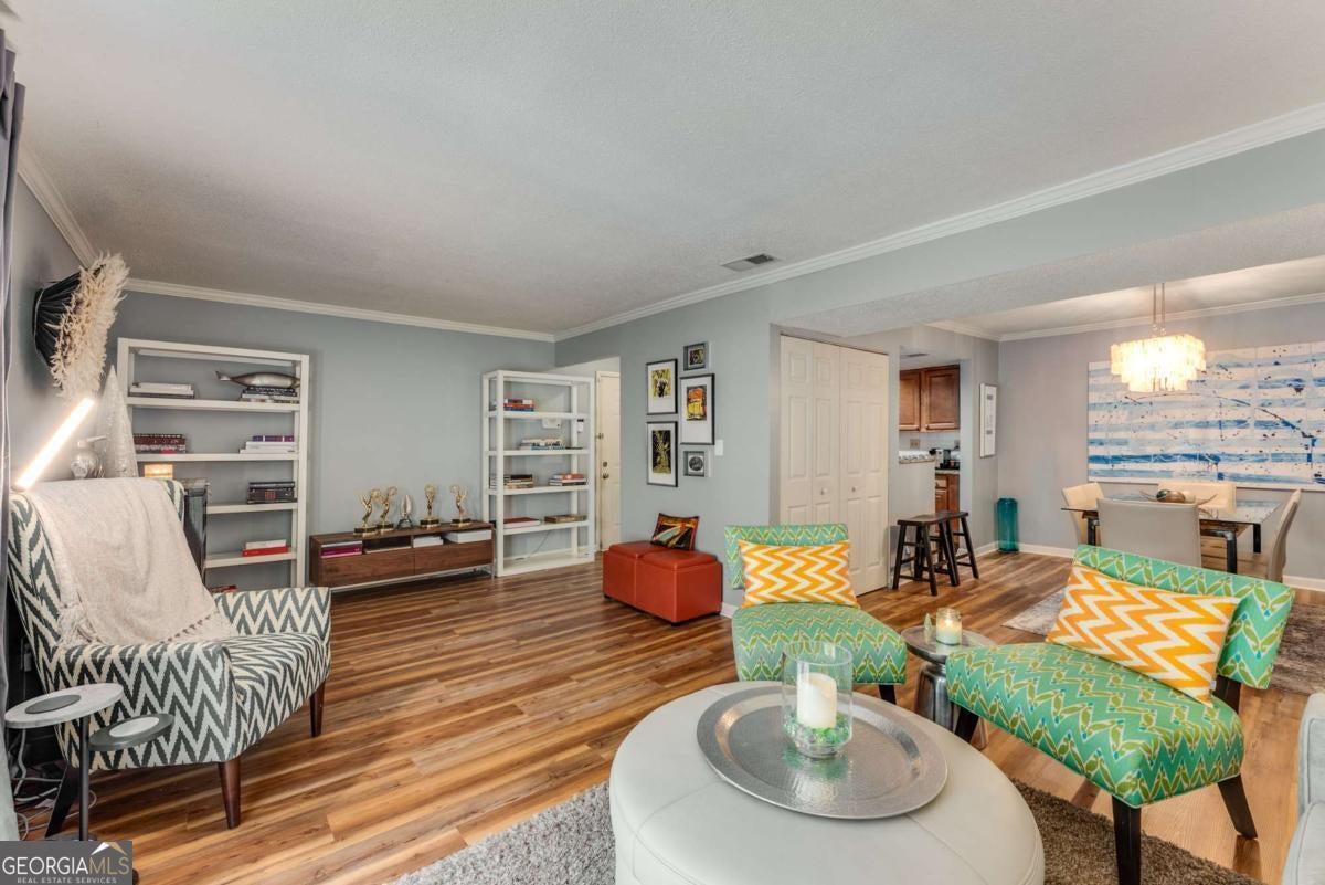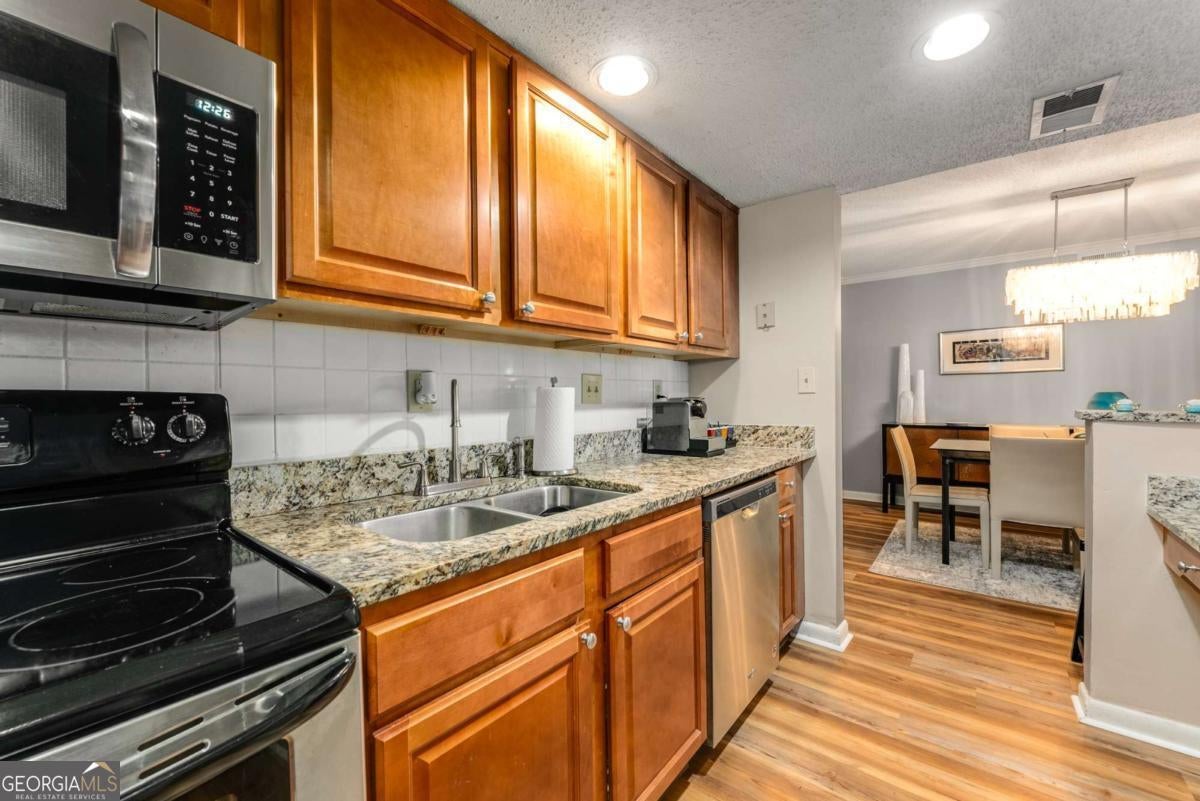 LOW HOA fees at this stunning 2 bedroom, 2 bathroom condo in the gated Highgate community in Sandy Springs. This condo has been beautifully updated with new flooring, fresh paint, and a new HVAC system (interior and exterior). The stepless unit is located in a gated community, providing both security and convenience. The area offers easy access to GA-400 and I-285, and is close to several prestigious schools, including The Art Institute of Atlanta, Argosy University, and Georgia Perimeter College. Additionally, MARTA is nearby for effortless commuting. The condo includes one assigned parking spot with plenty of guest parking available, and residents can enjoy the community pool, fitness center, clubhouse, dog park, and manicured landscaping with Low HOA fees.