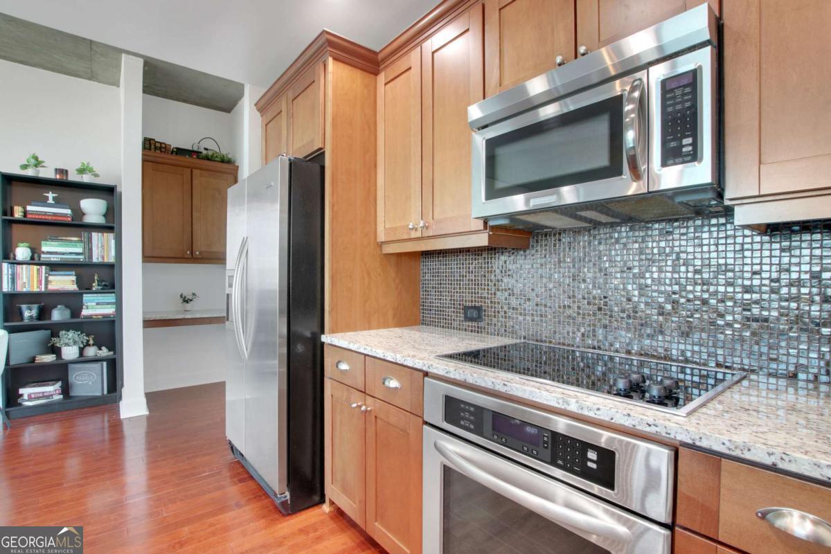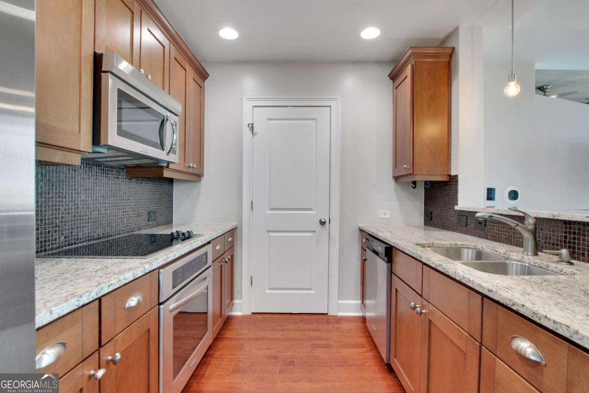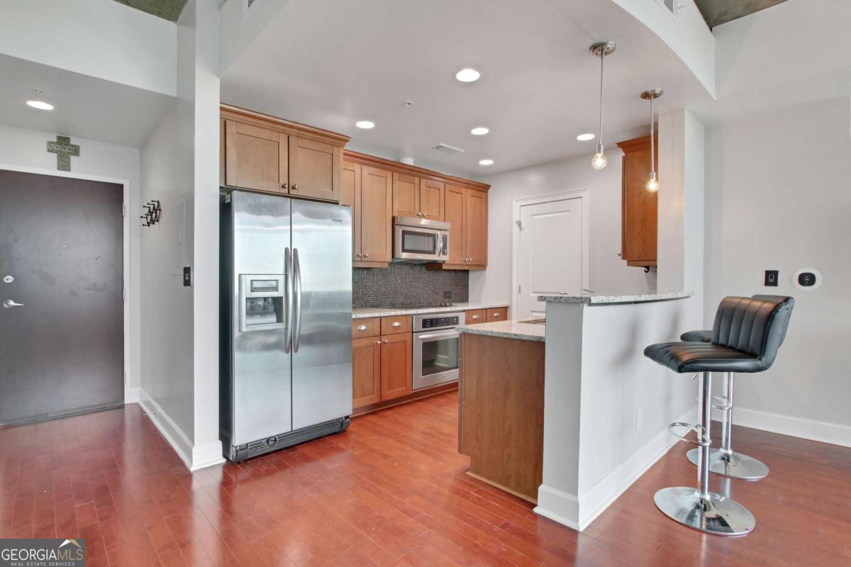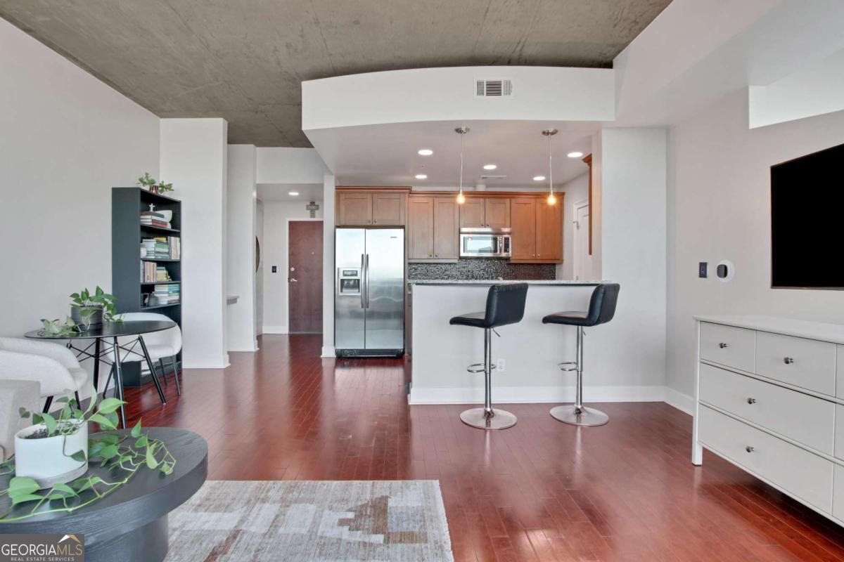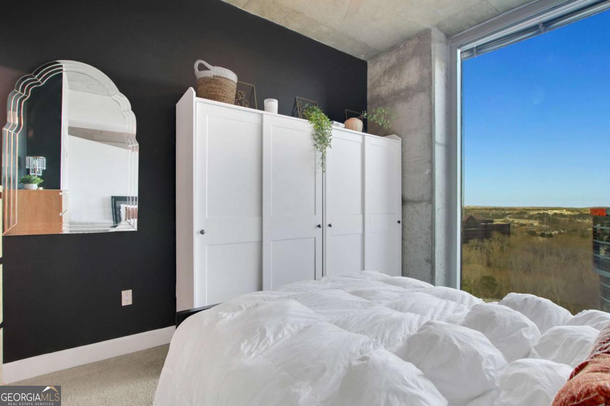 Experience elevated urban living at 3300 Windy Ridge Parkway SE, Unit 1603, just moments away from the vibrant Battery Atlanta. This impeccably designed 1-bedroom, 1-bathroom condominium offers 770 square feet of contemporary elegance, where style and convenience intersect. Inside, updated flooring flows through a spacious living area that opens to a private balcony, perfect for soaking in serene city views. The modern kitchen is a chef's dream, featuring granite countertops and stainless steel appliances, ideal for everyday meals or hosting guests. The bedroom boasts an in-unit washer and dryer add to the effortless lifestyle. Resort-style amenities include a sparkling pool, relaxing hot tub, and a fully equipped fitness center. The building also offers doorman and concierge services, assigned garage parking, and inviting outdoor communal spaces for socializing or unwinding. Located steps from The Battery Atlanta's premier dining, shopping, and entertainment, this residence seamlessly blends modern luxury with unparalleled convenience.