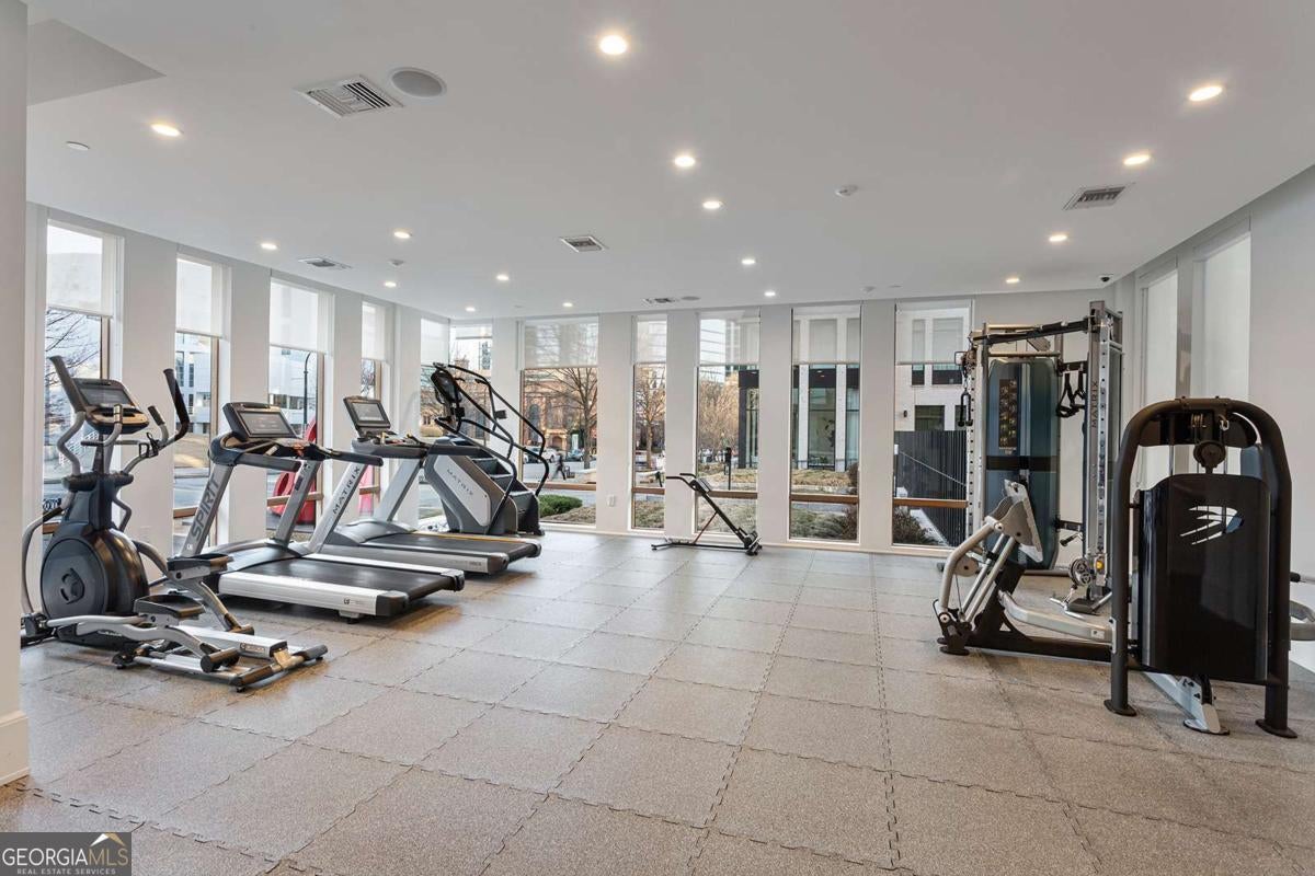 Located at the intersection of culture and green space, this 2-bedroom, 2.5-bath residence at One Museum Place places you in the heart of Ansley Park in Midtown-just steps from the High Museum and a close proximity to Piedmont Park, the Atlanta Beltline & Colony Square. Thoughtfully designed with 10-foot ceilings, clean architectural lines, and expansive windows, the home offers a balance of modern design and everyday comfort. The kitchen is designed for both cooking and gathering, featuring Gaggenau appliances, custom tilework, and ample storage. Just beyond, a private covered lanai extends the living space outdoors with treetop and city vistas. The primary suite serves as a private retreat with two walk-in closets and a spa-inspired bath complete with dual vanities, soaking tub, and walk-in shower. A flexible den and a secure, oversized 2-car garage with direct building entry add to the home's everyday ease. Residents of One Museum Place enjoy concierge service, a well-appointed fitness center, guest suite, and club room. With its premier location, this home offers an unmatched opportunity to enjoy elevated living in one of Atlanta's most sought-after neighborhoods.