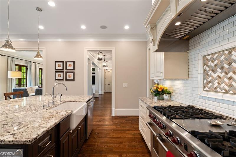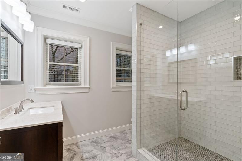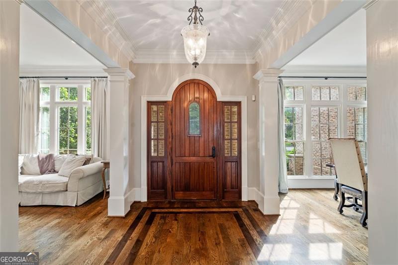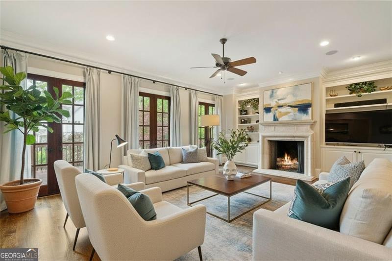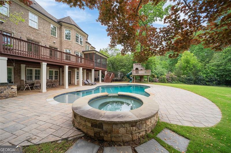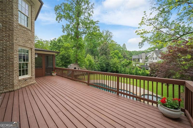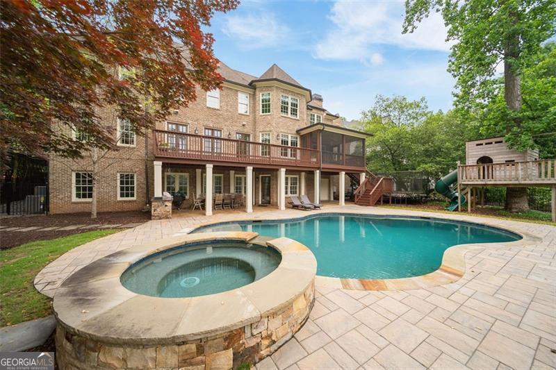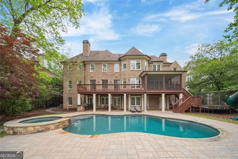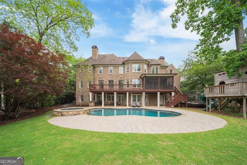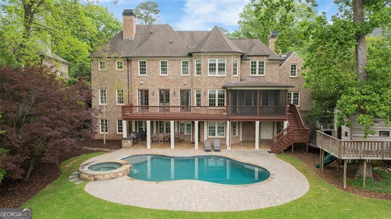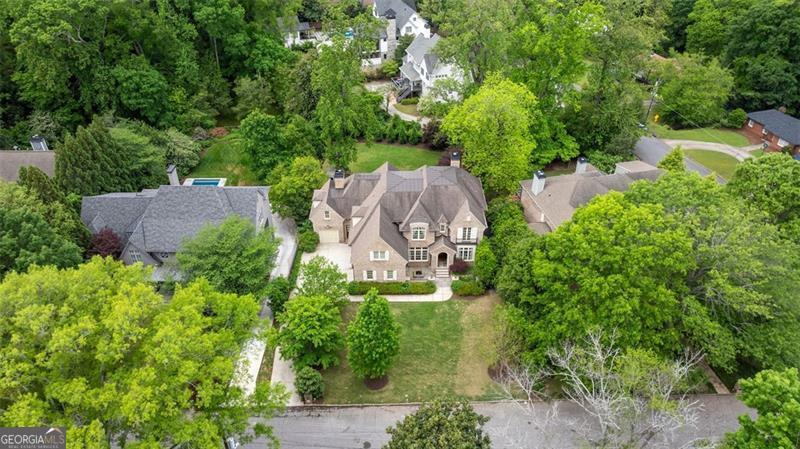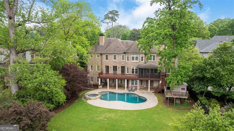 Welcome to this elegant 6-bedroom, 6 full bath, 2 half bath custom home, perfectly situated in Sherwood Forest. This home seamlessly blends timeless traditional elegance with modern comfort. A charming front porch leads into a beautiful foyer, opening to a formal dining room with seating for 12, a living room with built-in bookshelves, a guest bedroom with full bath, a stylish powder room and a fireside family room overlooking the backyard. The gourmet kitchen boasts an oversized island, Wolf and Sub-Zero appliances, a walk-in pantry, breakfast room, wet bar/butler's pantry with wine refrigerator, and a keeping room. The back hall offers a friendship door, a built-in desk and a custom mudroom cabinet with hooks, cubbies and upper cabinets just inside the garage entry door perfect for keeping organized. Upstairs, the oversized primary suite offers a large bedroom, 2 huge his and her closets, and a private office. The primary marble bath has dual vanities, separate shower and soaking tub. Each additional upstairs bedroom has its own ensuite bath and ample closet space. The finished terrace level is a space perfect for entertaining and fun with a family room, a game room area, 2 workout rooms (one could be a 2nd guest suite), a full bath and a half bath. Outdoor living is elevated with a screened porch, a large upper deck, a lower-level patio with a built-in grill area, a pool with a hot tub, custom treehouse, and plenty of level yard space for outdoor enjoyment. Located just minutes from both Midtown and Buckhead, this home provides easy access to Atlanta's finest dining, shopping, and entertainment options . Enjoy walking distance to The Beltline, multiple playgrounds, and parks, and so close to Ansley Golf Club and Ansley Mall. Don't miss your chance to live in one of Midtown Atlanta's most prestigious neighborhoods!