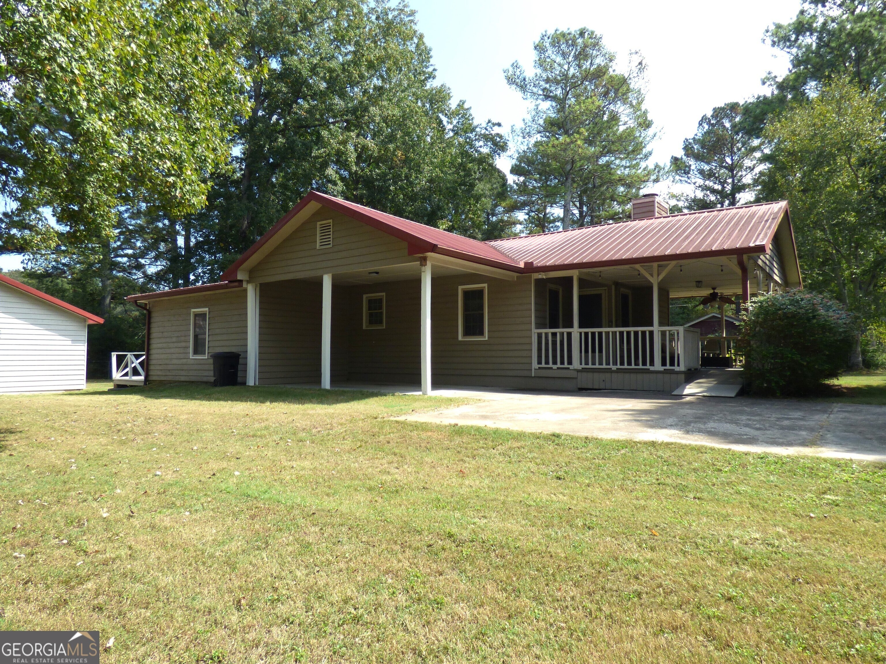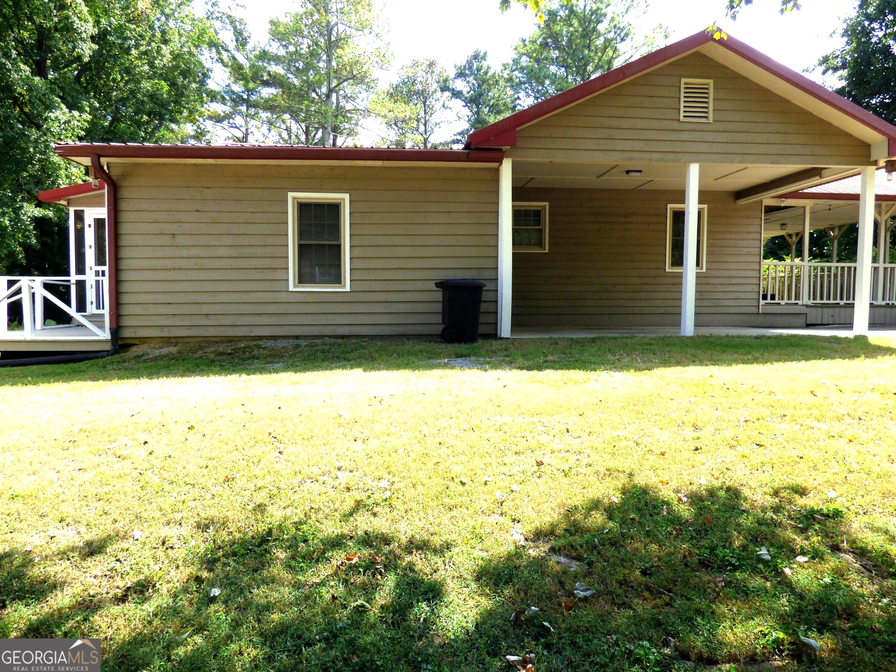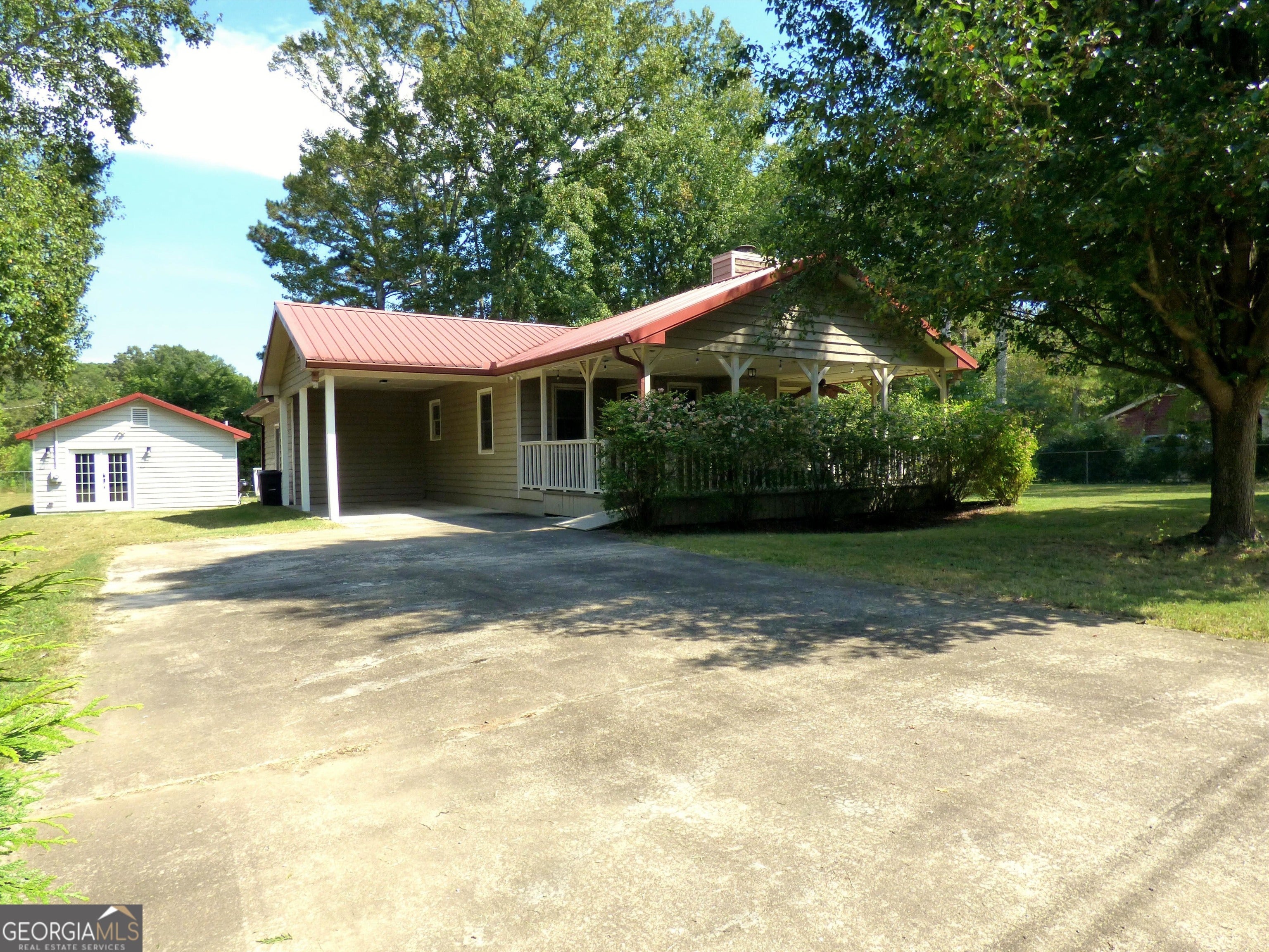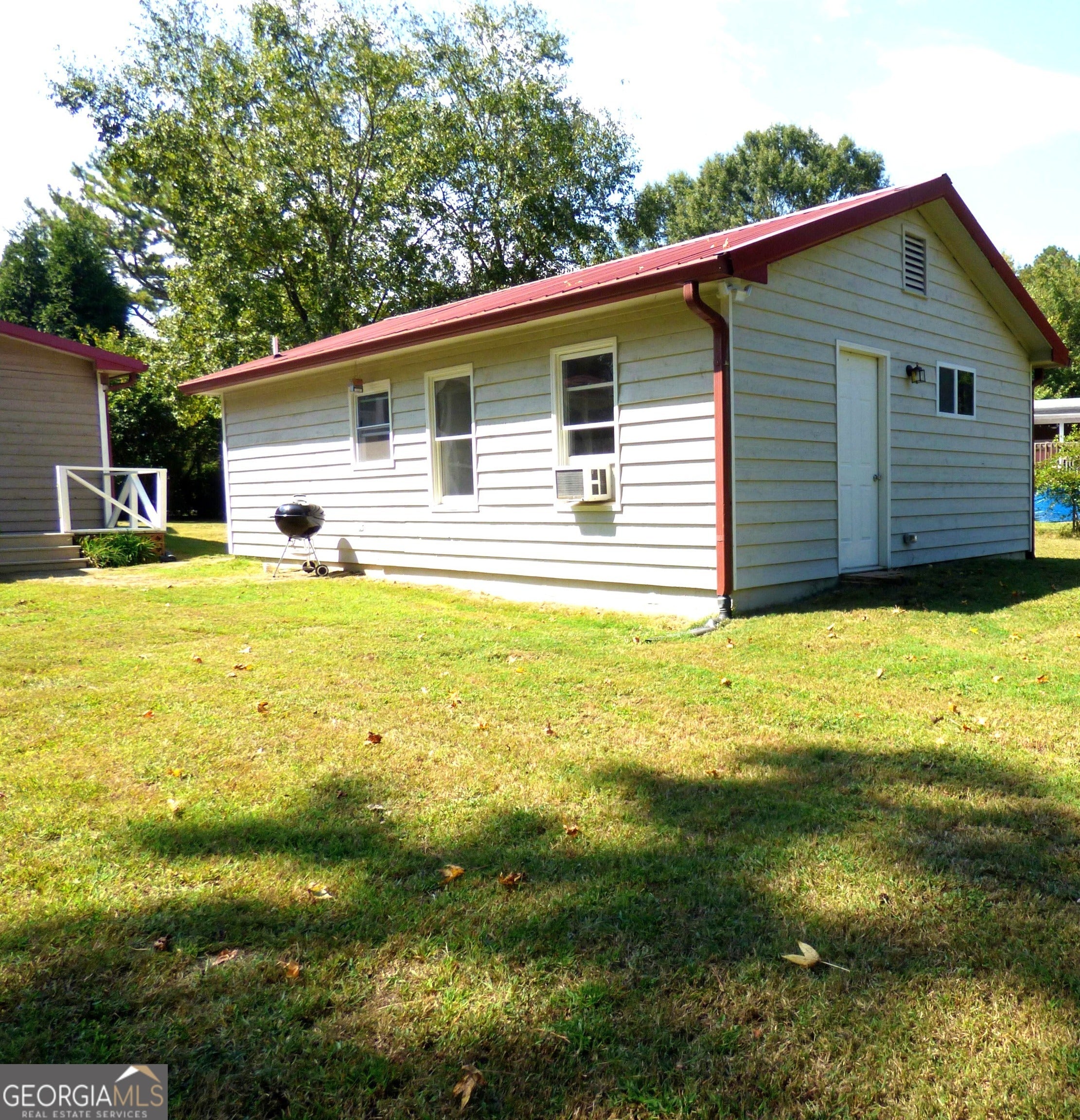 TWO HOUSES one property!!! Escape to this charming 1,028sqft, 2-bedroom, 2-bath cottage nestled in an established, tree-lined neighborhood with no HOA. Enjoy quiet moments on the huge front porch with an accessibility ramp or on the rear screened porch and deck. The cottage features a durable metal roof, cement siding, and a cozy fireplace. Inside, LVP flooring and ceiling fans enhance comfort throughout, no carpet here! A new HVAC and a freshly serviced septic system provide peace of mind. Don't miss the detached 620 sqft, 1-bedroom, 1 bath apartment with a kitchen that offers additional living space for relatives or rental income. Walk to Adairsville High or Middle schools, with downtown just a short trip away. Only 1 mile from Manning Mill Park.