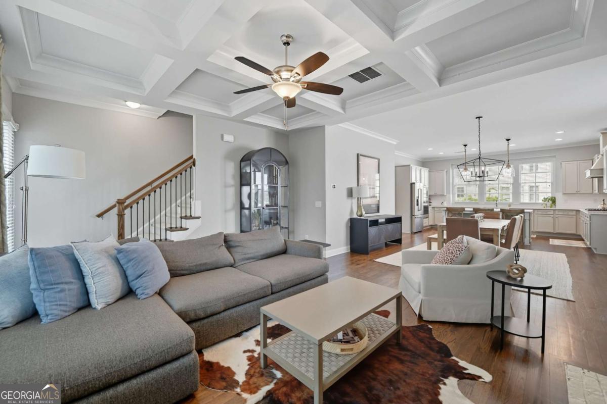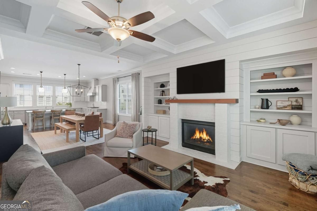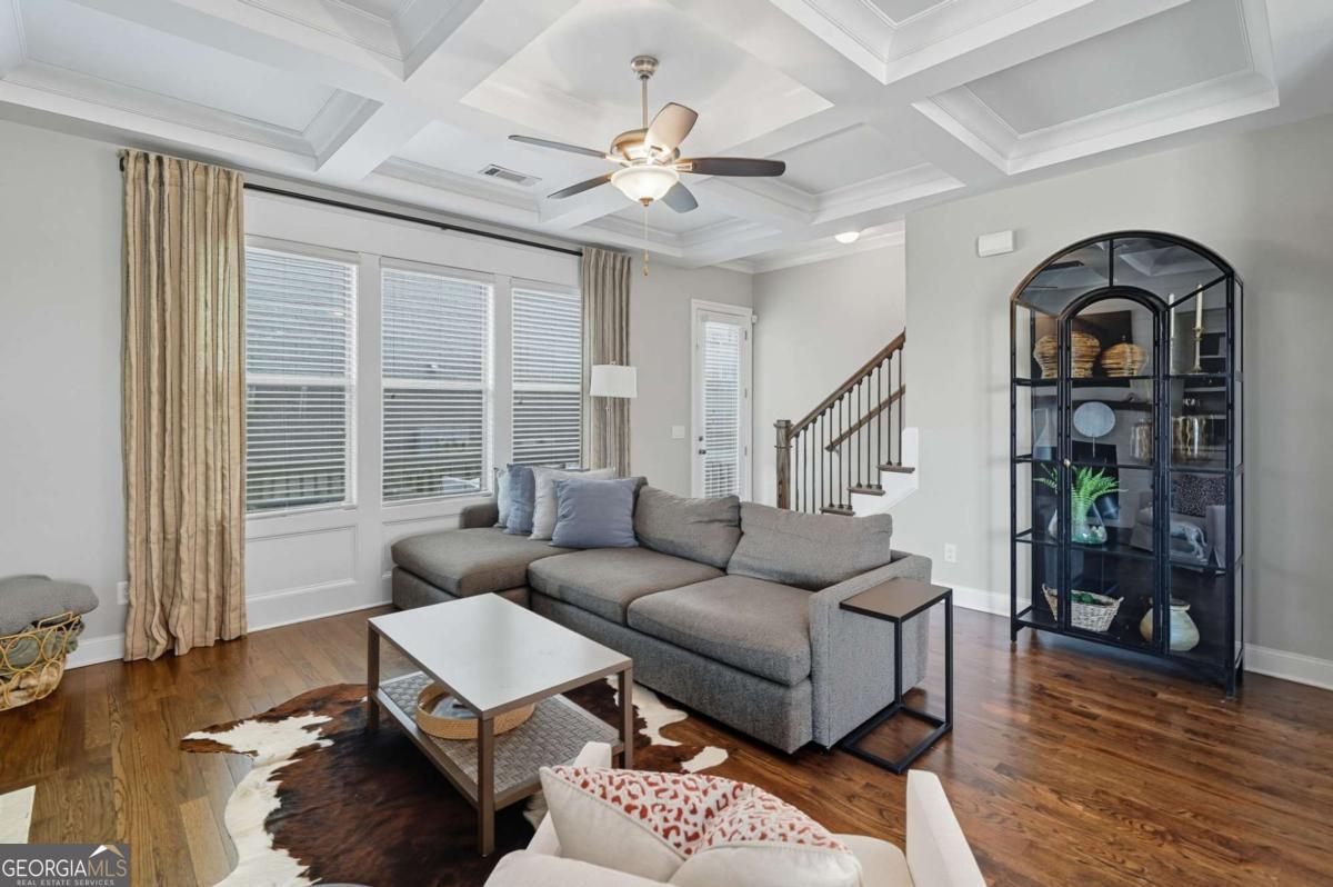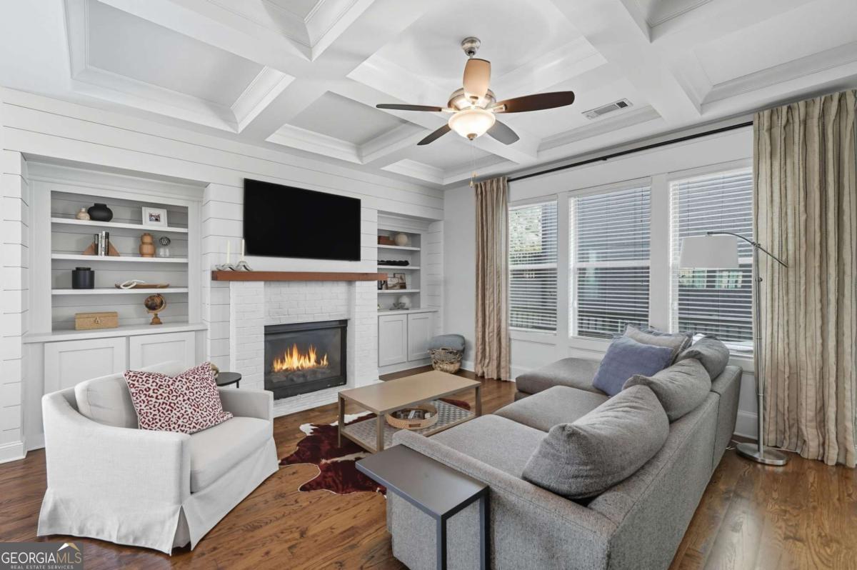 Located in a sought-after Brookhaven neighborhood, this spacious end-unit Townhome is a sophisticated retreat with luxury finishes, light-filled living spaces, and hardwood floors throughout. The open-concept main level is designed for entertaining. The chef-inspired kitchen boasts quartz countertops, a large island with breakfast bar, gas cooktop, stainless steel appliances, and ample cabinetry, flowing seamlessly into the dining area and living room with coffered ceiling, built-in bookcases, and a stunning brick fireplace. Upstairs, the oversized primary suite boasts a walk-in closet and spa-like bath with dual vanities, soaking tub, and step-in shower. A generously sized second bedroom with en-suite bath completes the upper level. The terrace level provides a third bedroom and full bath, ideal for guests or as a flexible space for a media room, home office, or gym. Outdoor living is easy with a private deck perfect for grilling or relaxing, while the two-car garage with extra storage and ample driveway parking add everyday convenience. Tesla charger included. Quietly tucked away at the back of the neighborhood away from the main road, this home offers added peace and privacy while still being close to everything. Experience resort-style living with community amenities that include a swimming pool, clubhouse, fitness center, dog park, and green space. Perfectly situated near Skyland Park, top-rated schools, shopping, dining, and easy access to Buckhead, Emory, and some of Atlanta's most beloved attractions including the Atlanta Botanical Gardens, Chattahoochee Nature Center, and Georgia Aquarium. With easy access to major highways, this townhome offers modern living in one of Atlanta's most vibrant and well-connected communities.