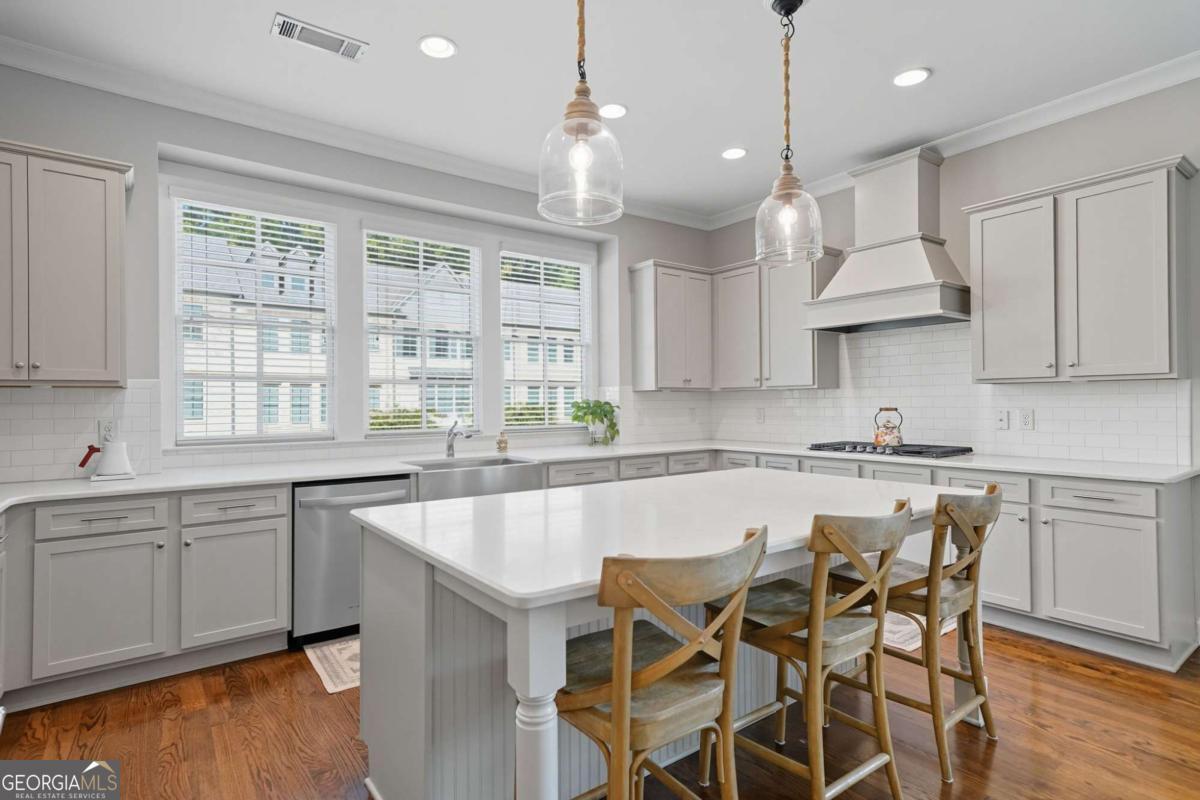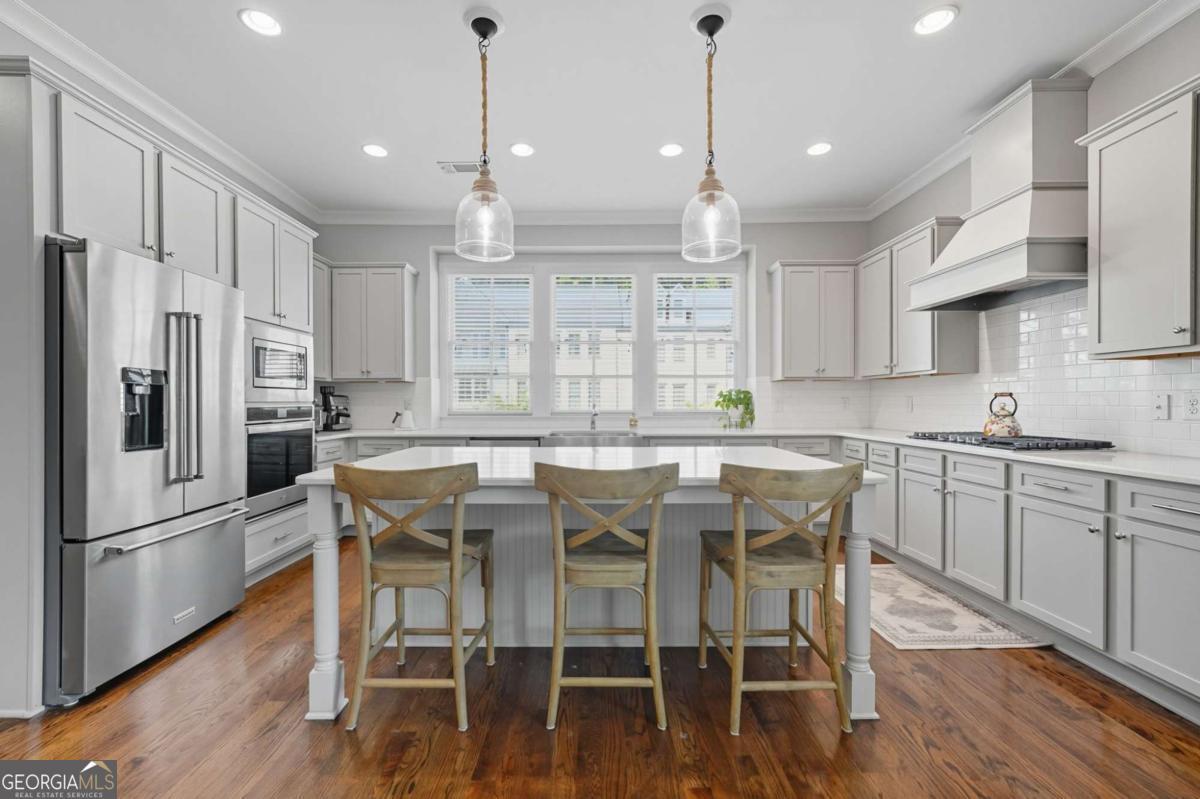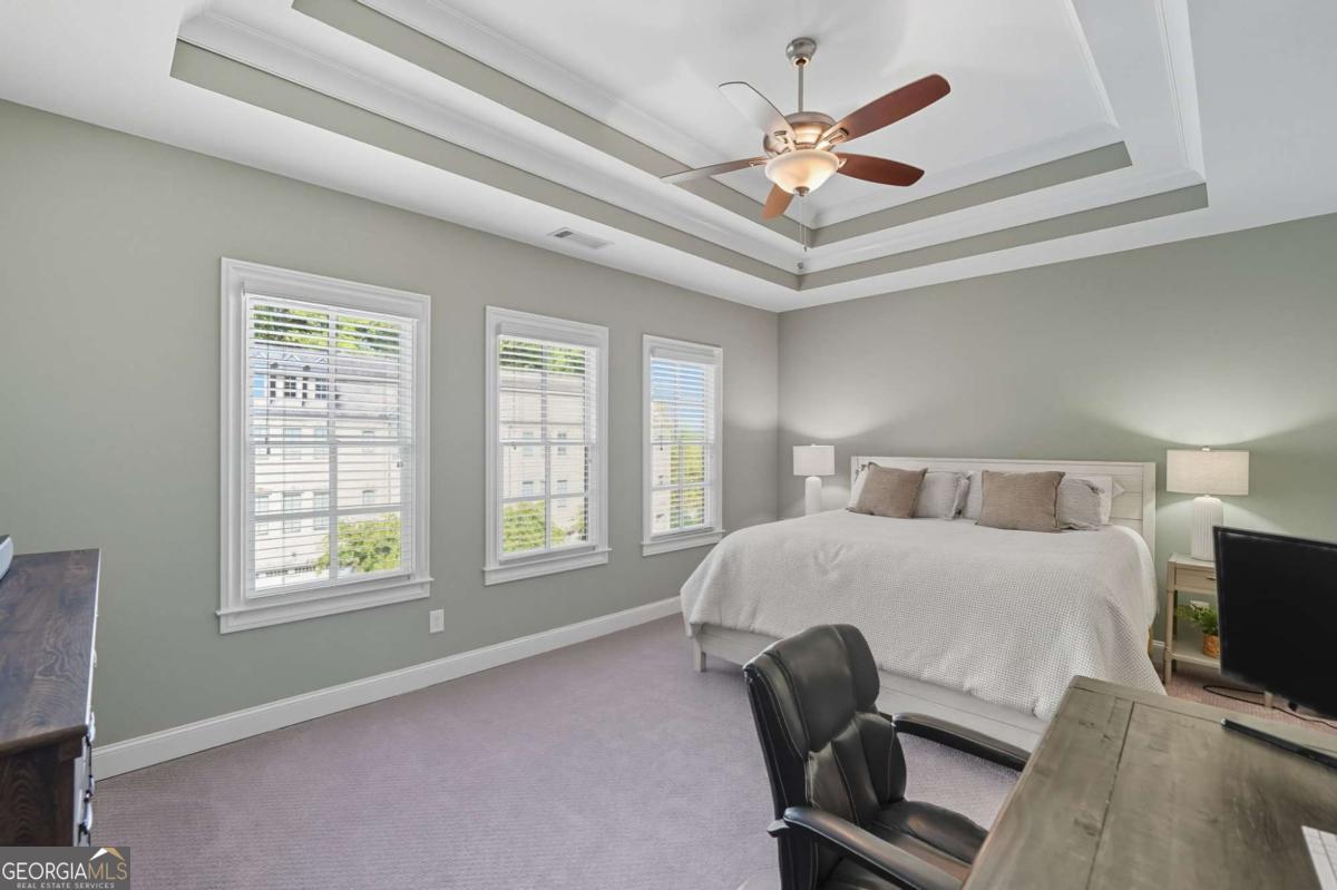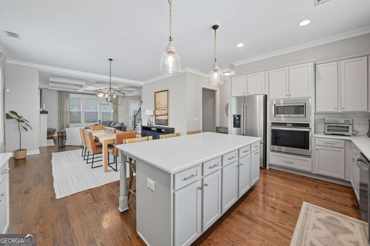 Located in a sought-after Brookhaven neighborhood, this spacious end-unit Townhome is a sophisticated retreat with luxury finishes, light-filled living spaces, and hardwood floors throughout. The open-concept main level is designed for entertaining. The chef-inspired kitchen boasts quartz countertops, a large island with breakfast bar, gas cooktop, stainless steel appliances, and ample cabinetry, flowing seamlessly into the dining area and living room with coffered ceiling, built-in bookcases, and a stunning brick fireplace. Upstairs, the oversized primary suite boasts a walk-in closet and spa-like bath with dual vanities, soaking tub, and step-in shower. A generously sized second bedroom with en-suite bath completes the upper level. The terrace level provides a third bedroom and full bath, ideal for guests or as a flexible space for a media room, home office, or gym. Outdoor living is easy with a private deck perfect for grilling or relaxing, while the two-car garage with extra storage and ample driveway parking add everyday convenience. Tesla charger included. Quietly tucked away at the back of the neighborhood away from the main road, this home offers added peace and privacy while still being close to everything. Experience resort-style living with community amenities that include a swimming pool, clubhouse, fitness center, dog park, and green space. Perfectly situated near Skyland Park, top-rated schools, shopping, dining, and easy access to Buckhead, Emory, and some of Atlanta's most beloved attractions including the Atlanta Botanical Gardens, Chattahoochee Nature Center, and Georgia Aquarium. With easy access to major highways, this townhome offers modern living in one of Atlanta's most vibrant and well-connected communities.