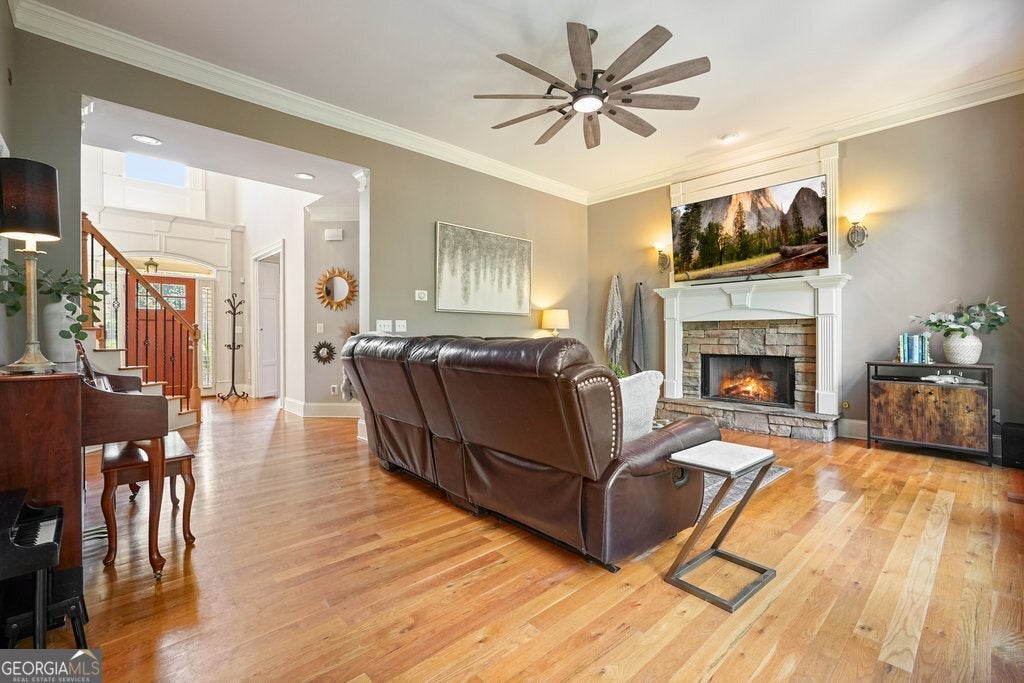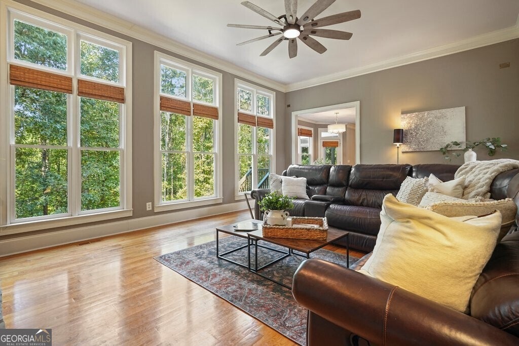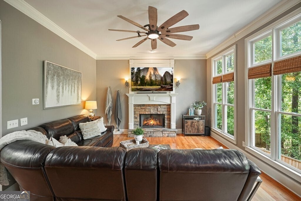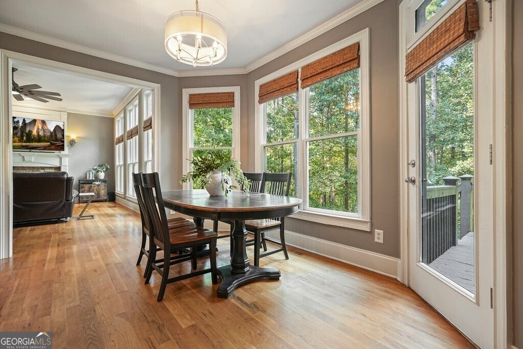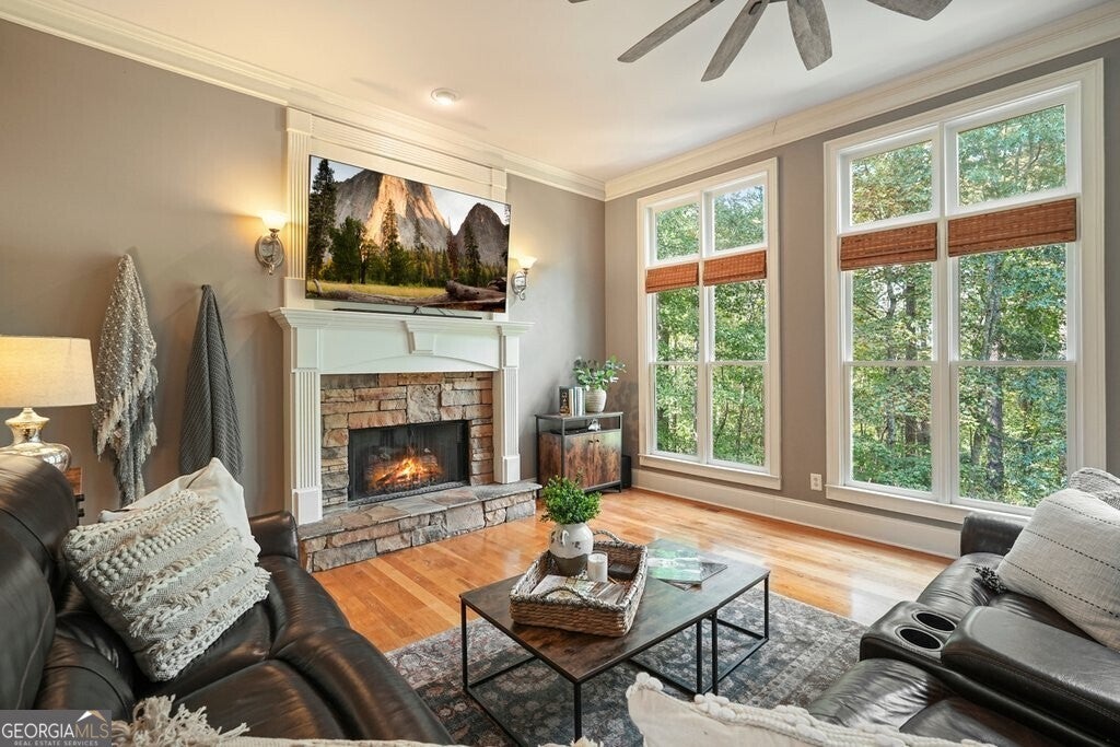 Beautiful Craftsman home featuring classic details & distinctive character located in one of Canton's most desirable amenity communities on a private .5-Acre lot with direct forest access. With a full unfinished daylight basement that provides exciting potential for future expansion and stand out feature of a 3-car garage, this home blends timeless design with an exceptional lifestyle both inside and out. The fully fenced backyard opens directly into the Etowah Forest, creating a peaceful, natural setting rarely found. Enjoy the privacy of wooded views, evening gatherings around a fire pit, and the freedom of having your own quiet retreat. A rear gate leads straight to the forest, perfect for exploring, walking or enjoying the beauty of nature right at your doorstep. From the inviting rocking chair front porch, step inside to a welcoming floor plan with abundant natural light and classic Craftsman details. The spacious family room features a stone fireplace and a wall of windows featuring private views of the forest for miles. Dining room and a study/living room flank the entry way and hardwood floors run throughout the main floor and up the staircase. Kitchen is equipped with double ovens, a gas cook top and walk in pantry, a breakfast bar and stone countertops. Second fireplace is in the keeping room. The screen porch is a favorite spot to relax and enjoy the scenic view. Upstairs, the generous primary suite features a relaxing ensuite bath with double sinks, separate shower and bathtub. Three additional bedrooms provide space for family, guests or home office needs, along with two additional full bathrooms for convenience. Laundry room is located on the second floor with cabinetry, closet and sink. The full unfinished basement provides exciting potential for future expansion - media room, home gym, workshop, or additional living space - the choice is yours! The oversize 3-car garage offers room for multiple vehicles, hobby equipment, storage or a workshop. Enjoy access to exceptional community amenities like Olympic-size swimming pool, four lighted tennis courts, clubhouse, playground and direct access to the Etowah River. Located in desirable Cherokee County with sought-after schools, with shopping & dining so close at Canton Market Place. Nature trails are in the community and parks are just minutes away This home delivers the perfect blend of privacy, comfort and convenience.