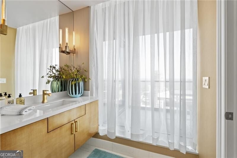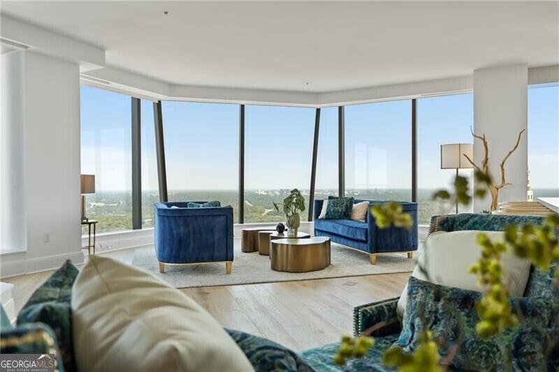 Perched high above Atlanta on the 42nd floor of Sovereign, one of the city's most prestigious residential towers, this fully remodeled residence showcases a sought-after floorplan with three private balconies and breathtaking skyline views. From the solid new hardwood floors to the designer lighting, every detail has been thoughtfully curated. The open-concept design seamlessly connects the living room, den, and dining areas to the expansive chef's kitchen, featuring WOLF, Thermador, and Sub-Zero appliances, pearlized cabinetry, quartzite countertops, and striking Onyx backsplashes. A custom wet bar with glass-front cabinetry, downlighting, and a Thermador beverage center with storage for 44 bottles makes entertaining effortless. The spacious primary suite offers customized dual closets and its own private balcony, while the spa-inspired bath boasts marble floors and shower, a soaking tub, and new dual vanities. The guest suite includes a large walk-in closet, newly designed bath, and private balcony access. Even the powder room delights with a bespoke vanity and lighted art niche. Additional features include three assigned parking spaces and a generous climate-controlled storage room. Living at Sovereign means enjoying unmatched services and amenities, including 24-hour concierge, valet parking, onsite management, private entertaining and lounge spaces, a conference room, wine lockers, Skydeck with zero-entry saltwater pool and hot tub, outdoor grilling stations with WOLF grills, and a state-of-the-art fitness center with private training rooms. All of this is just steps from Atlanta's finest shopping and dining-Lenox Square, Phipps Plaza, Shops Around Lenox, and award-winning restaurants including Bistro Niko right next door. Don't miss the opportunity to experience luxury living at its finest-schedule your private showing today and see why Sovereign is the ultimate address in Atlanta.