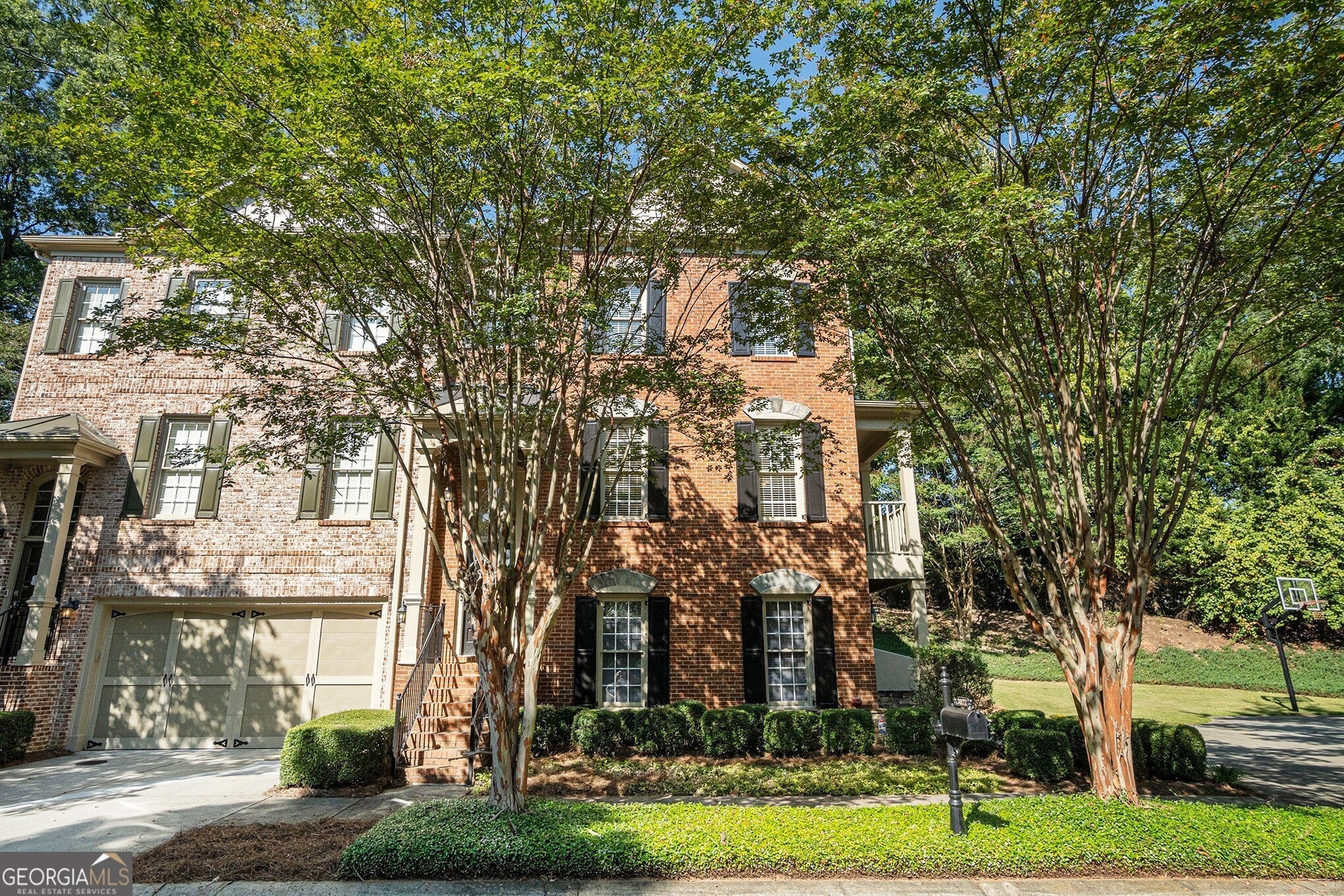 Gorgeous Brick End Unit Townhome in Coveted Cobblestone Walk, Marietta! Zoned for the Highly Sought-After Wheeler High School District and just Minutes to The Battery and Truist Park. Step inside to be greeted by Tall Ceilings, Hardwood Floors, Crown Molding, and an abundance of Natural Light. The spacious Living Room seamlessly flows into the Formal Dining Room a perfect setting for Hosting Guests and Creating Memories. Continue down the hall to the Fireside Family Room, complete with Oversized Windows and Direct Access to your Private Balcony. A charming Breakfast Nook wrapped in a Wall of Windows provides the perfect spot for casual meals. The open layout leads into the Chef's Kitchen, boasting a Breakfast Bar, Stained Cabinets, Stone Countertops, Stainless Steel Appliances, and a Generous Pantry. A convenient Powder Room completes the main level. Upstairs, retreat to the expansive Primary Suite featuring a Tray Ceiling, and space for a Sitting Area. The Spa-Like Ensuite Bathroom showcases a Double Vanity, Soaking Tub, Separate Shower, and a Large Walk-In Closet. An additional Ensuite Bedroom with a Full Bathroom, and Walk-In Closet is also found on this level, along with a conveniently located Laundry Room. The Daylight Terrace Level offers incredible flexibility with a spacious Bonus Room, ideal for a Home Office, Gym, Playroom, or Media Room. A Third Bedroom with Full Bathroom completes the lower level. Outside, enjoy both a Covered Patio and Rear Deck, perfect for entertaining or relaxing under a Peaceful Tree Canopy. A 2-Car Garage adds convenience and function to this already Captivating Home. All of this just Minutes from Historic Marietta Square, KSU, the Chattahoochee River Recreation Area, Multiple Nature Trails, Parks, and Easy I-75/85 Access. This is the Perfect Blend of Location, Lifestyle, and Luxury Living in the Heart of Marietta!