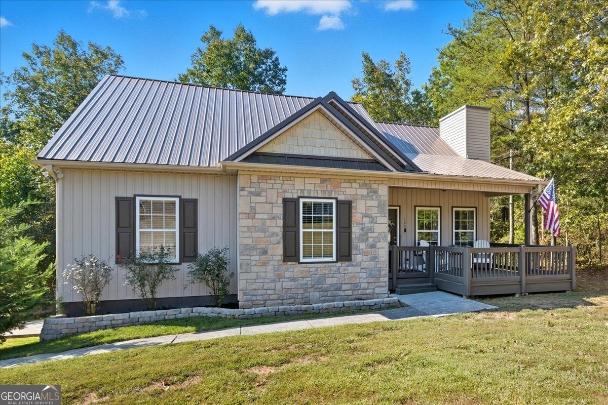 Fall in love with this charming ranch over basement home from the moment you step onto the covered porch and discover plenty of room for rocking and relaxing. Step inside and discover beautiful laminate floors, vaulted ceilings and a centerpiece fireplace with large cedar mantel and shiplap accent wall. There is a spacious kitchen with stainless steel appliances and eat in kitchen. Enjoy the covered deck just off the kitchen and notice your private backyard. The owner's suite is spacious with his and her closets, double vanity in the owner's bath and separate shower and tub. The secondary bedrooms are spacious, but what you will really love is the finished basement currently set up as a man cave. This space could also be an in-law suite or small apartment since it is already set up with a full bathroom and has an exterior exit. The garage is great if you are in need of extra space for your 4-wheeler, motorcycle, golf cart, or possibly a boat. It will fit 2 cars with room to spare and has high ceilings for your truck or van. There is also a workshop area. The driveway has extra parking pad and the fenced backyard features a double gate so you can drive your RV, trailer, or boat behind the fence to keep them safe. There is no HOA. This home is well cared for and many nearly new components such as a 2 year old metal roof. You will want to make this home yours