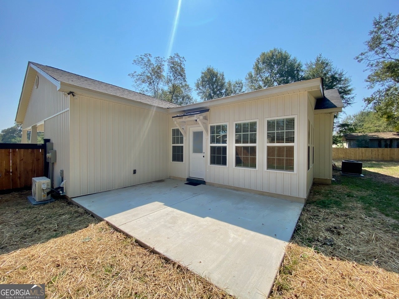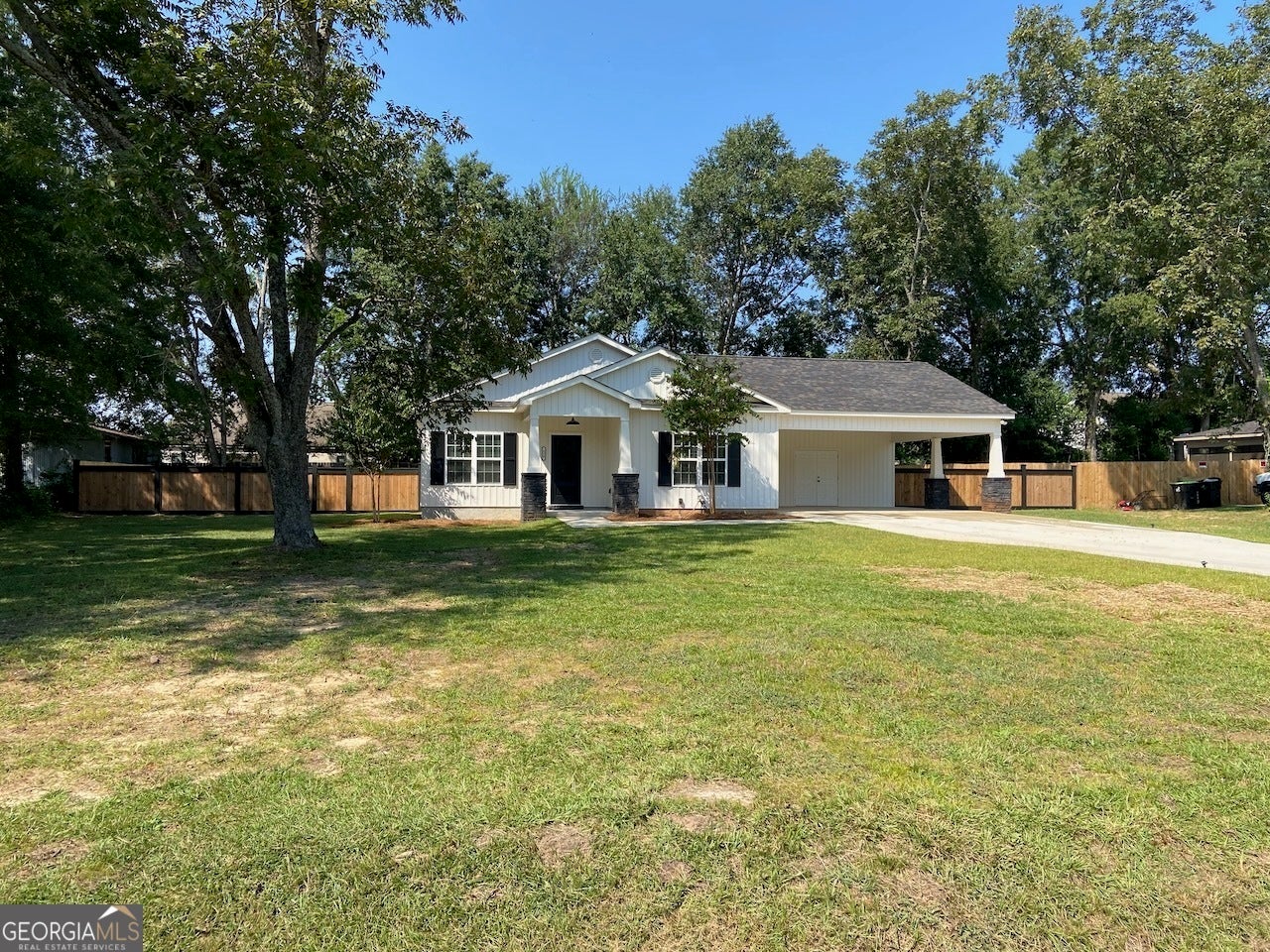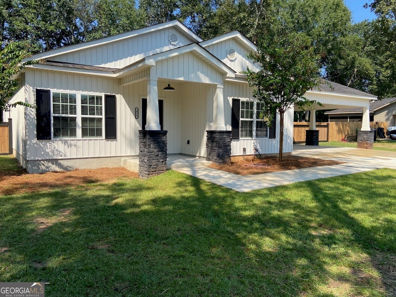 Brand New Construction with Stylish Finishes & Exceptional Extras! This beautifully designed vinyl board and batten home offers 3 generously sized bedrooms and 2 full baths, perfect for modern living. The sunroom off the primary suite opens to a private patio, creating your own personal retreat. Inside, enjoy the warmth of an electric fireplace, soaring high ceilings, and handcrafted cypress shutters that add custom character. The home also features a finished, heated, and cooled utility room - ideal for a home office, gym, craft space, or workshop. The kitchen comes fully equipped with stainless steel appliances including a refrigerator, smooth-top range, microwave, and dishwasher - all ready for move-in. This home also boasts hot AND cold water spigots!