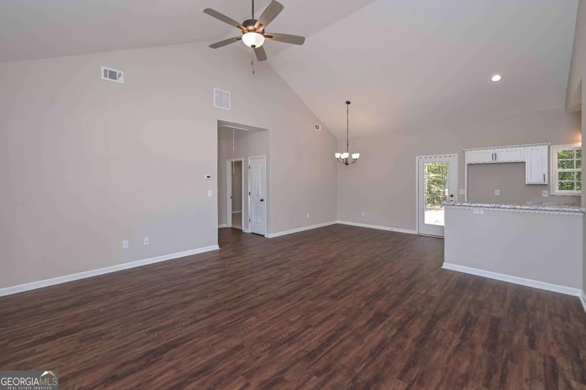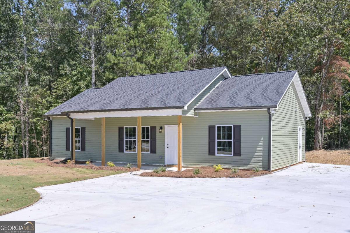 New Construction Ranch on 2.25 Acres!! No HOA! Welcome home to this brand new, one level ranch nestled on 2.25 private acres in a peaceful country setting yet still convenient to shopping, dining, and schools. This home features a split bedroom floor plan with 3 bedrooms and 2 full baths, designed for both comfort and privacy. Step inside to a vaulted great room filled with natural light, open to the dining room and a bright kitchen complete with white cabinetry, stainless steel appliances and plenty of counter space. The laundry room just off kitchen adds extra convenience. The owner's suite offers a walk-in closet, and bath features a stand-up shower creating the perfect retreat. Secondary bedrooms are well-sized and share a full bath. Enjoy outdoor living on the covered front porch or the back patio overlooking a wooded backyard and tree line, ideal for privacy, play or peaceful evenings. With its 2.25 acre lot, no neighborhood restrictions and no HOA, this home provides freedom and space rarely found with new construction. Don't miss this move-in-ready gem that combines modern finishes, privacy, and convenience!
