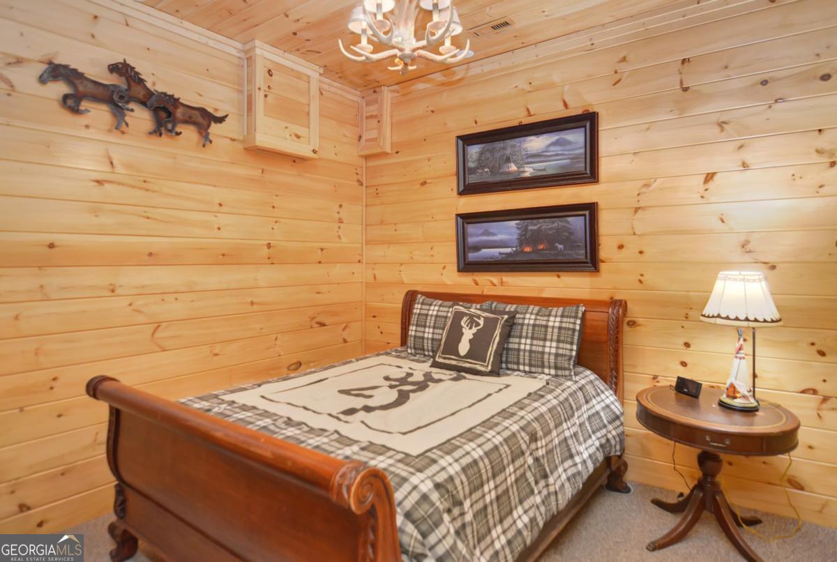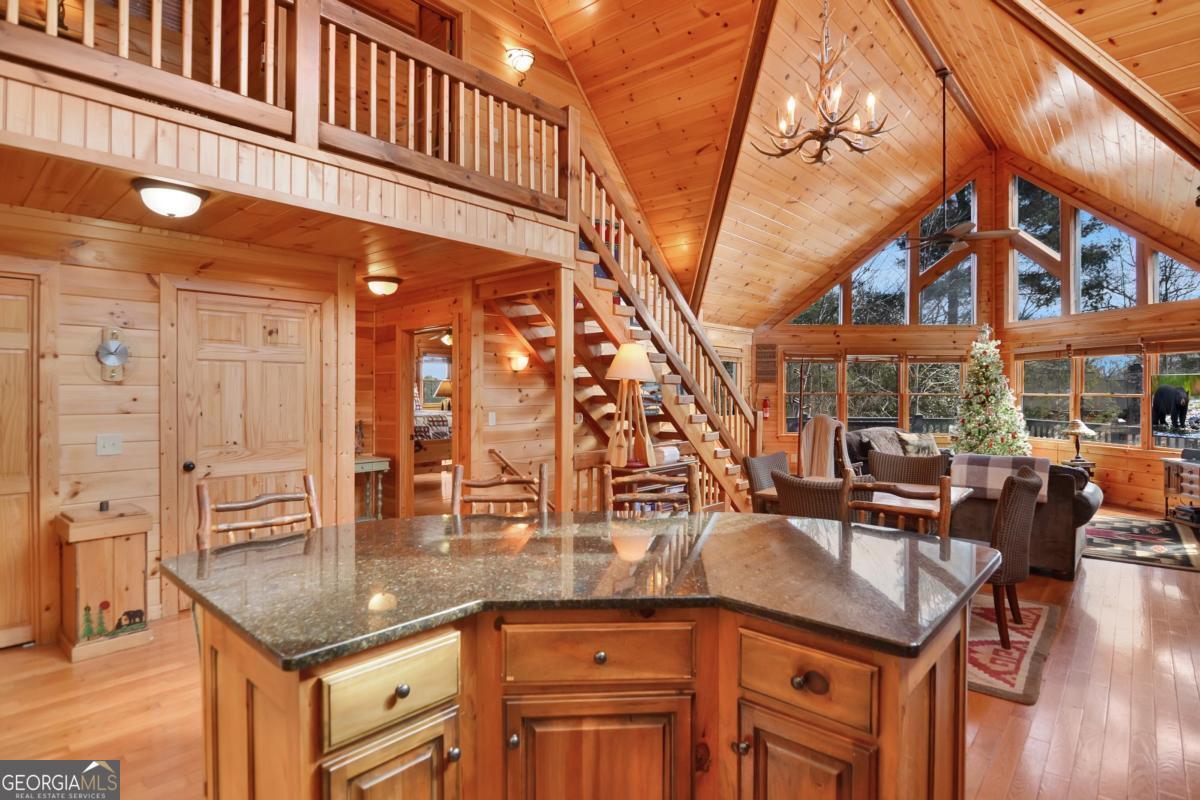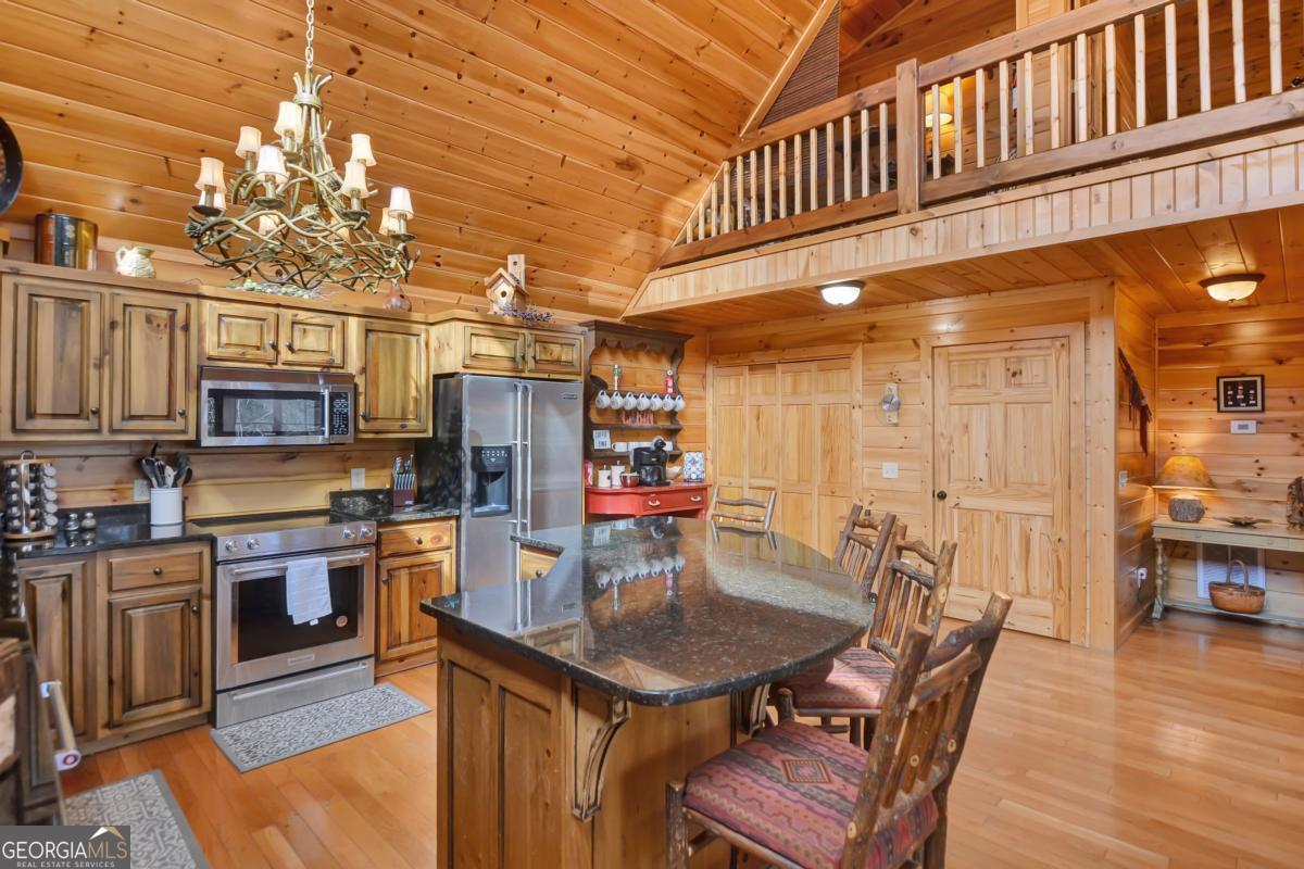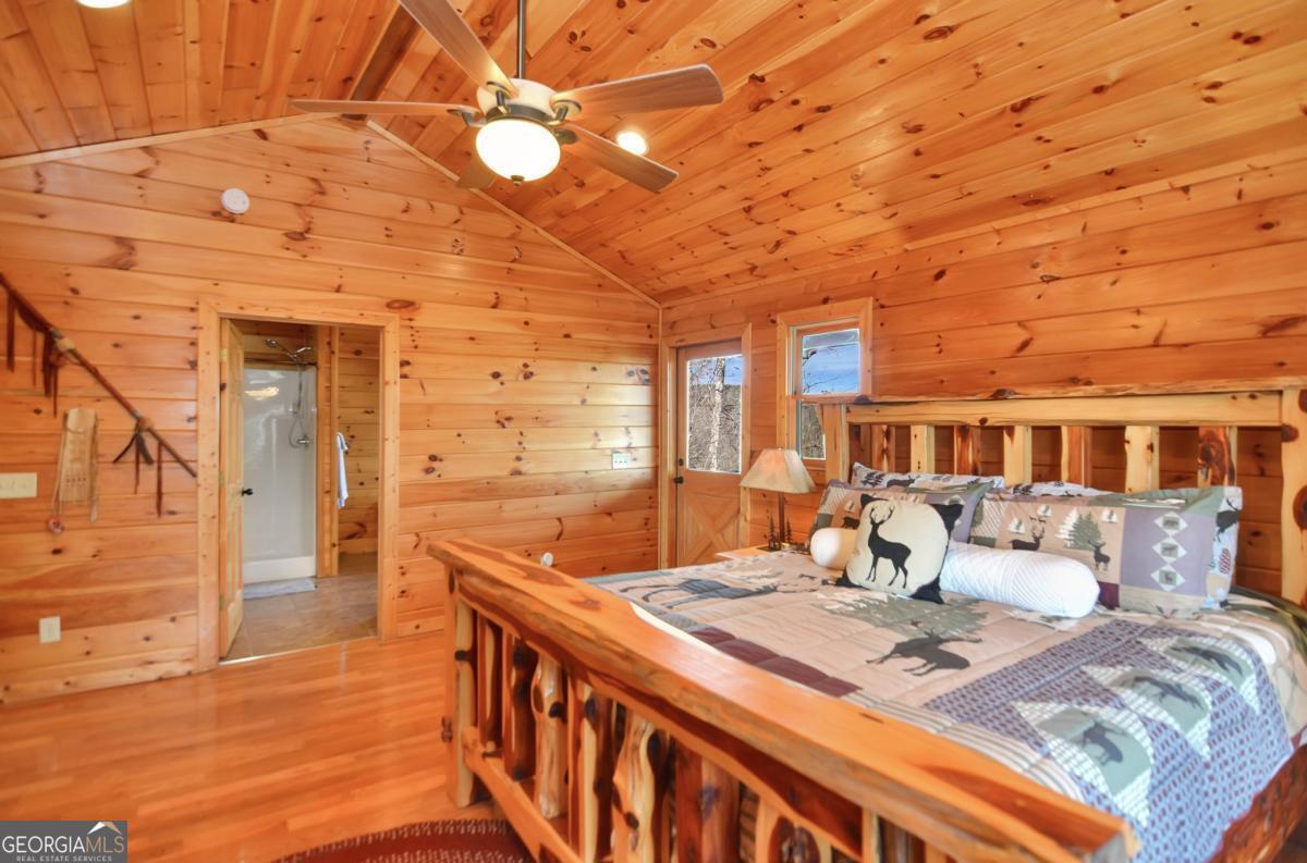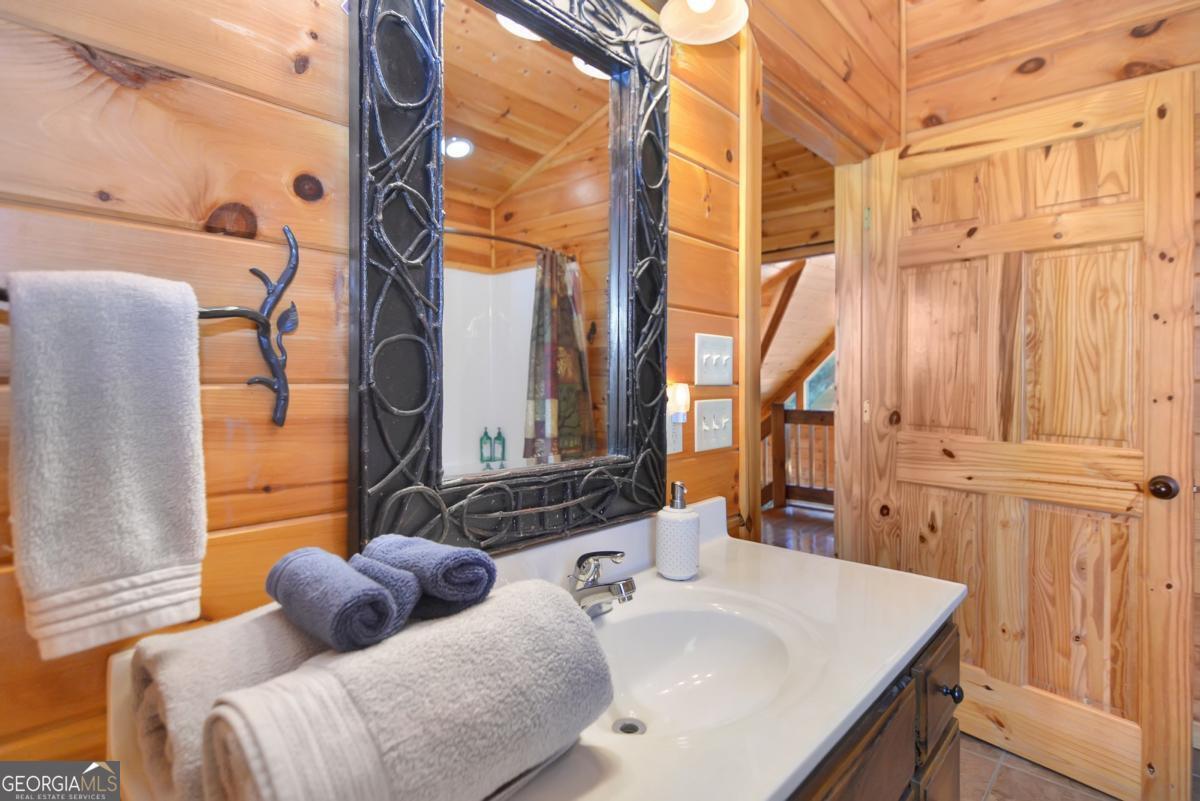 Welcome to The Grin Inn Bear It Lodge in the sought-after Mountain Tops of Blue Ridge! This stunning prow-front cabin checks every box-paved community roads, high-speed internet, and ONLY THREE MILES from the boutiques and dining of downtown Blue Ridge. NEW ROOF + BRAND NEW HOT TUB! Currently an active short-term rental with excellent annual income, this lodge is being sold fully furnished and turn-key-ready for both investors and families looking for a mountain retreat. Inside, the open concept great room, gourmet kitchen, and dining area flow seamlessly together, creating a warm and inviting gathering space. The chef's kitchen boasts stainless steel Jenn-Air appliances, a large center island, and custom cabinetry. With four spacious bedrooms-including two master suites-three full baths, and a convenient half bath on the main level, there's room for everyone. Downstairs is an entertainer's dream: a private home theater with 80" flat screen, surround sound, reclining seating, and a professional pool table, plus a wet bar and wine cooler. After a day of mountain adventures, unwind in the Swedish-style sauna or soak in the brand-new hot tub under the stars. Whether you're seeking a proven income-producing investment or a luxurious personal getaway, this lodge is mountain living at its finest!