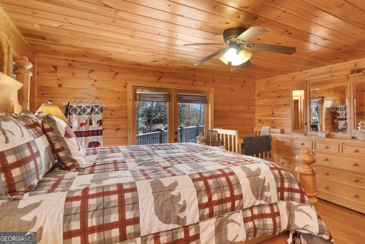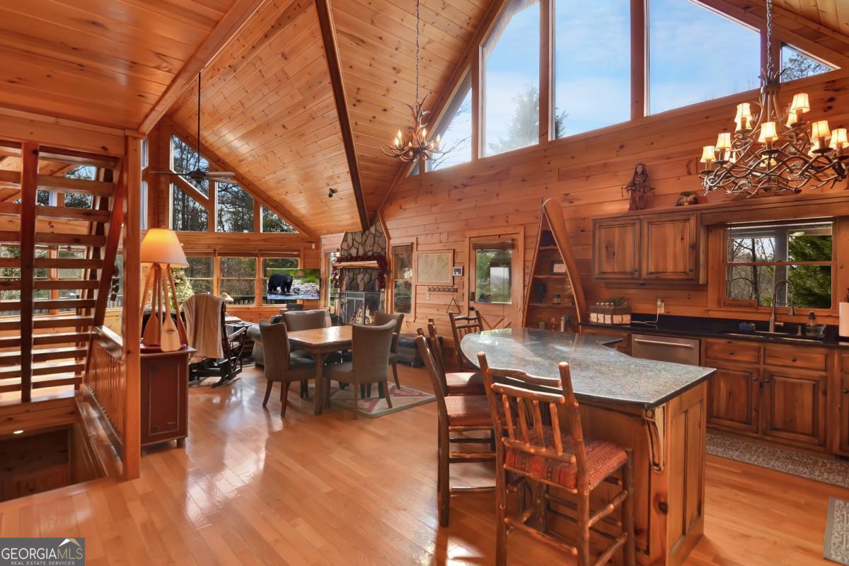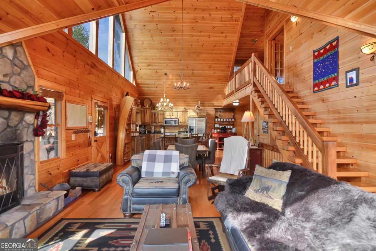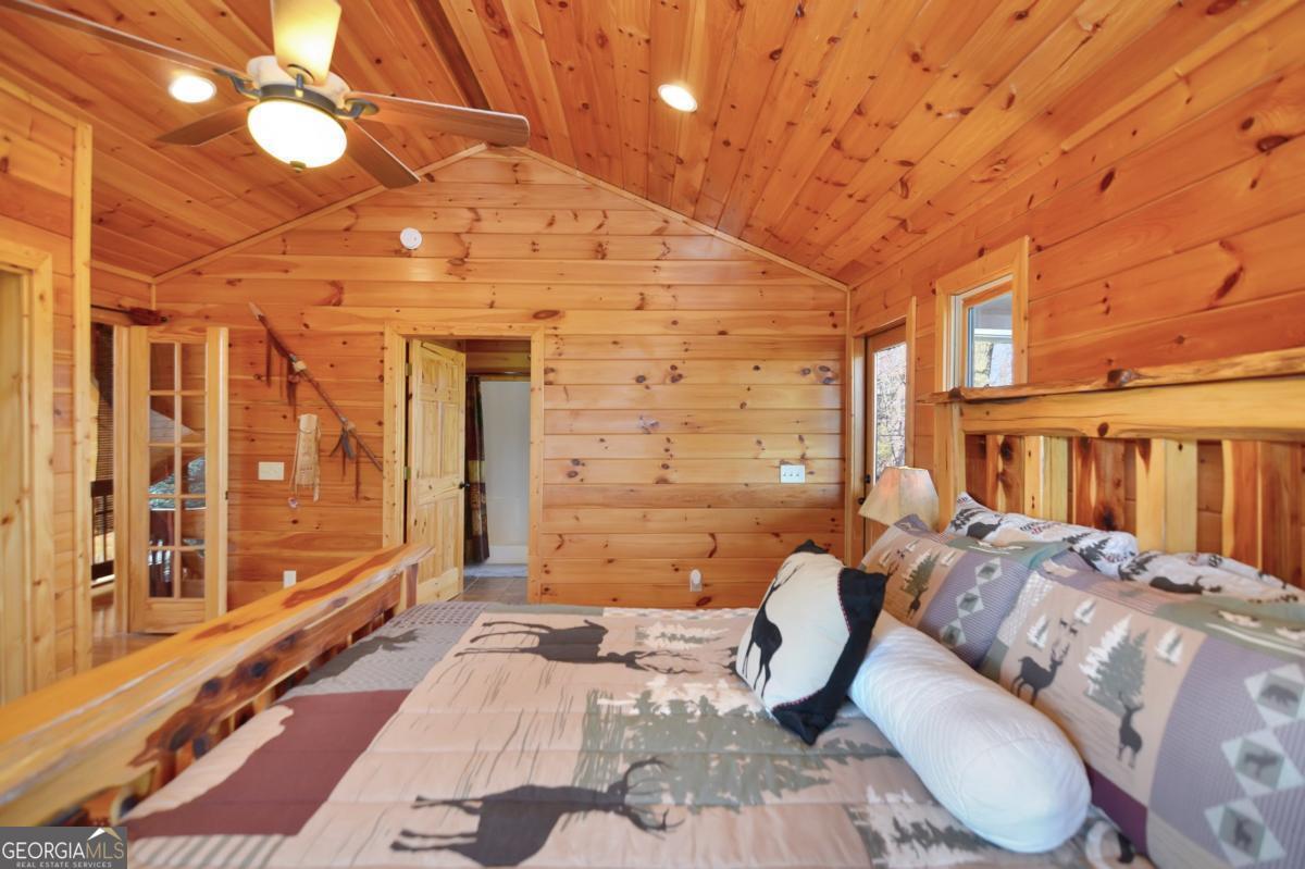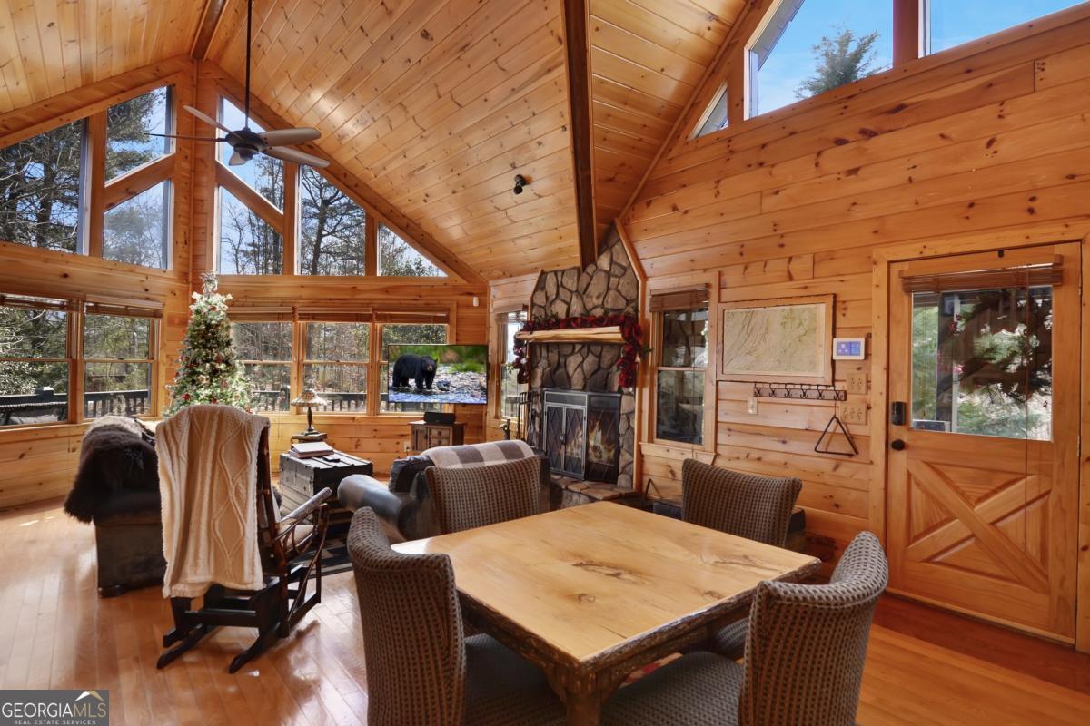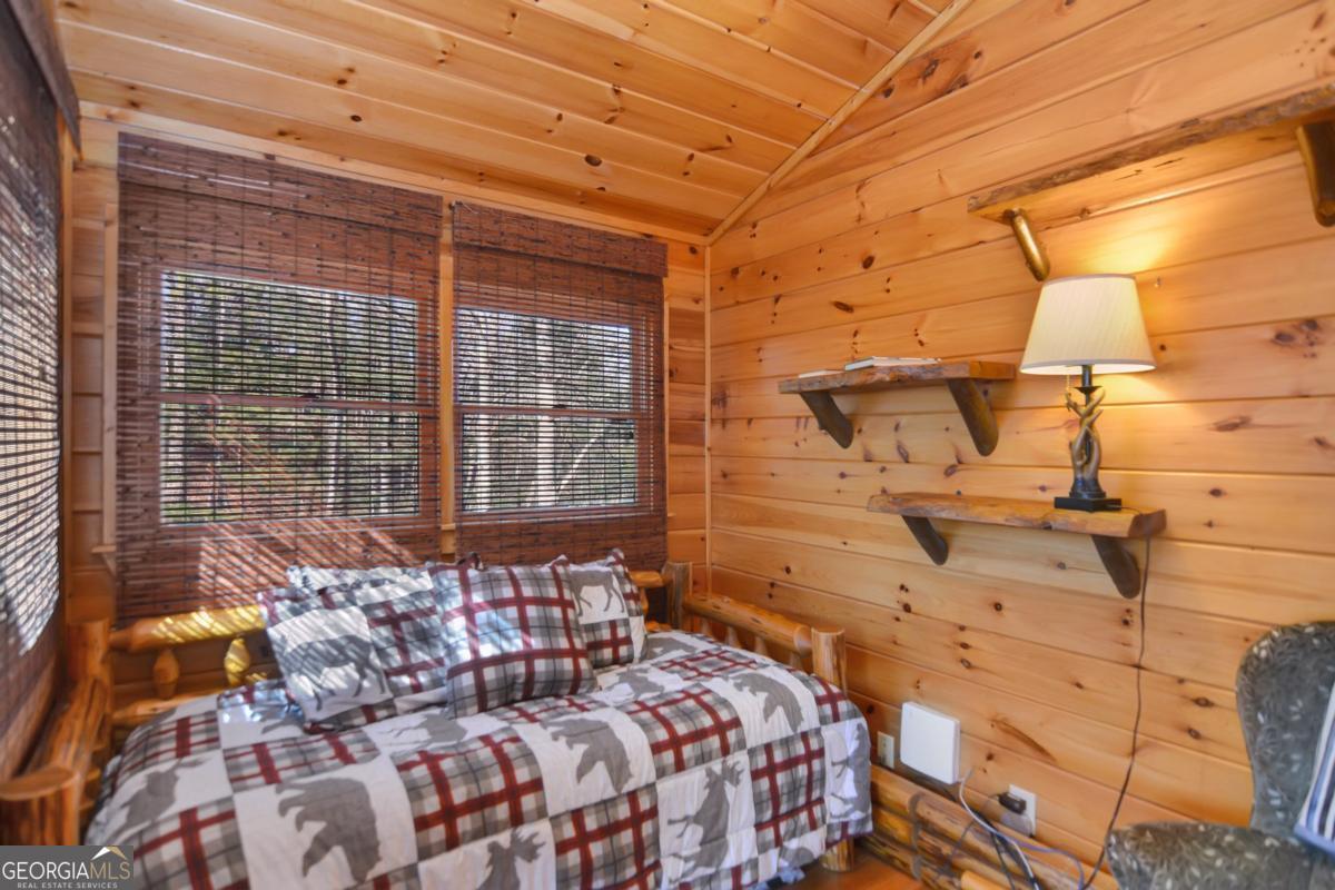 Welcome to The Grin Inn Bear It Lodge in the sought-after Mountain Tops of Blue Ridge! This stunning prow-front cabin checks every box-paved community roads, high-speed internet, and ONLY THREE MILES from the boutiques and dining of downtown Blue Ridge. NEW ROOF + BRAND NEW HOT TUB! Currently an active short-term rental with excellent annual income, this lodge is being sold fully furnished and turn-key-ready for both investors and families looking for a mountain retreat. Inside, the open concept great room, gourmet kitchen, and dining area flow seamlessly together, creating a warm and inviting gathering space. The chef's kitchen boasts stainless steel Jenn-Air appliances, a large center island, and custom cabinetry. With four spacious bedrooms-including two master suites-three full baths, and a convenient half bath on the main level, there's room for everyone. Downstairs is an entertainer's dream: a private home theater with 80" flat screen, surround sound, reclining seating, and a professional pool table, plus a wet bar and wine cooler. After a day of mountain adventures, unwind in the Swedish-style sauna or soak in the brand-new hot tub under the stars. Whether you're seeking a proven income-producing investment or a luxurious personal getaway, this lodge is mountain living at its finest!