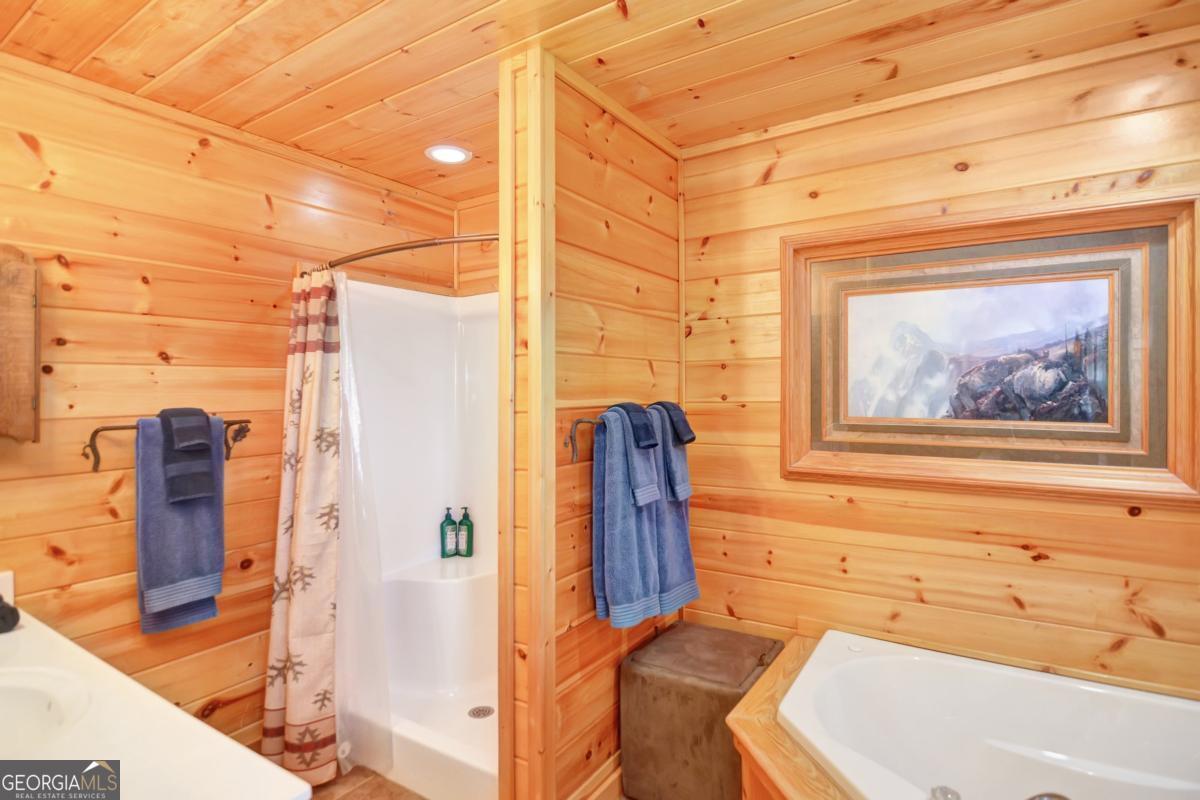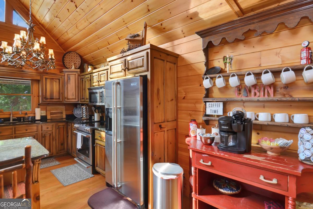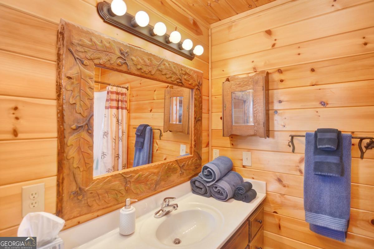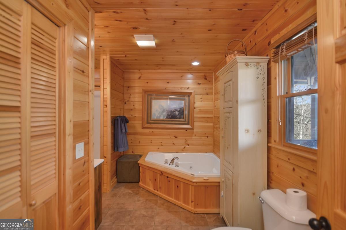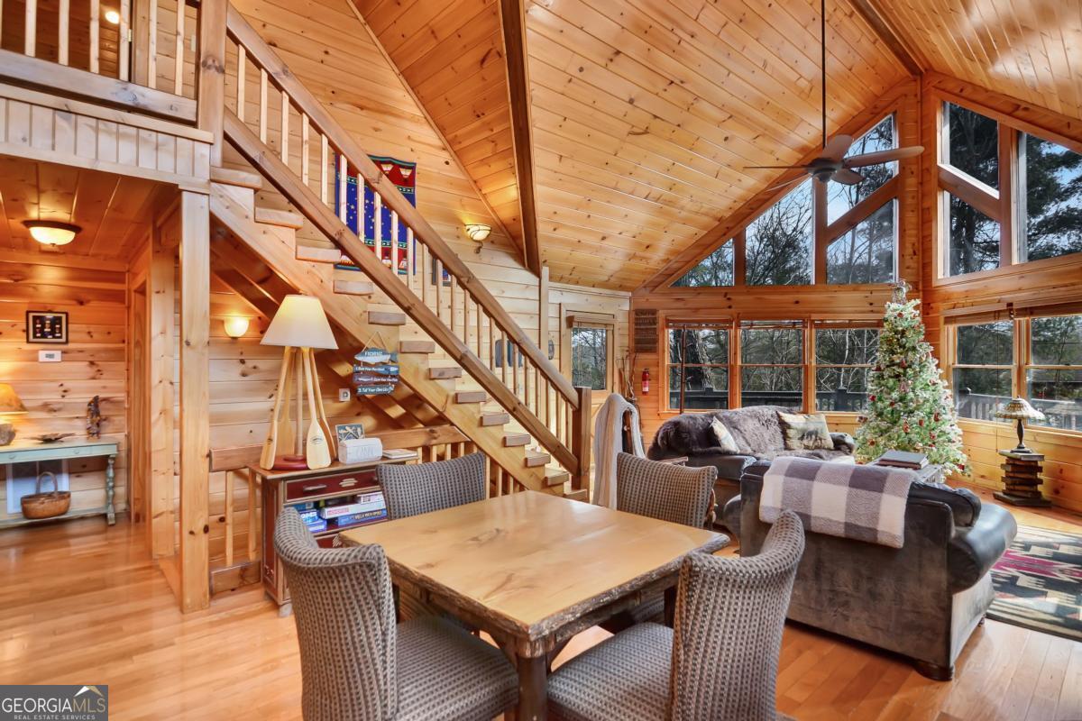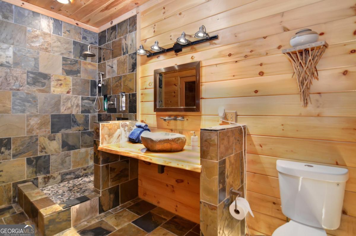 Welcome to The Grin Inn Bear It Lodge in the sought-after Mountain Tops of Blue Ridge! This stunning prow-front cabin checks every box-paved community roads, high-speed internet, and ONLY THREE MILES from the boutiques and dining of downtown Blue Ridge. NEW ROOF + BRAND NEW HOT TUB! Currently an active short-term rental with excellent annual income, this lodge is being sold fully furnished and turn-key-ready for both investors and families looking for a mountain retreat. Inside, the open concept great room, gourmet kitchen, and dining area flow seamlessly together, creating a warm and inviting gathering space. The chef's kitchen boasts stainless steel Jenn-Air appliances, a large center island, and custom cabinetry. With four spacious bedrooms-including two master suites-three full baths, and a convenient half bath on the main level, there's room for everyone. Downstairs is an entertainer's dream: a private home theater with 80" flat screen, surround sound, reclining seating, and a professional pool table, plus a wet bar and wine cooler. After a day of mountain adventures, unwind in the Swedish-style sauna or soak in the brand-new hot tub under the stars. Whether you're seeking a proven income-producing investment or a luxurious personal getaway, this lodge is mountain living at its finest!