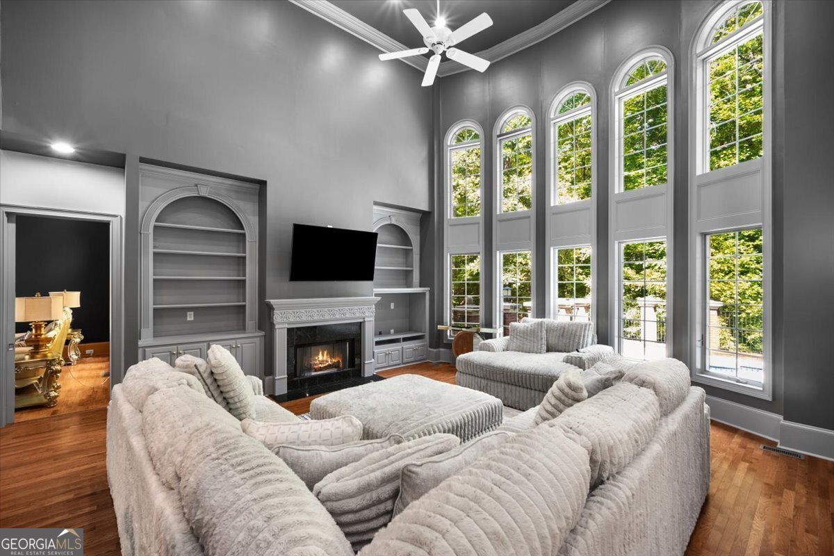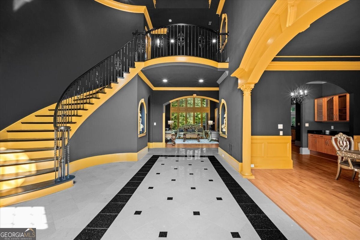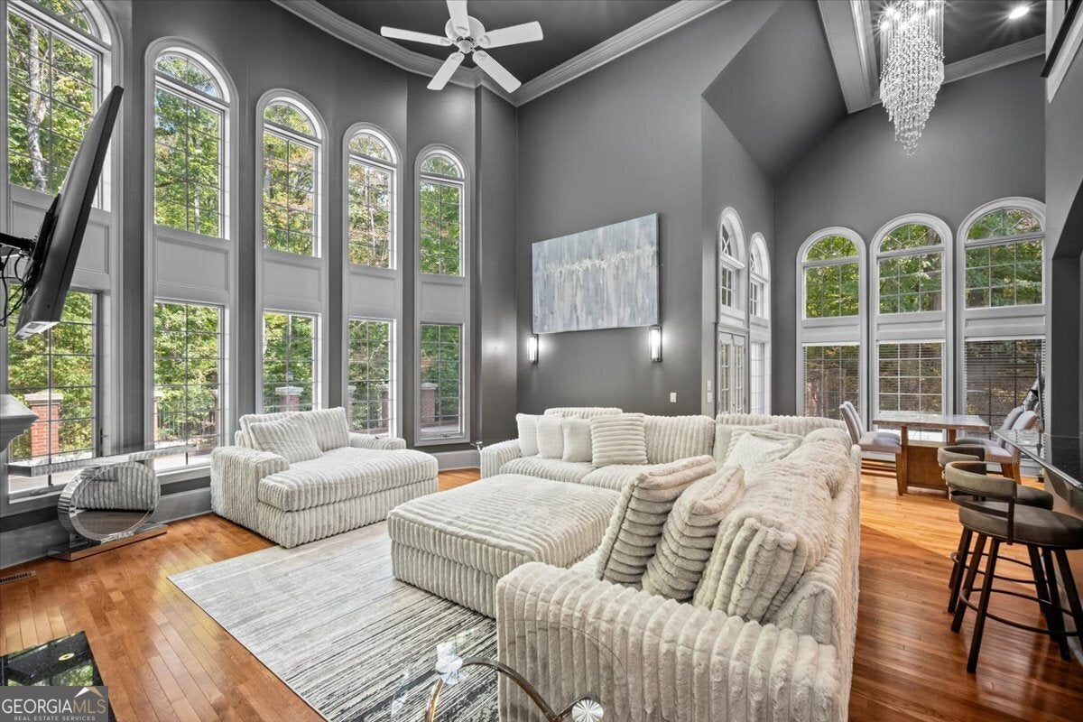 Experience timeless sophistication at 1670 Riverside Road, an extraordinary 9,251 sq ft private estate in the coveted, tree-lined enclave of Roswell, Georgia. Set behind a sweeping driveway and framed by picturesque views, this architectural masterpiece welcomes you with a grand foyer and dramatic curved staircase, unfolding into sun-drenched living spaces with floor-to-ceiling windows and bespoke cabinetry throughout. The owner's suite on the main level is a sanctuary of indulgence, showcasing a spa-inspired bath, oversized boutique closet, and discreet main-level laundry. Curated for exceptional entertaining, the home features keeping and breakfast rooms, a butler's pantry, and a chef's scullery. A fully finished lower level reveals a world-class theater, sauna, full kitchen, and elegant living lounge-perfect for hosting or private retreats. Outdoors, an airy resort-style oasis awaits, anchored by a shimmering pool and generous terraces ideal for alfresco gatherings. A three-car garage completes the estate, which is powered by gas and electric utilities and enriched by an executive study for distinguished work-from-home living. With no HOA and moments from premier country and swim/tennis clubs-The River Club, Roswell Country Club, and Horseshoe Bend Country Club-this residence blends unparalleled privacy with effortless access to the best of North Fulton. Offered at fair market value, 1670 Riverside Road is a statement of artistry, comfort, and enduring luxury.