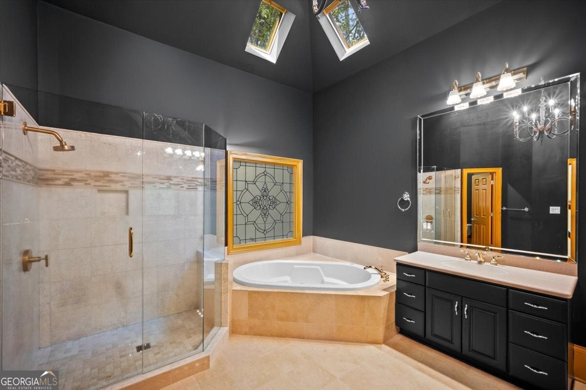 - Interior FeaturesDouble Vanity, High Ceilings, Other, Sauna, Soaking Tub, Walk-In Closet(s), Wet Bar