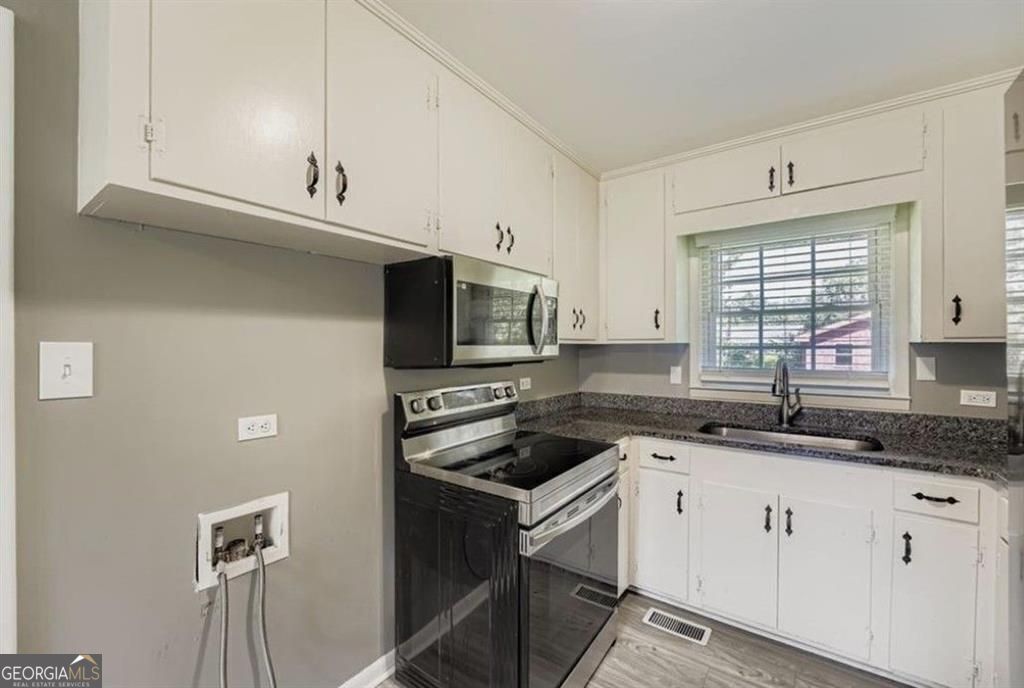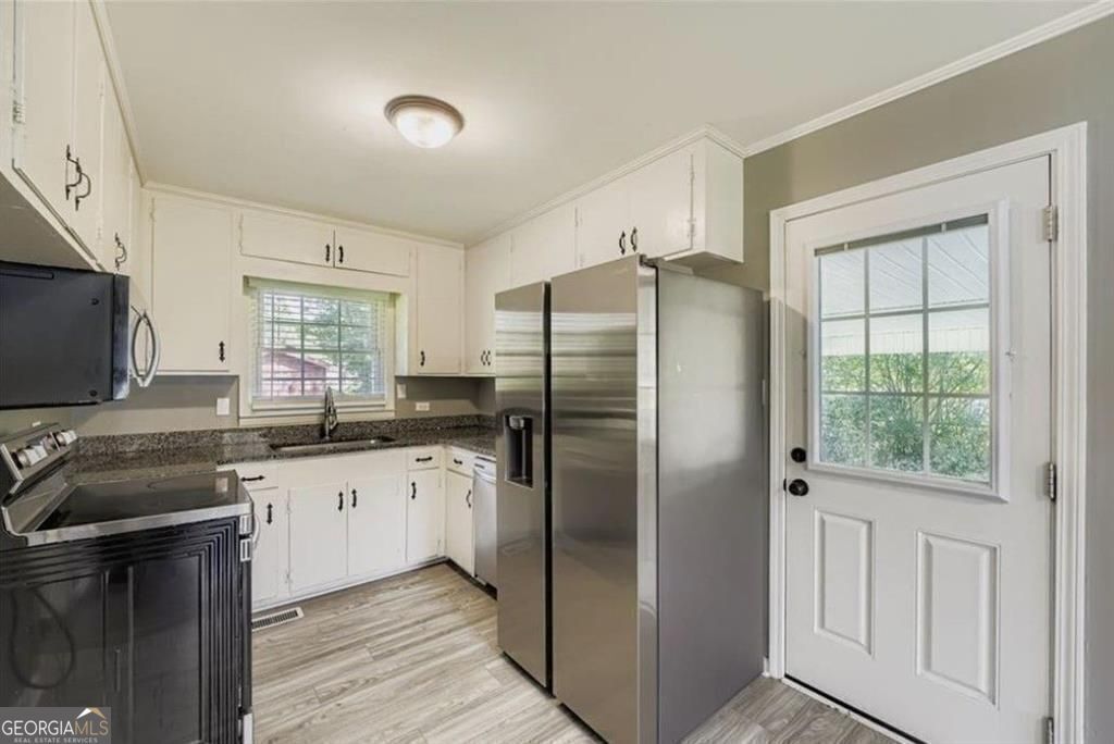 BACK ON THE MARKET!! Welcome to this well-maintained home featuring a bright, functional kitchen with luxury vinyl tile flooring, granite countertops, a deep stainless-steel sink, and plenty of cabinet space. The built-in cabinetry offers incredible storage and a perfect opportunity to add your own design touches. Enjoy peace of mind with a metal roof and leaf-guarded gutters, vinyl windows with blinds throughout, and a fully electric setup with upgraded stainless-steel appliances. All major mechanical systems, including the HVAC, were replaced in 2017, and the interior was freshly repainted in November - making this home truly move-in ready. Calling all teachers, this home is within walking distance to local schools. Skip the commute and live local! Perfect for anyone looking for a property that's been cared for with thoughtful upgrades while leaving room to add their own style!