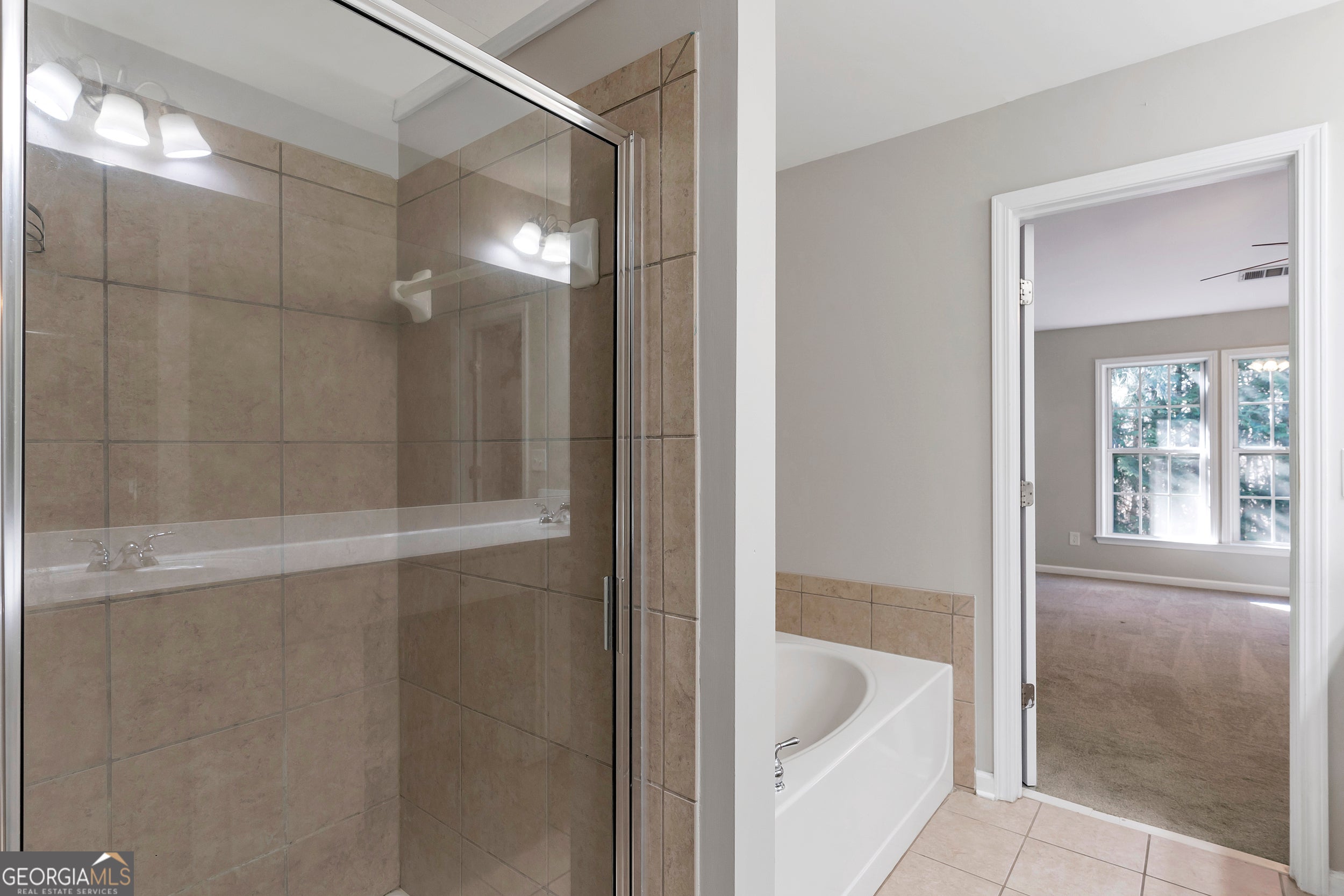 - Interior FeaturesDouble Vanity, Soaking Tub, Separate Shower, Tile Bath, Vaulted Ceiling(s), Walk-In Closet(s)