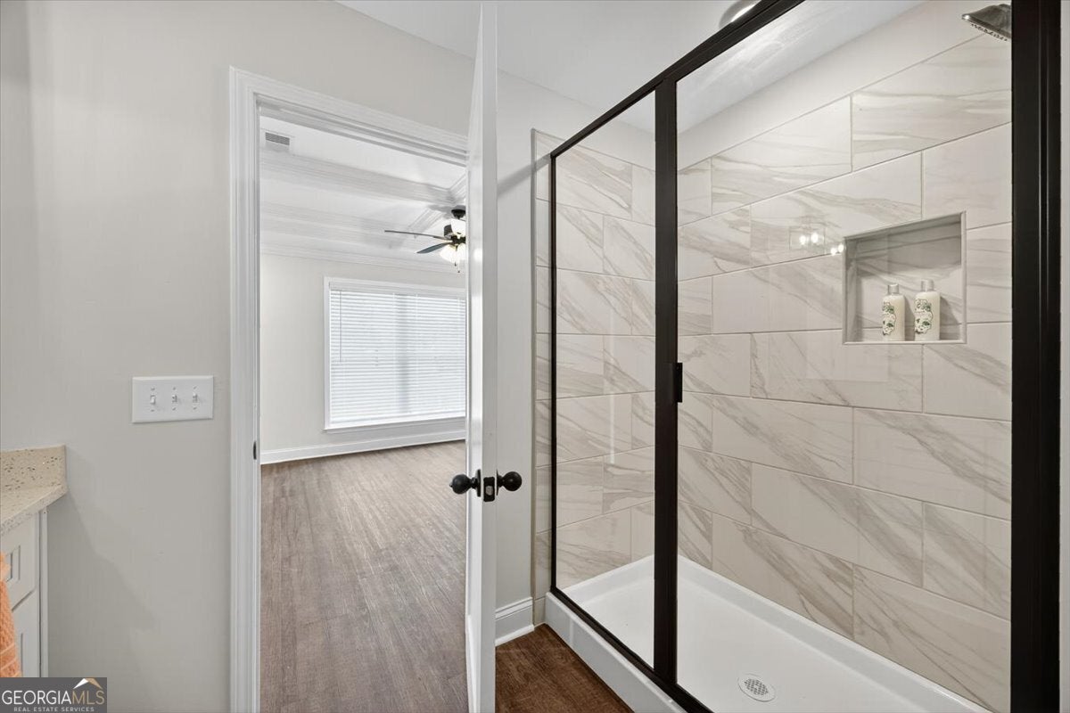 Step inside 350 Browning Pointe and let the story unfold. The first thing you'll notice is the bright, white kitchen counters dressed with chic black-matte pulls-a crisp, modern contrast that sets the tone for the entire home. A formal dining room wrapped in timeless judges paneling leads you gracefully toward the heart of the house, while hinting at the elegance beyond. Continue through and discover a floor plan that feels large yet inviting. An expansive gallery-style hallway wall becomes both art and architecture, elegantly separating the retreat-like bedrooms. Each suite is a calm, private world of its own. And then, the grand reveal: the Primary bedroom a true private oasis. Tall ceilings, soft natural light, and serene finishes create a sanctuary. The spa-inspired bath features an elegant walk-in shower framed in black trim, a striking mix of clean marble-look tile and modern matte hardware. Beyond, the walk-in closet unfolds like a private boutique, with generous shelving and thoughtful design that makes getting ready feel like a luxury ritual. Every corner of 350 Browning Pointe is about living beautifully: style that impresses, space that welcomes, and details that elevate daily life. This is more than new construction-it's where your next chapter begins.