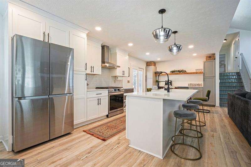 Welcome to this beautifully renovated 5BR/3BA contemporary home in the sought-after Lassiter High School District! This stunning updated home has been renovated inside and out. Step into the front entryway and be welcomed by soaring vaulted ceilings, an abundance of natural light, and an open-concept living space that creates a seamless flow throughout. Enjoy fresh interior and exterior paint, luxury vinyl plank flooring in the main living areas, primary suite, and downstairs bedroom, with plush carpeting in the secondary bedrooms. The open-concept living area features a stunning stone fireplace and a fully renovated kitchen with quartz counter tops, stainless steel appliances, a coffee bar, additional storage, and a drink fridge for added convenience. The bright and airy dining area opens to sliding glass doors leading to a newly stained deck-perfect for entertaining or enjoying a peaceful evening outdoors. Upstairs, you'll find a fully renovated guest bathroom, two spacious guest bedrooms, and a large primary suite. The primary suite includes a luxurious en suite bathroom with a large walk-in shower, custom wood wall treatment, double vanities, and a walk-in closet with custom built-ins. On the lower level, there's a second family room, two additional bedrooms, and a beautifully updated Jack and Jill bathroom-ideal for modern living. The laundry room on this level offers extra storage with built-in shelving and access to additional crawl space storage. Situated on a large corner lot, this home features a fenced-in backyard with mature trees for tranquility. New slat wall just built on the deck for added privacy! Additional updates include a brand-new roof (2025), new HVAC system (2024), and a new water heater (2024). HOA for this community is an Optional Voluntary Association.