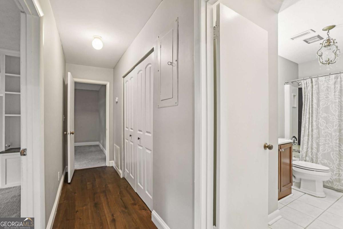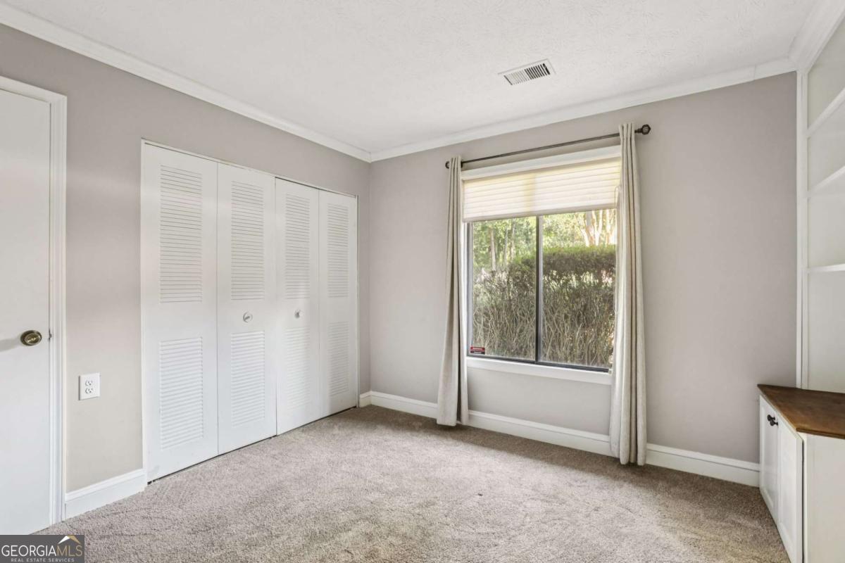 Rare 2 bedroom, 2 bath condo in East Cobb that lives more like a townhome with 1,288 square feet, only one shared wall, and no neighbors above or below. Beautifully renovated with an open-concept layout, luxury LVP flooring, crown molding, abundant natural light, and a spacious living room with a wood-burning fireplace. The updated kitchen features white cabinetry, quartz countertops, stainless steel appliances, and a large island with bonus storage. The oversized primary suite includes a walk-in closet and updated bath, while the secondary bedroom offers custom built-ins for added charm and function. Enjoy a private patio retreat framed by an arched trellis and mature magnolia trees. Located in a peaceful, tree-lined community with pools and a clubhouse, just minutes from I-75, Truist Park, The Battery, shopping, dining, and entertainment. Recent PEX plumbing replacement adds peace of mind. Low-maintenance living, updated interiors, and rare privacy make this a standout opportunity in The Woods.