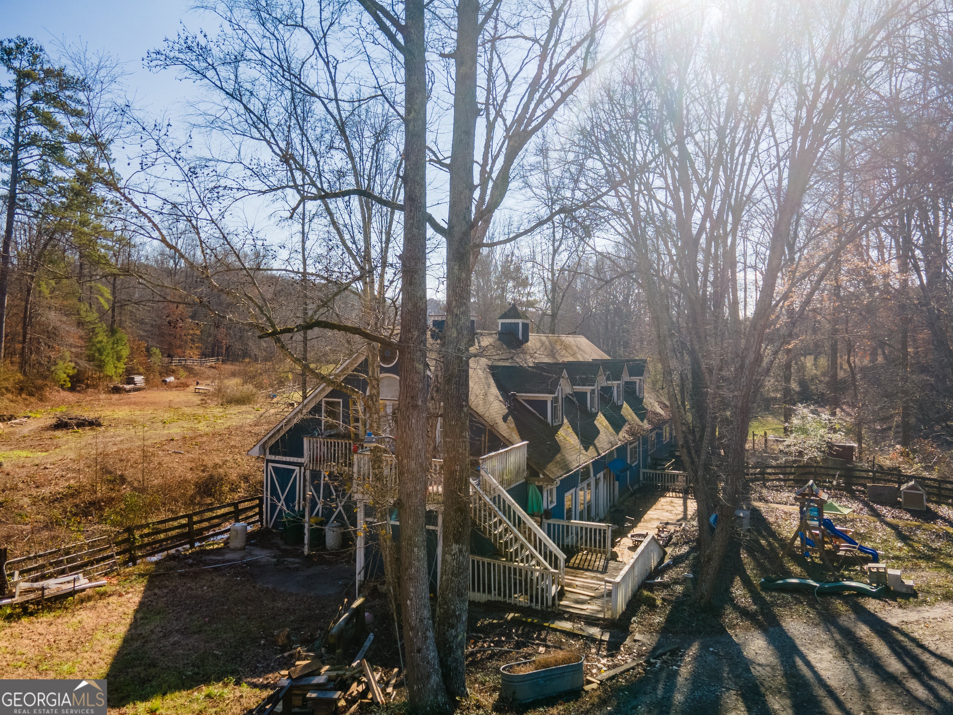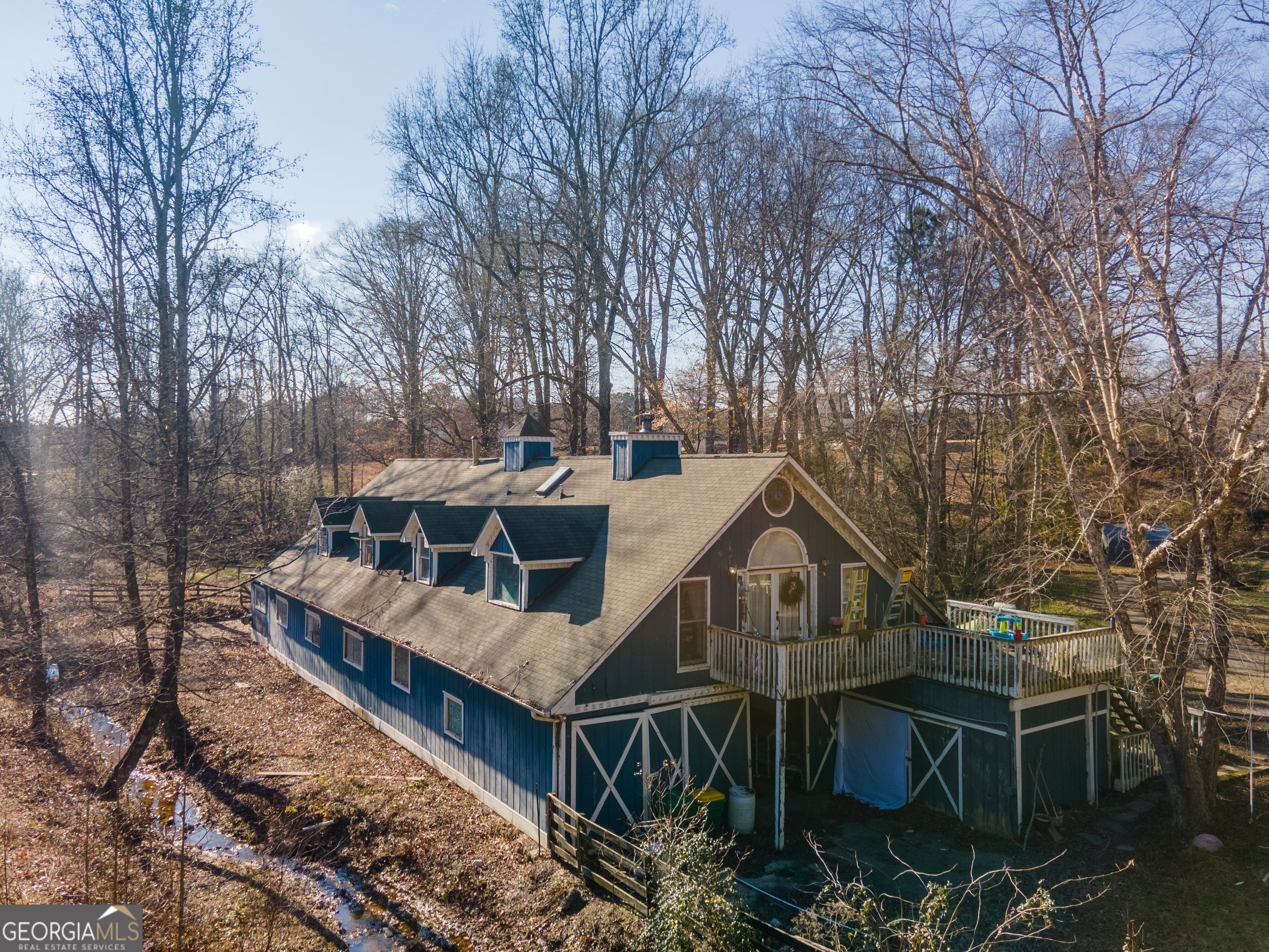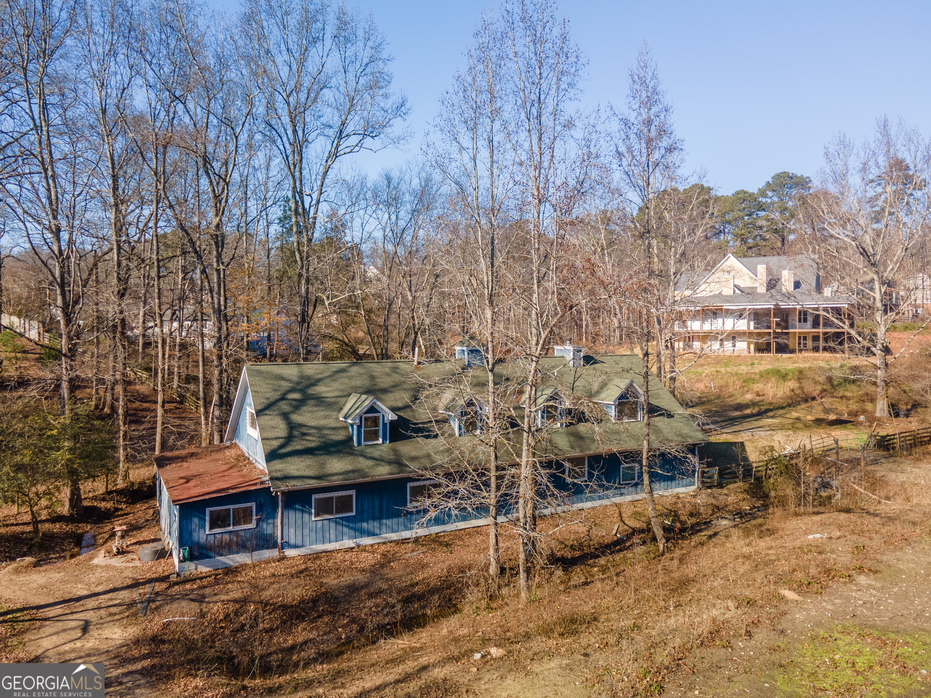 HOUSES ON 7+ ACRES IN CANTON! Home #1: 7290 sq Ft+ unfinished Terrace Level Custom Unfinished Tim Brian Designed "Dream Home" Built just Past Framing with Recent pre-Drywall Inspection on 2 Acre Lot, Master on Main Floor Plan, 3 Car Side Entry Garage with Long Driveway Set Back from Road with Wrap-Around Porches and Plenty of Room for a Pool. 2 Levels of Wrap Around Porches Under Roof. Design has many Fireplaces, Large Rooms with Soaring Ceilings. ~500k+ Quotes Given to Complete the Home for Move In. Quotes and Designs are Available for Buyer. Several Improvements Recently Completed like Lot Clean Up, Some New Landscaping, Septic Tank Installed with Lines in Front, and New House Wrap. Home #2: 7522 sq ft Finished Home on a 5 Acre Lot, Offers Level 3 Granite and Commercial Grade Appliances in Chef's Kitchen, Master on Main Floor Plan with Finished Areas in Basement-Detached 2 Car Garage and In-Ground Pool with Plenty of Patio Space. The house is livable but in need of significant updates and renovation. Ideal for buyers who love a project, investors looking for potential, or equestrian enthusiasts wanting land with existing infrastructure. Barn: Offers @2000 sq ft of Upstairs Living Quarters and Main Level Hand Quarters/Tack Rooms, Wash Stalls, Birthing Rooms, and more! Riding Ring Near Barn with Creek Access and 2 Acres of Fenced Pasture.