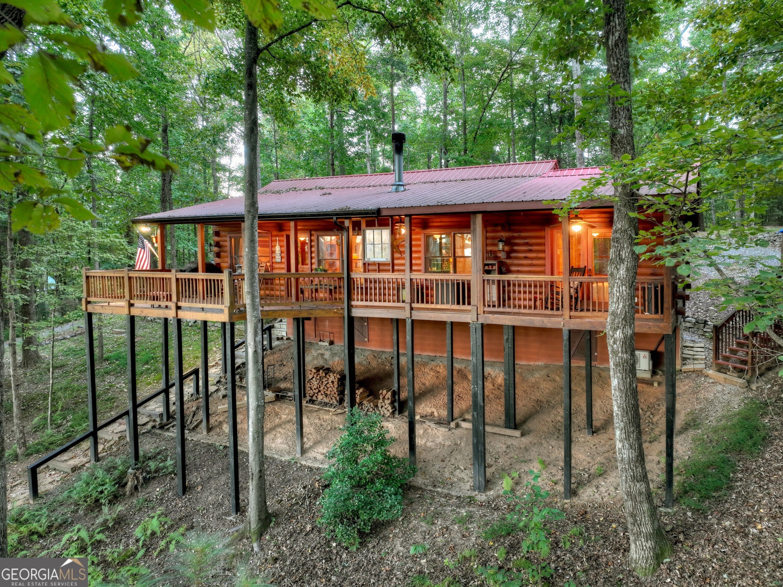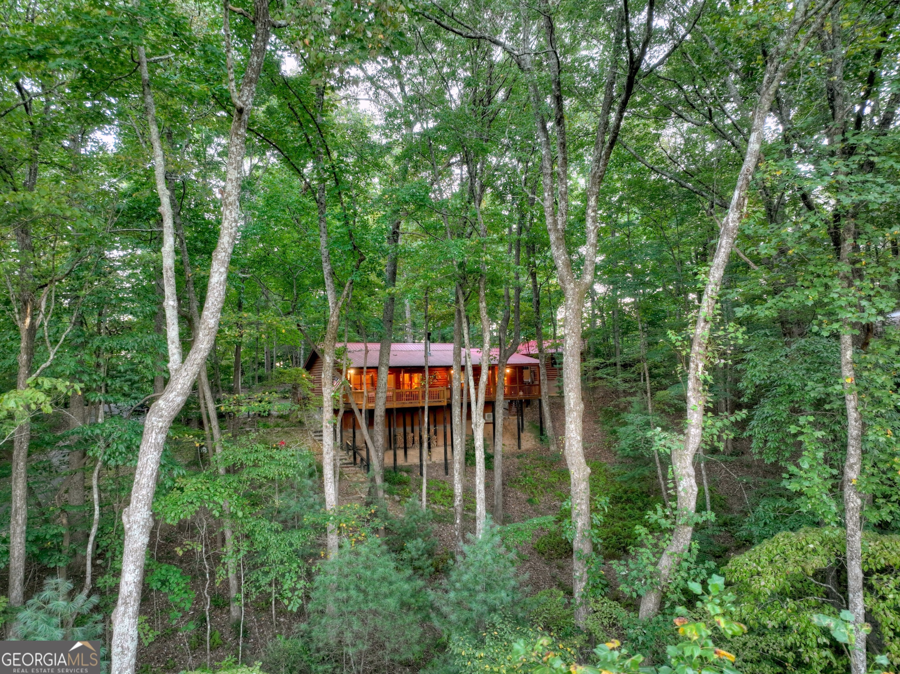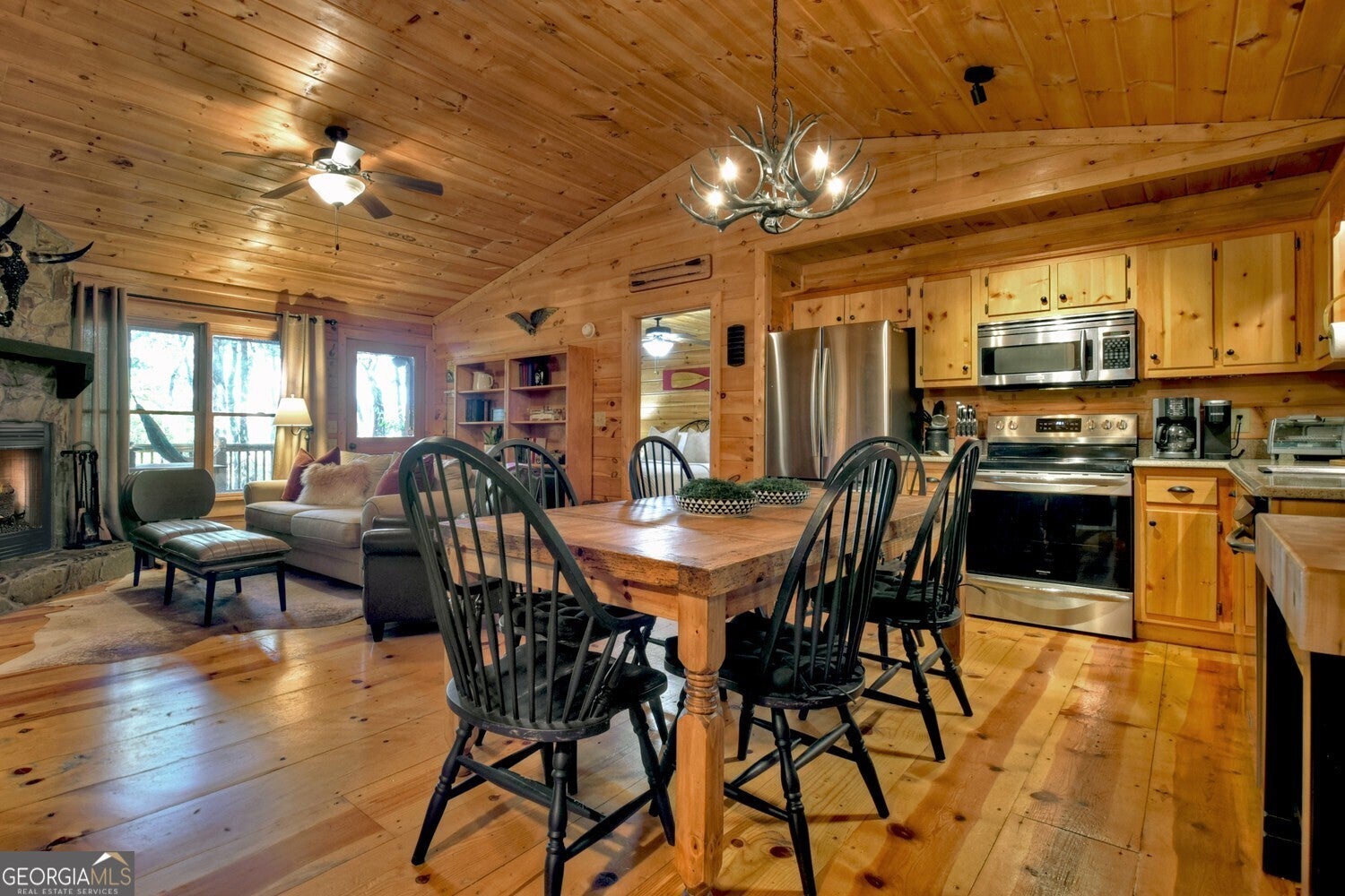 Nestled in the peaceful wooded setting of Cherry Log, this charming, cozy cabin offers the perfect retreat for nature lovers and those seeking tranquility. With its warm, rustic interior featuring all wood interior, a stone fireplace, and soft ambient lighting, the cabin exudes a welcoming, homely atmosphere. The open-concept living area connects seamlessly with a fully equipped kitchen with granite and stainless appliances, making it easy to relax and unwind after a day of exploring. The primary suite is a luxurious haven designed for comfort with high volume ceilings, large windows and 2 closets. Outside, a spacious and expansive deck overlooks the surrounding forest, providing the ideal spot for morning coffee or evening stargazing and features stepless entries and 1- car detached garage. Whether it's for a weekend getaway or a longer stay, this cabin promises comfort, serenity, and a true connection to nature.