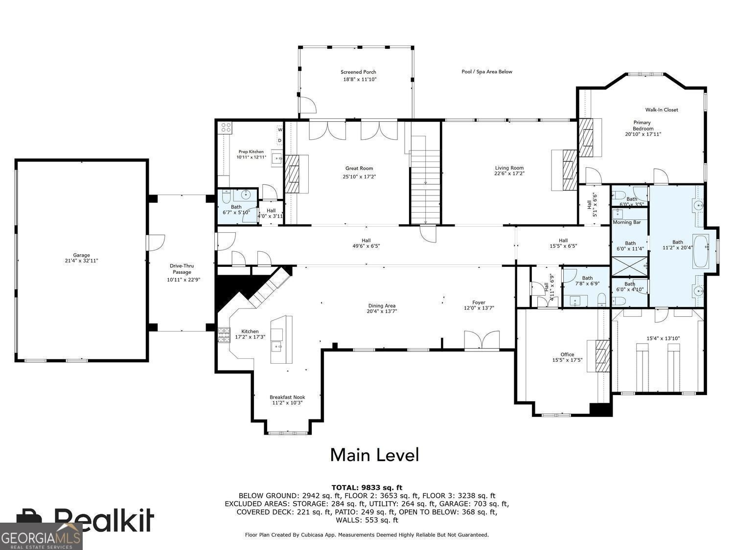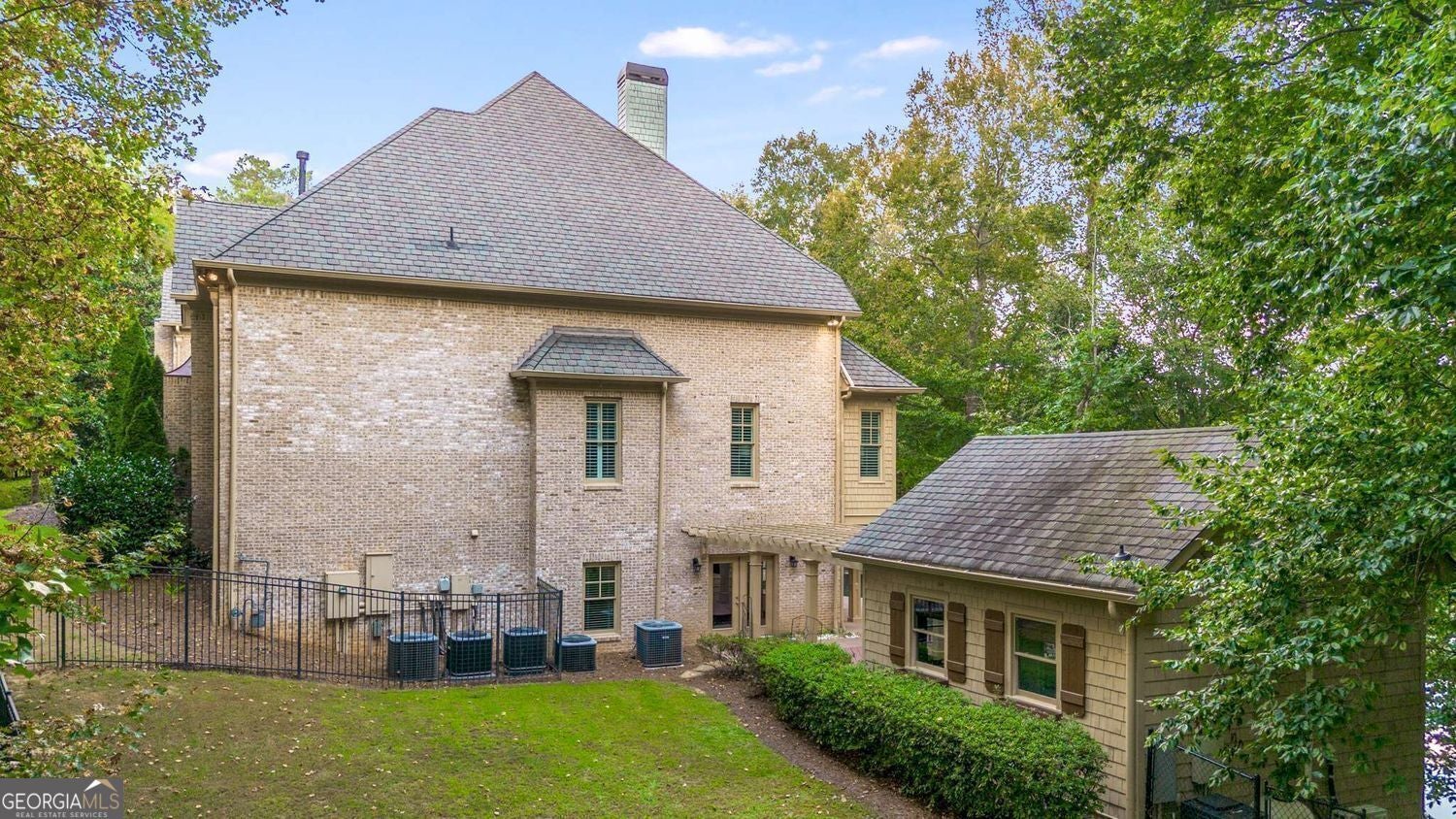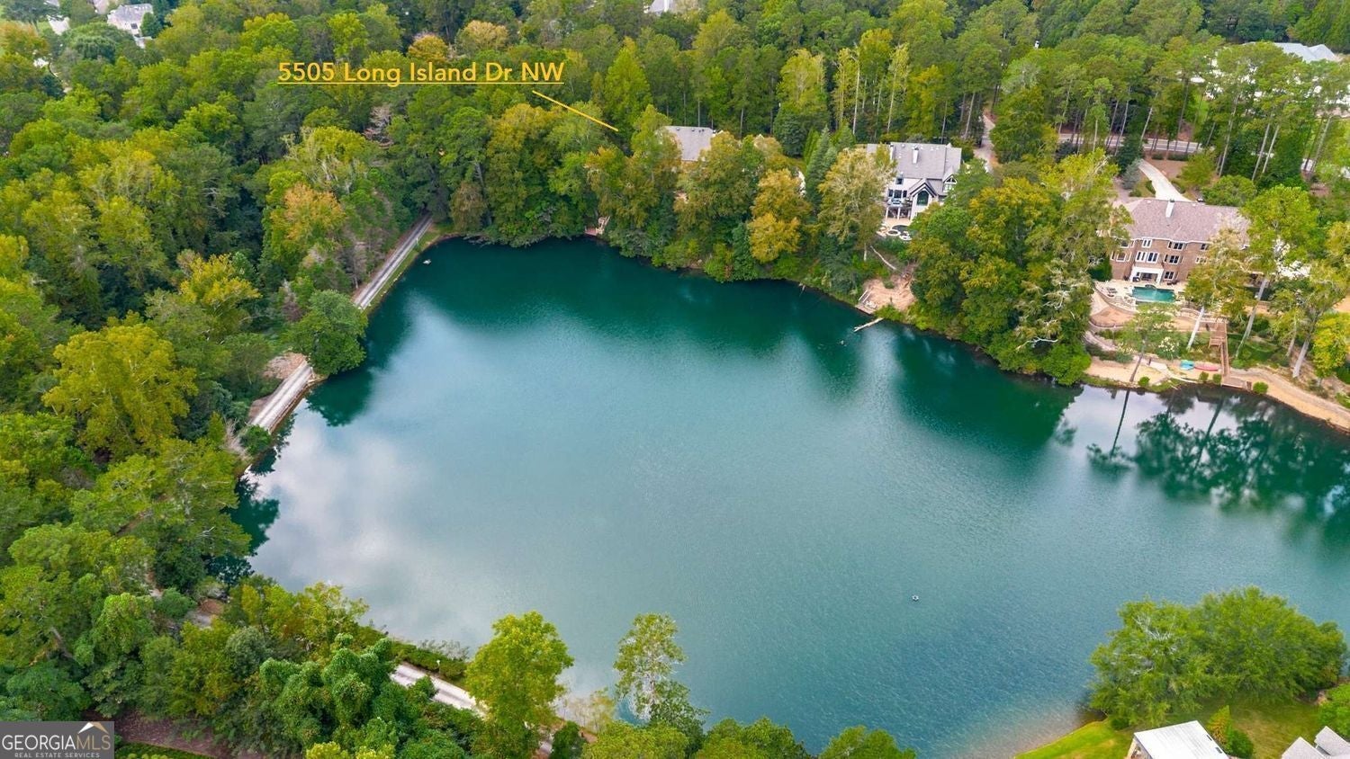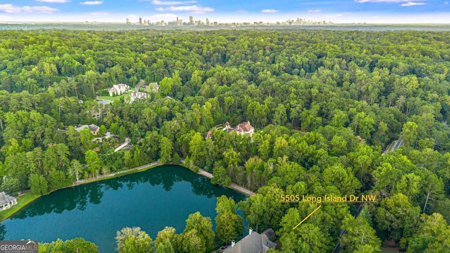A Rare Private Lakefront Estate in Sandy Springs - Discover one of only five residences built on an exclusive 7-acre private lake - a gated, all-brick estate on 2 pristine acres, blending timeless architecture with resort-style living. Encompassing more than 9,000 square feet across three finished levels, this extraordinary property offers an unparalleled combination of elegance, privacy, and entertainment spaces. Outdoor Paradise - Step outside to resort-style amenities: a sparkling in-ground pool with spa, expansive pool deck with covered entertaining area, a deck and arbor overlooking the lake with stairs to a private platform - ideal for fishing, kayaking, or simply enjoying serene sunsets. Multiple verandas and screened porches frame breathtaking views of the pool and lake. Main Level Living - A winding stone walkway leads to a stately covered front porch with arched stained double doors. Inside, oak hardwoods flow throughout. The welcoming foyer opens to an elegant dining room, a formal living room, a two-story great room, and a chef's kitchen appointed with professional-grade SS appliances, pot filler, beverage cooler, warming drawer, and two sinks. A large walk-in pantry plus a separate prep kitchen with full gas range, hood, sink, and laundry hookup make entertaining effortless. Retreat to the richly paneled executive study featuring a coffered ceiling, fireplace, and two walls of built-ins. The primary suite on main is a private sanctuary with fireplace, morning bar, spa-like bath with dual vanities, marble counters, pedestal tub, shower, his & hers water closets with bidets, and a designer wood-clad closet system. The second floor offers a junior master suite with sitting area, oversized bath, and fitted closet, plus three additional ensuite bedrooms, one of which offers a much larger and thoughtful layout. A loft and a second laundry room add convenience. Elevator access connects all three levels. The finished terrace level rivals any resort: a home theater with terraced seating and high-end projection/sound, a billiards room with coffered ceiling, full bar, wine cellar & tasting room, fitness studio, steam room, and large entertainment lounge that opens directly to the pool deck. A guest suite, full bath with swim-changing cubbies complete the lower level. Just steps away, the separate pool/guest house offers flexible space with a living/sleeping area, kitchenette, and half bath - perfect for extended guests, au pair, or home office retreat. Located in the heart of Sandy Springs with easy access to Chastain Park and top-rated public and private schools, shopping, dining, and healthcare, this home truly represents luxury living and the life that you've been wanting. Come see what you've been missing!